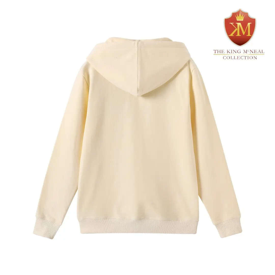 The hoodie is of good quality material. The fit is just right and cream color is a clean look.