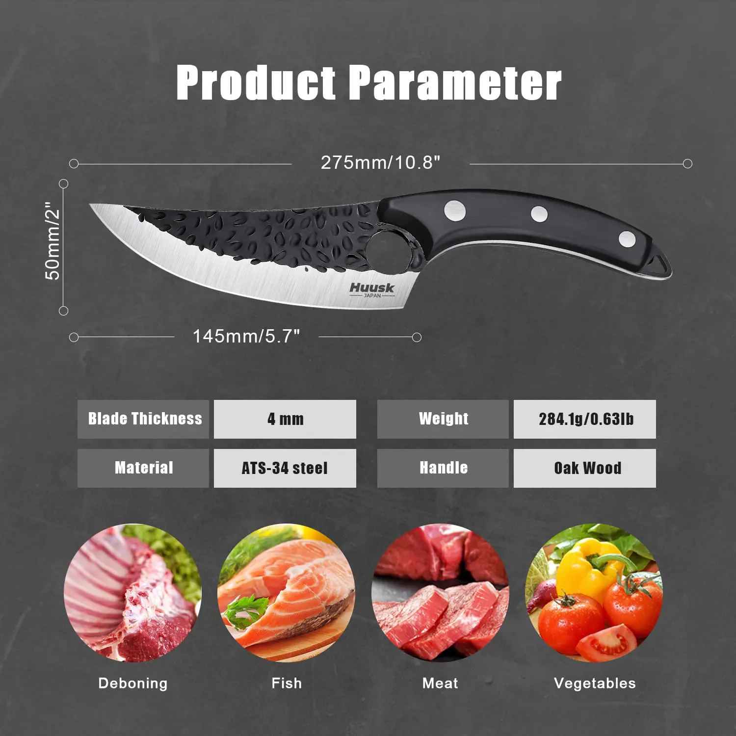 ·Belt Sheath - Quality leather sheath can protect the blade well and you can put on a belt for easy carrying when camping outdoor. Huusk boning knife can easily slice, dice and mince meat, fish, vegetables, fruits,etc. It's definitely your practical assistant whether you are indoor or outdoor.