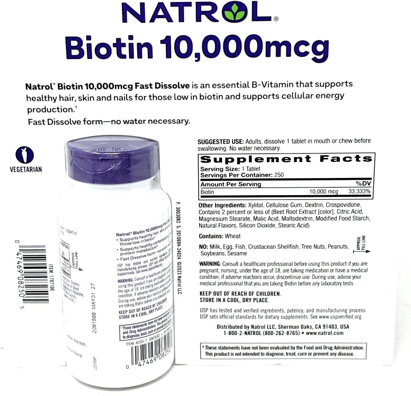 Natrol Biotin 10,000 mcg. Fast Dissolve Tablets, 250 Tablets