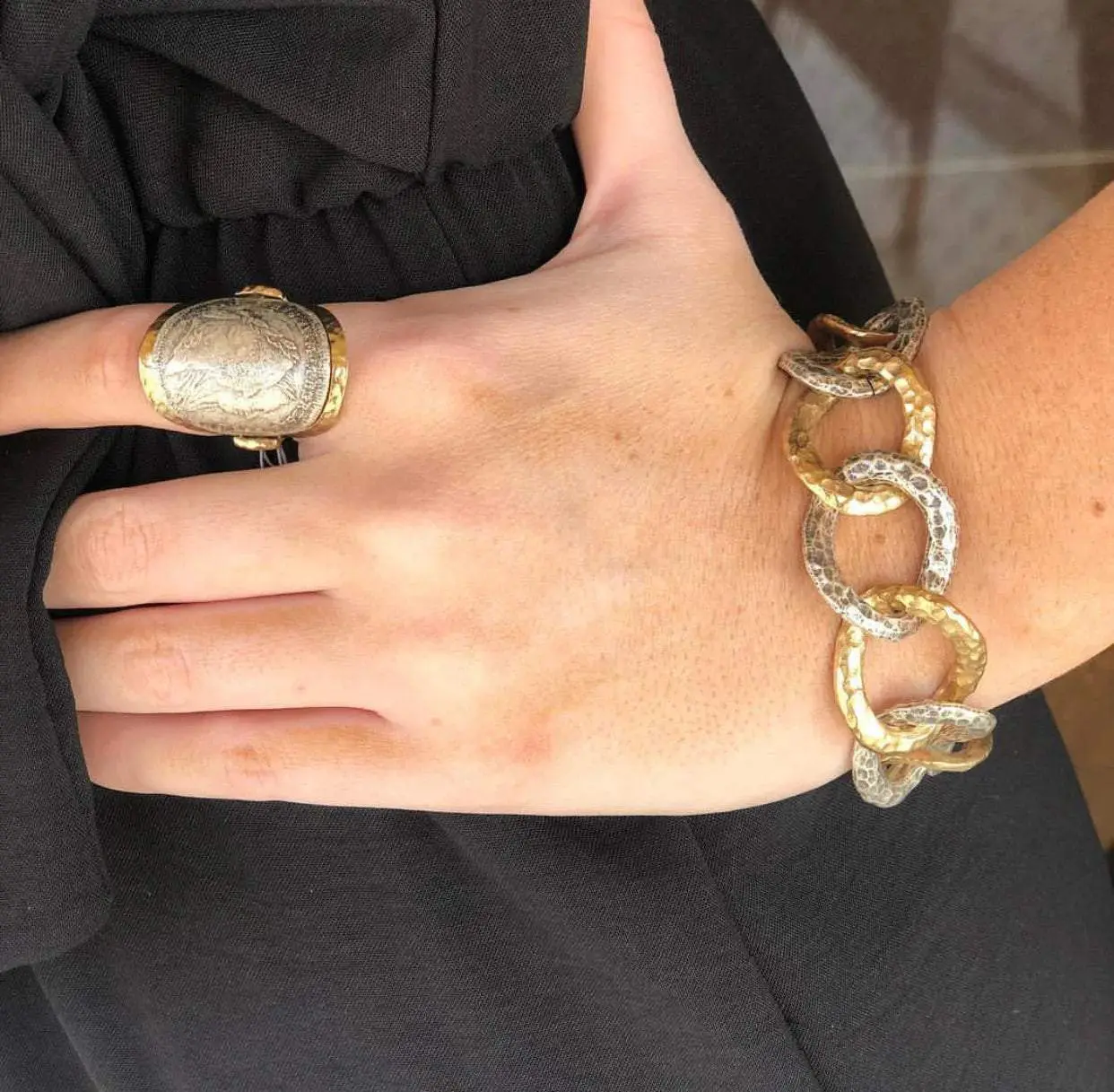 During her travels across the globe, designer Briana Erin has collected antique coins from their native regions. She incorporates fragments and elements into her designs, creating wearable, historic treasures.