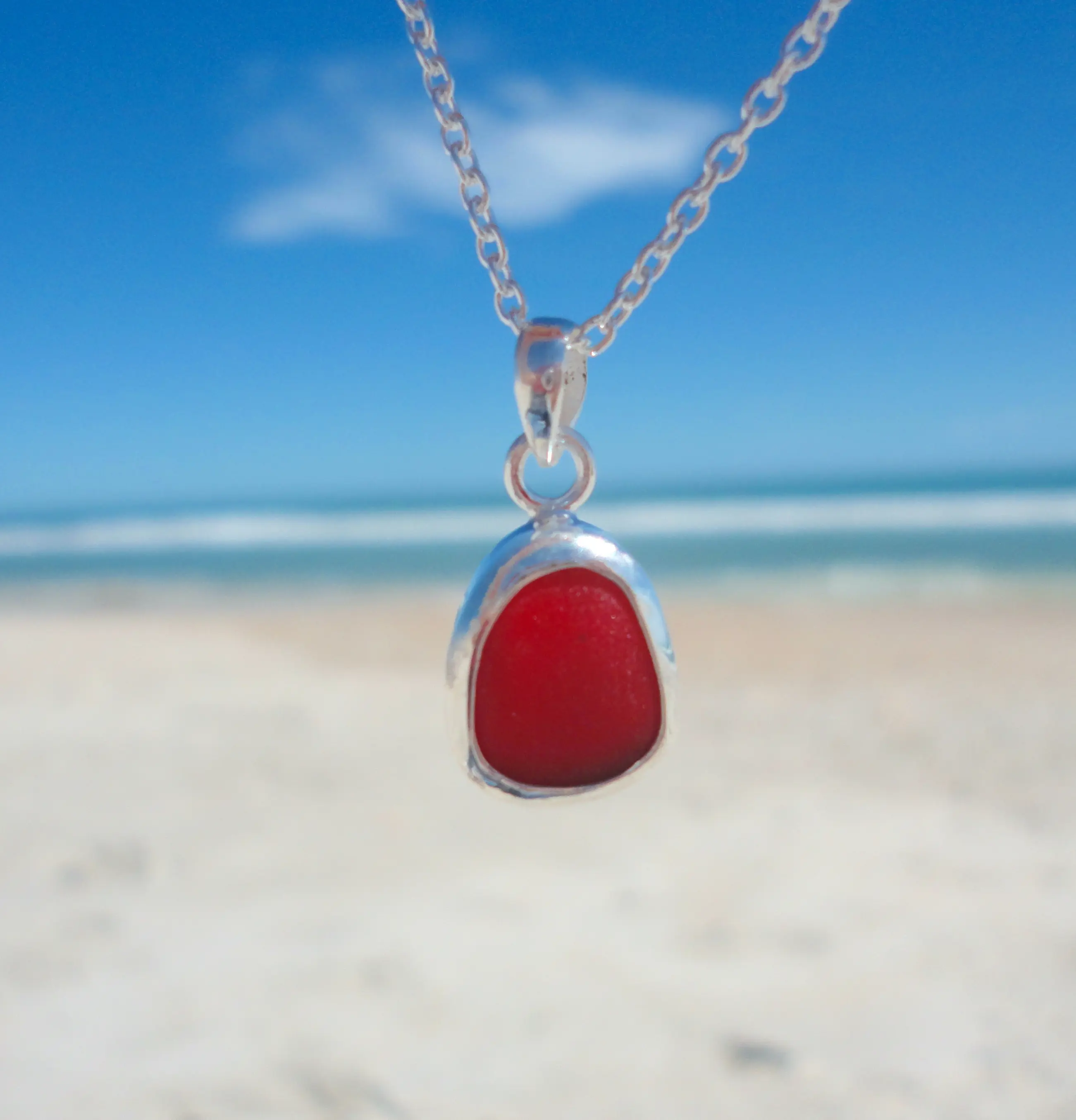 This beach necklace comes on a 18 inch sterling silver chain and the sea glass pendant measures about 10x14mm. Each pendant will vary slightly in shape as each is handmade to the shape.