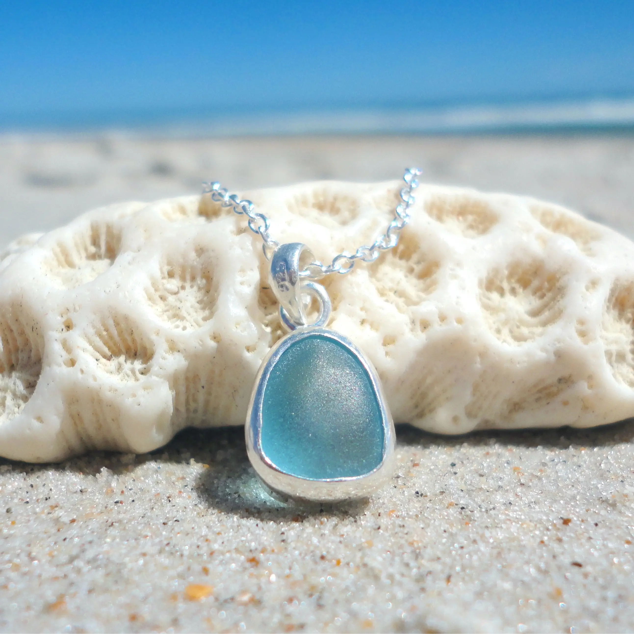 Petite Sea Glass Pendants set in a sterling silver bezel with an open back. These are perfect beach necklaces for everyday wear and are great for layering. The bezel is open so the light will shine through. The sea glass is hand tumbled made from recycled glass to resemble beach glass using colors that remind me of the shades of the ocean.