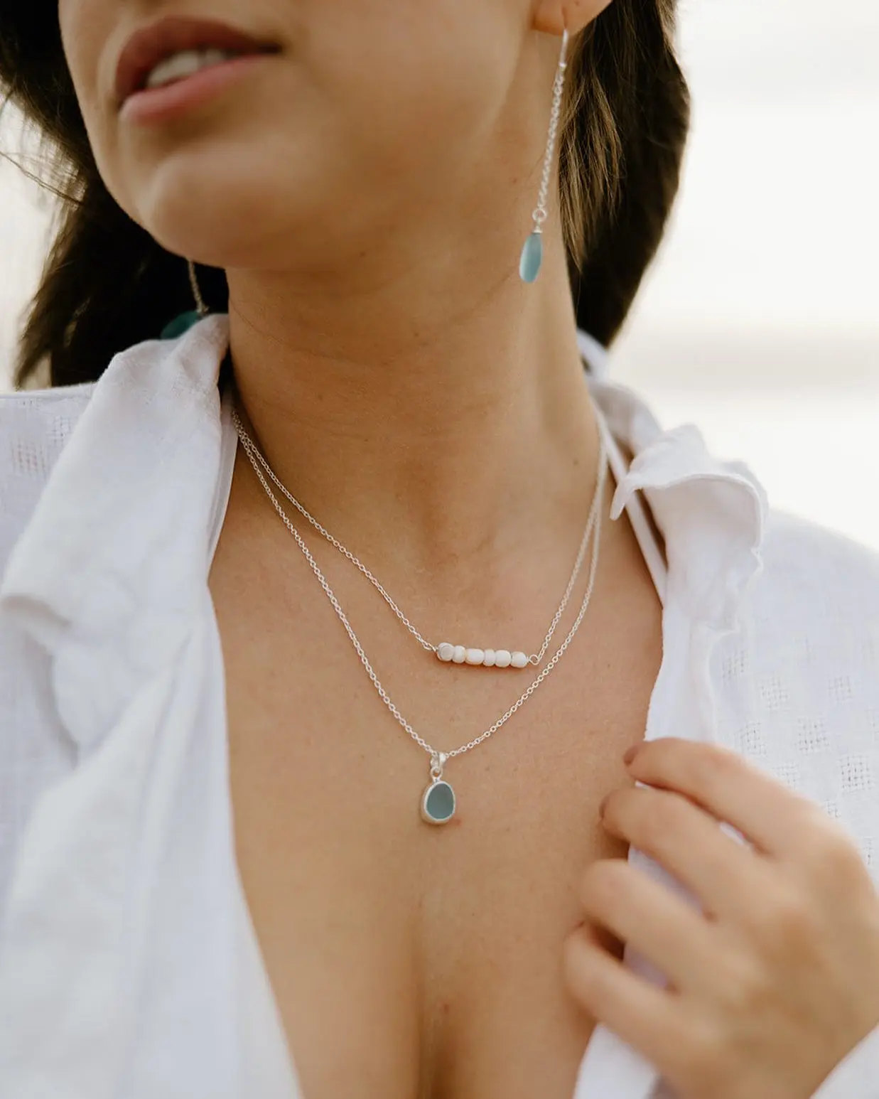 Sea Stamped Petite Sterling Silver Sea Foam Green Sea Glass Pendant Necklace