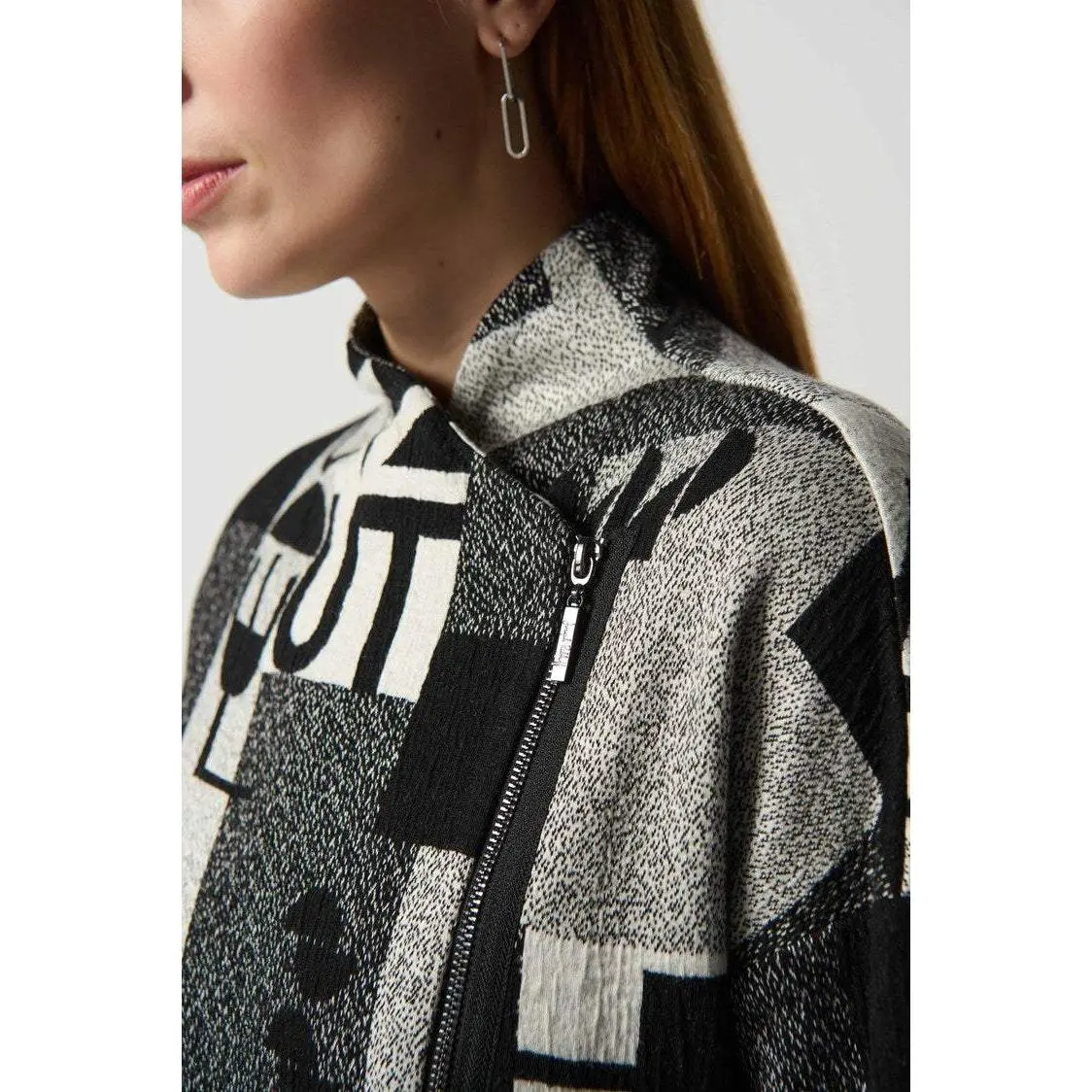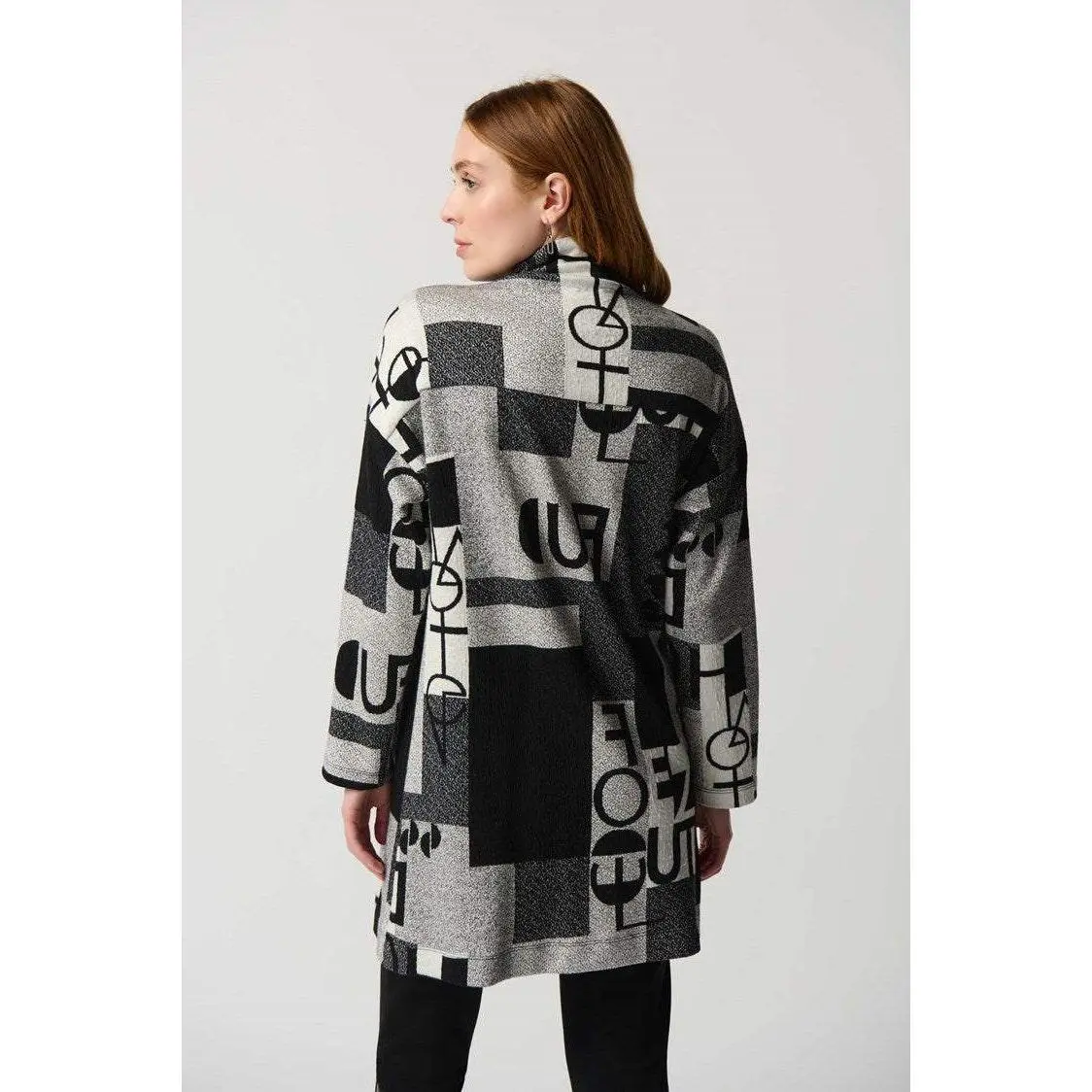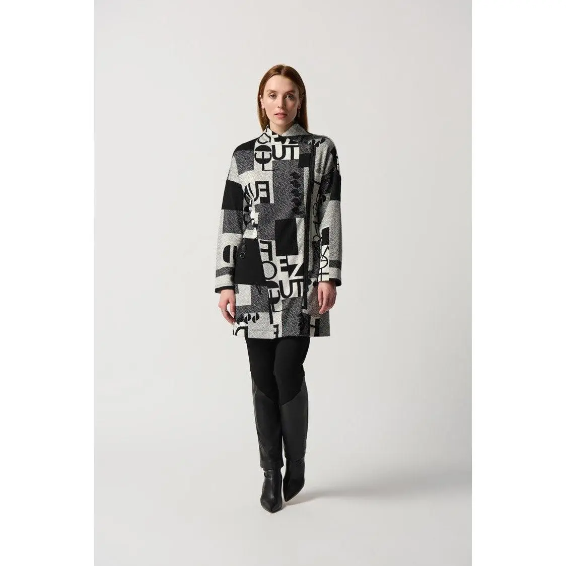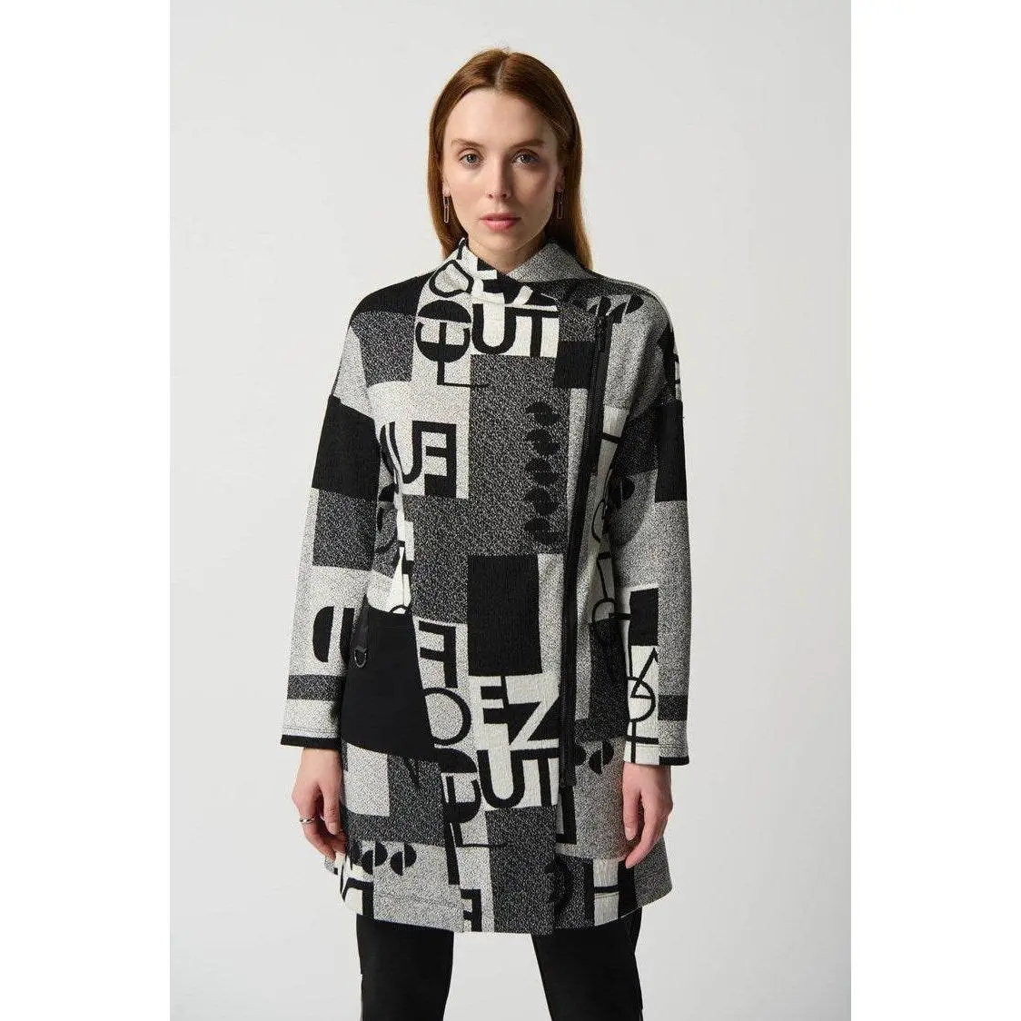 Joseph Ribkoff Wording Print Jacquard Knit Coat With Stand Collar