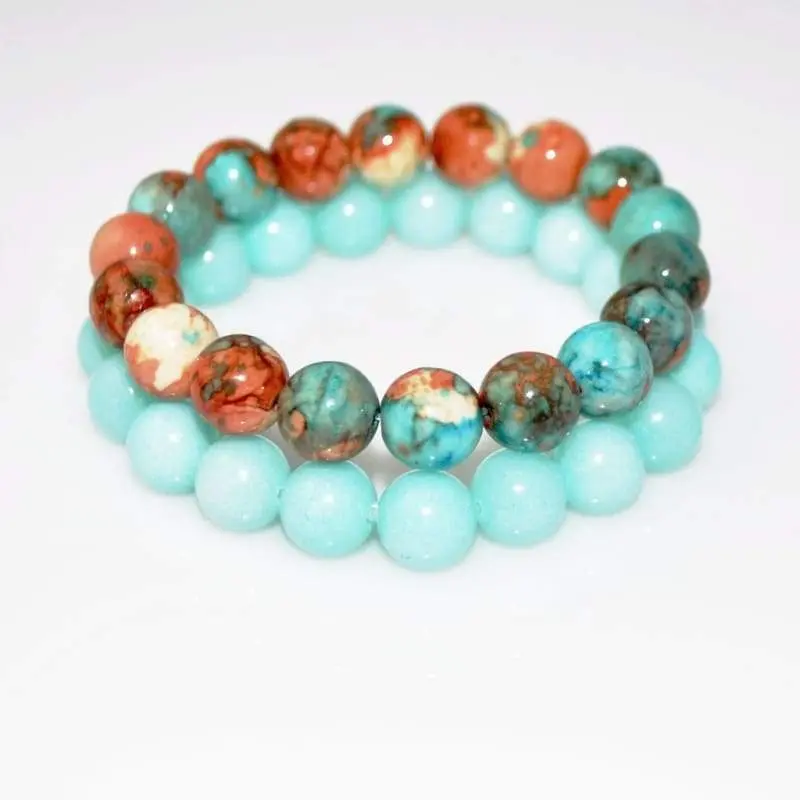 Simple and elegant Amazonite gemstone stretch unisex bracelets. Elegant 10mm round gemstone stretch with elastic thread.