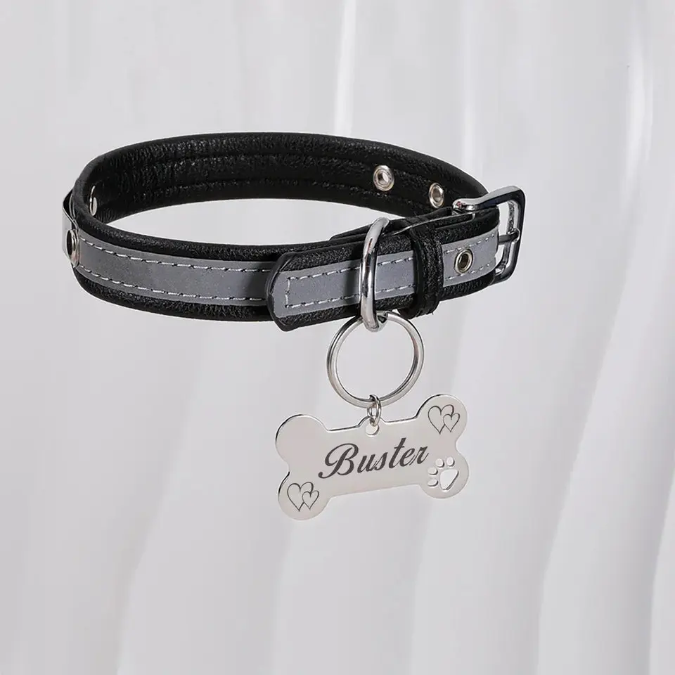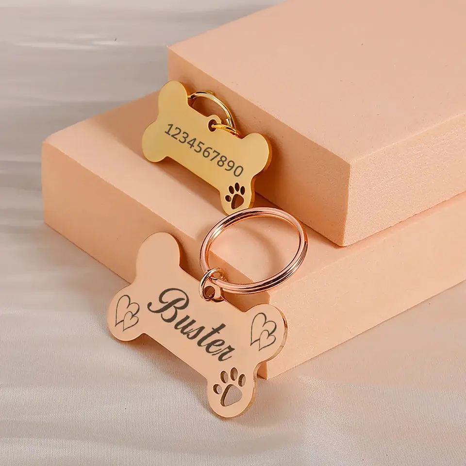 "Tagged with love – Our Bones Shaped Nameplate adds flair to pet style!"