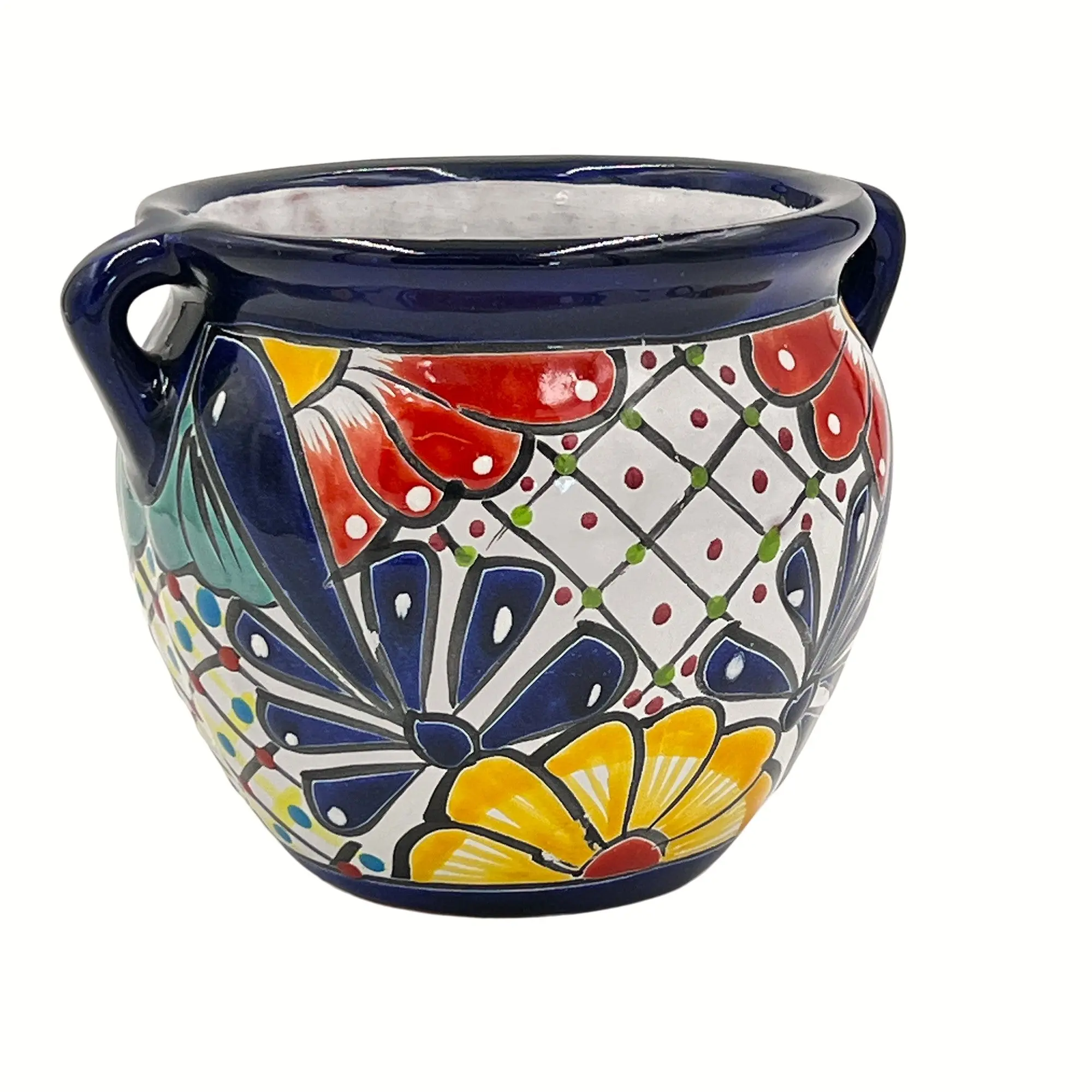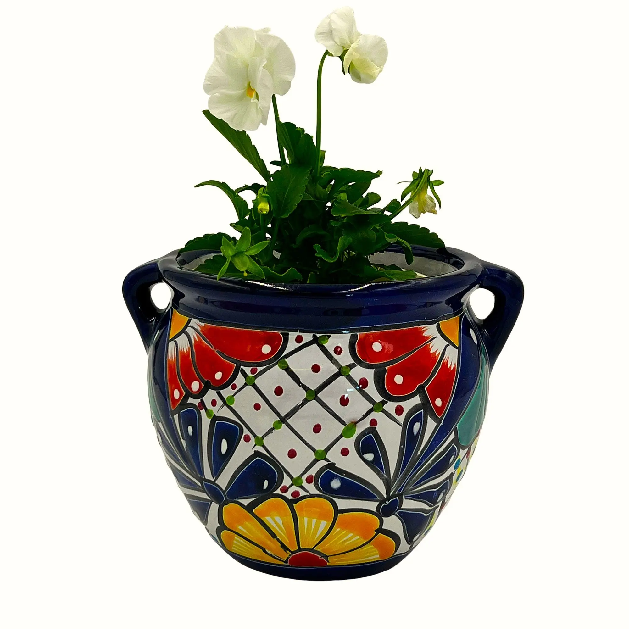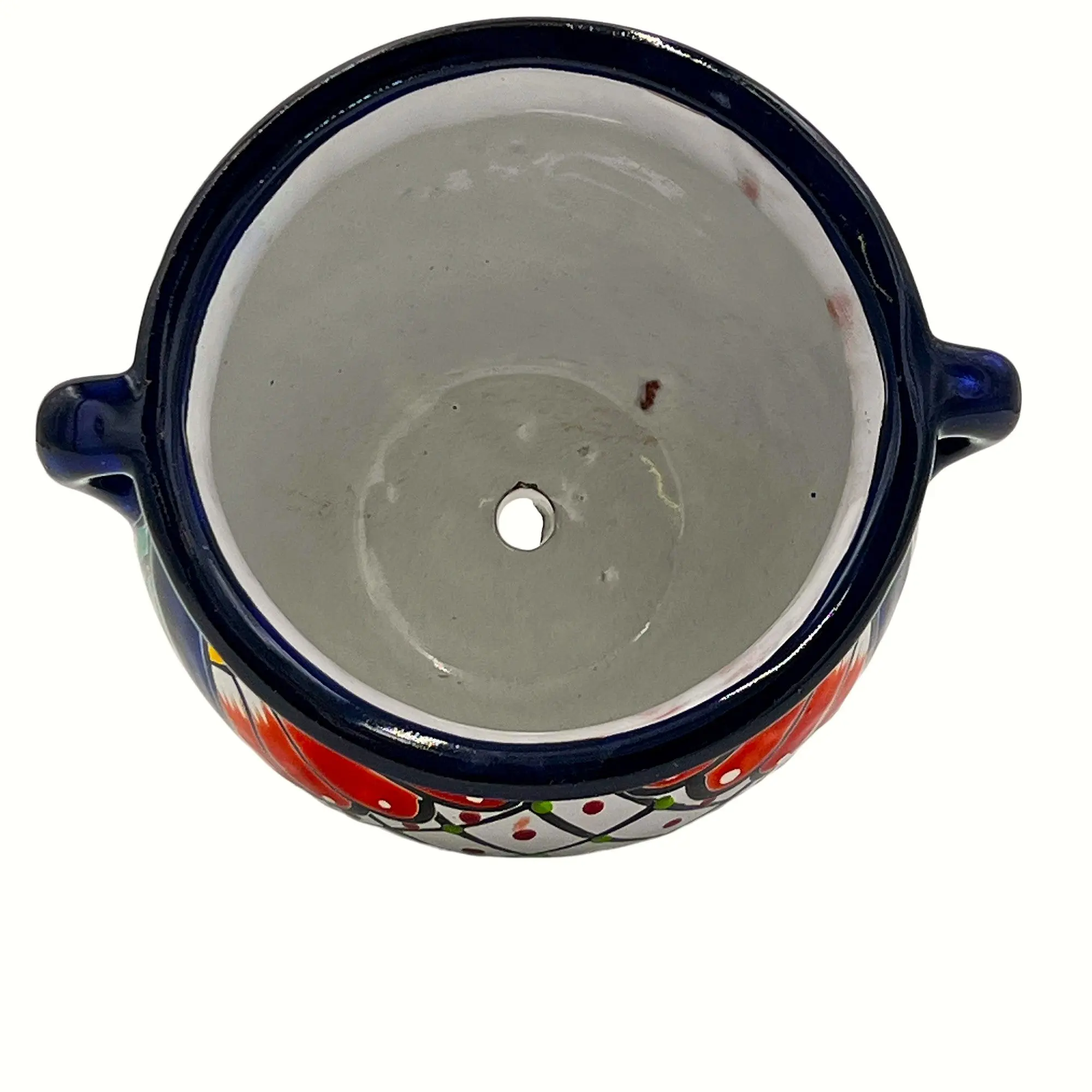 Michoacano Mexican Talavera Garden Pot - Dark Blue Trim