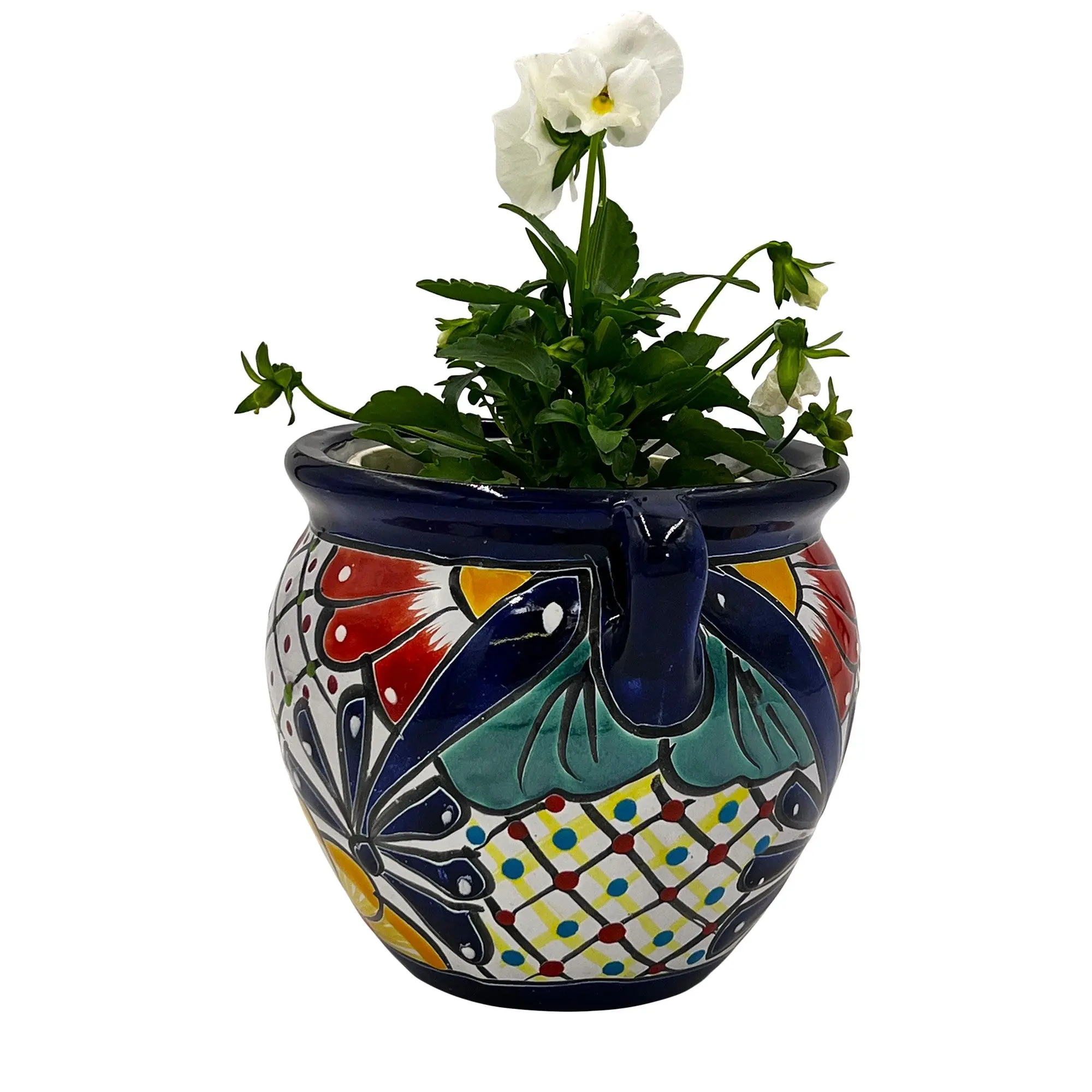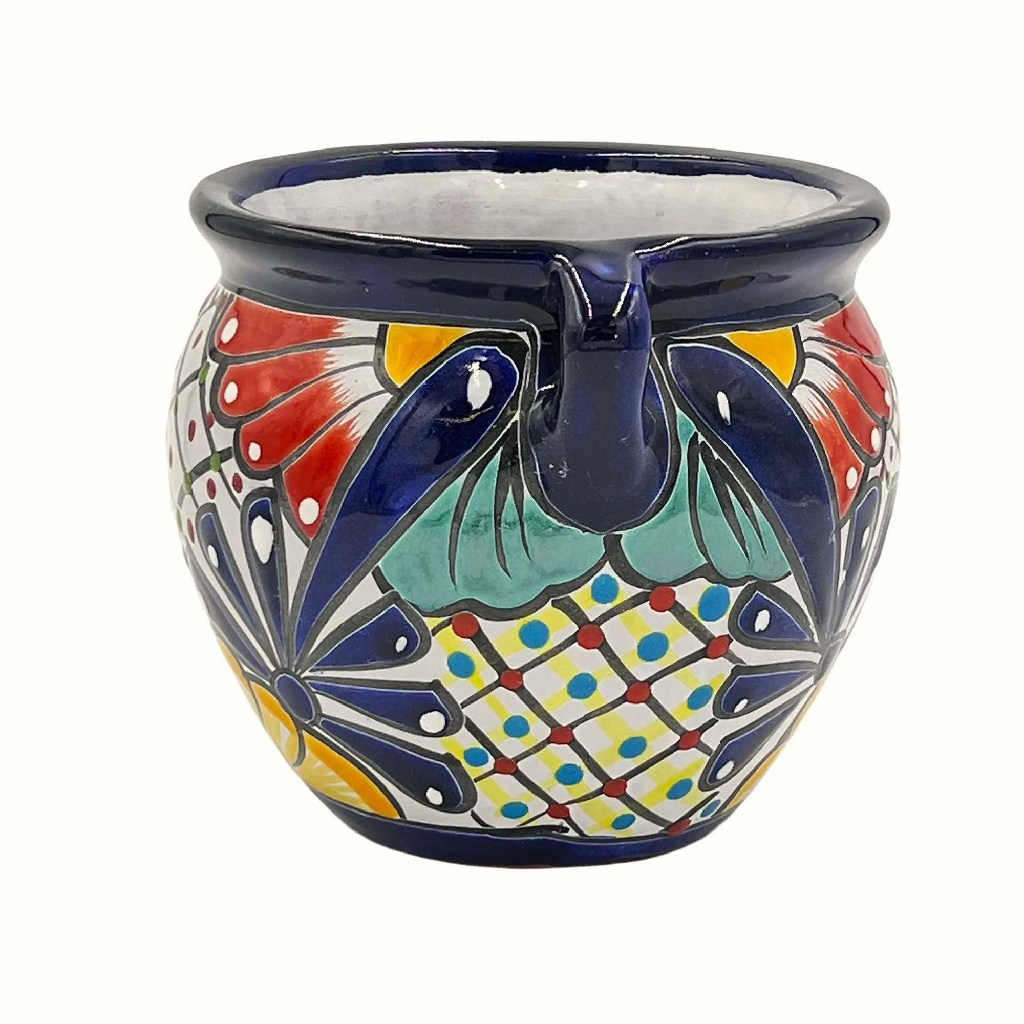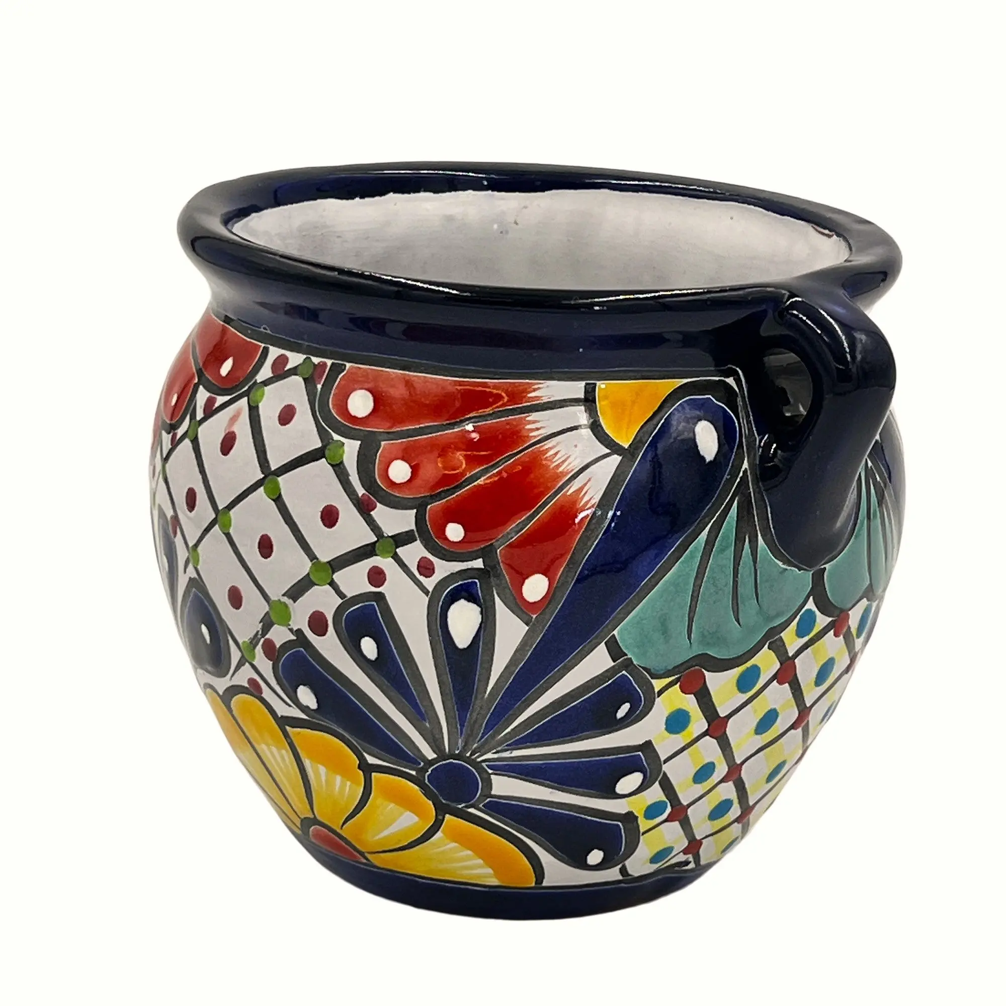 Michoacano Mexican Talavera Garden Pot - Dark Blue Trim