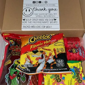 Muy bueno todo el sabor agridulce me encanto trae varias cosas aún se me hace agua la saliva. Muy bien empacado y viene personalizado llega súper rápido
