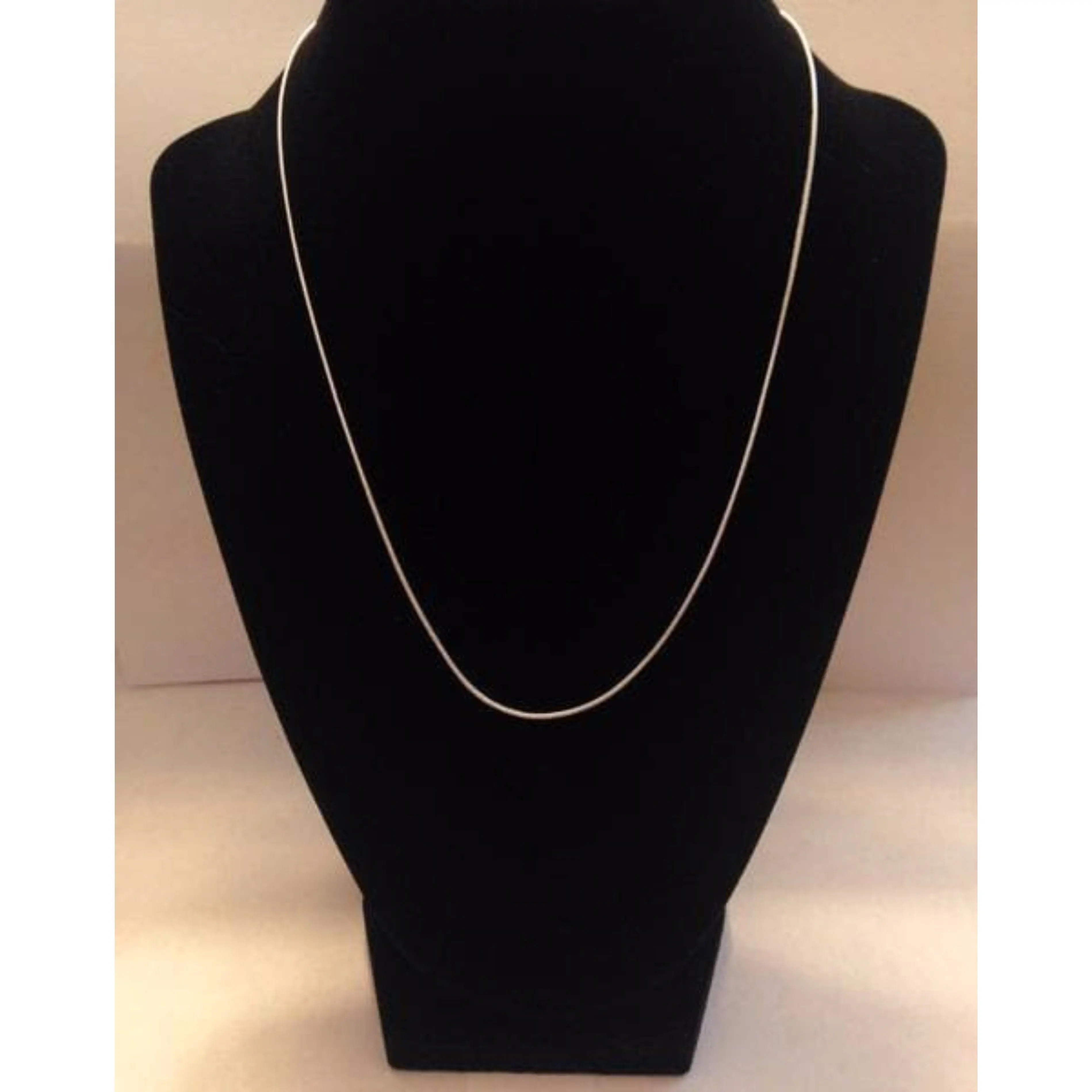 Choices include 16 or 18 inch silver plated or sterling silver snake chain. Â When you click on the sizes and the material the first picture will show what the chain looks like that you would be buying. Â There are 2 sizes of silver plated and 2 sizes of one of the styles of 925 sterling silver necklaces. Â There is also one other choice of 16 inch chain 925 sterling silver and one for 18 inch chain 925 sterling silver.