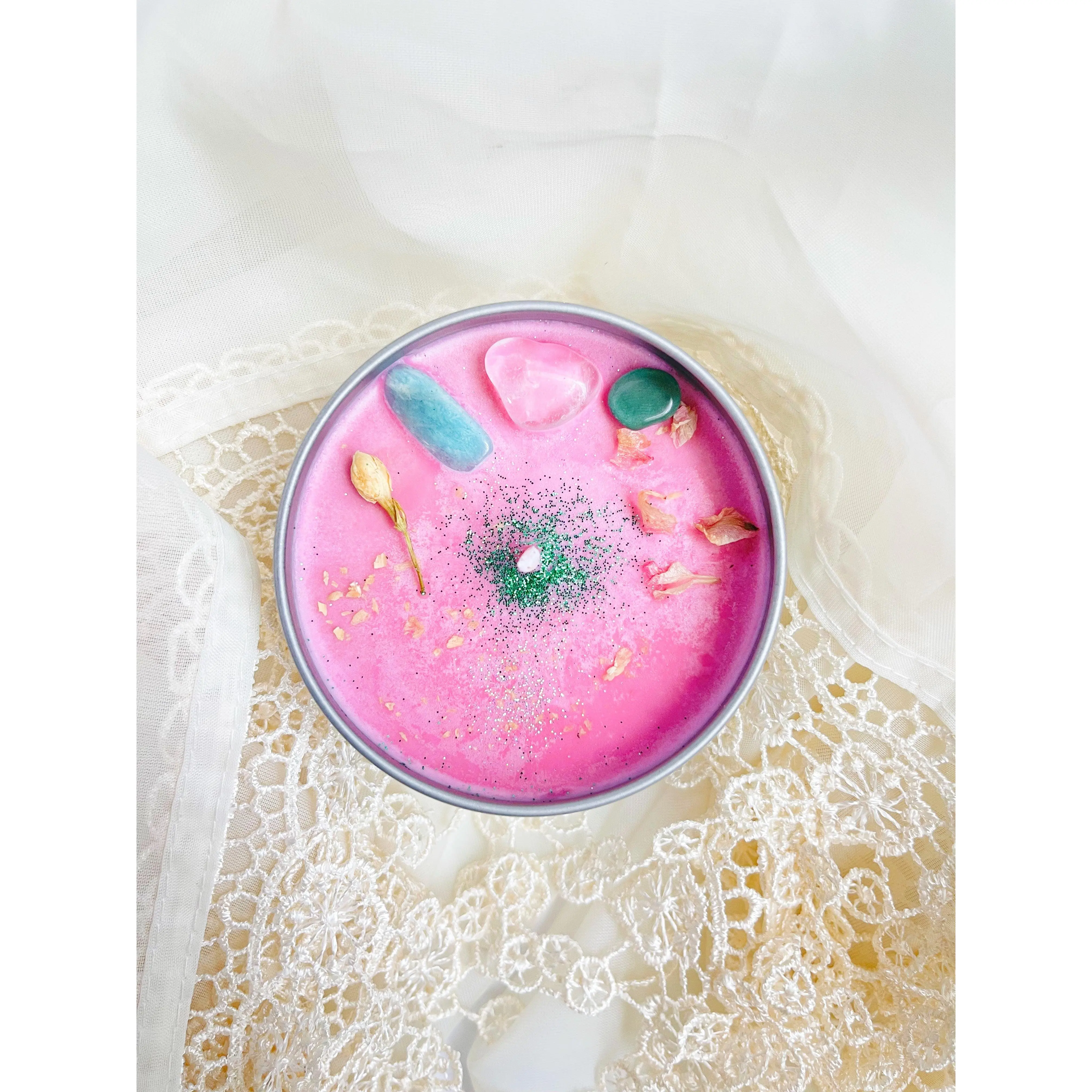 Handcrafted with Organic Soy Wax, Infused with Amazonite encouraging good luck and fortune. Amazonite has a soothing effect on the nervous system. Amazonite also empowers and strengthens any intention that may be set in it. This special mineral assists in manifesting a path to our biggest dreams and desires. Clear Quartz commonly known as The Master Healer, amplifying your intentions to manifest. Bringing Divine Healing, Inspiration and Protection. Green Aventurine is a gorgeous stone geared towards luck, strength, joy, and harnessing good fortune.