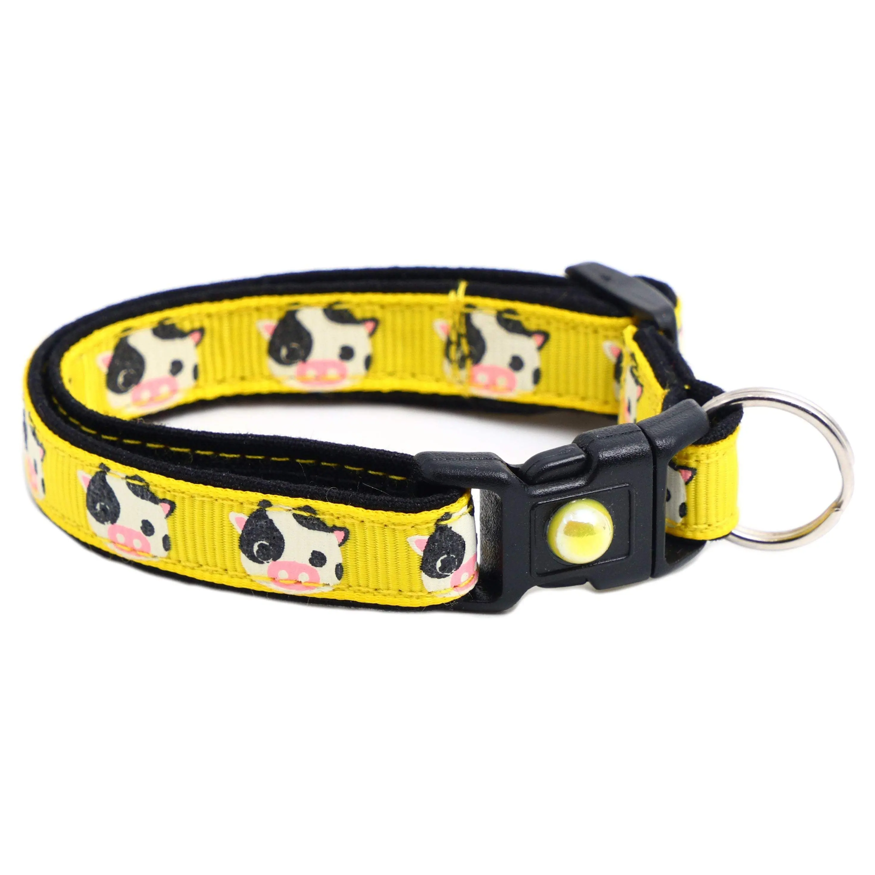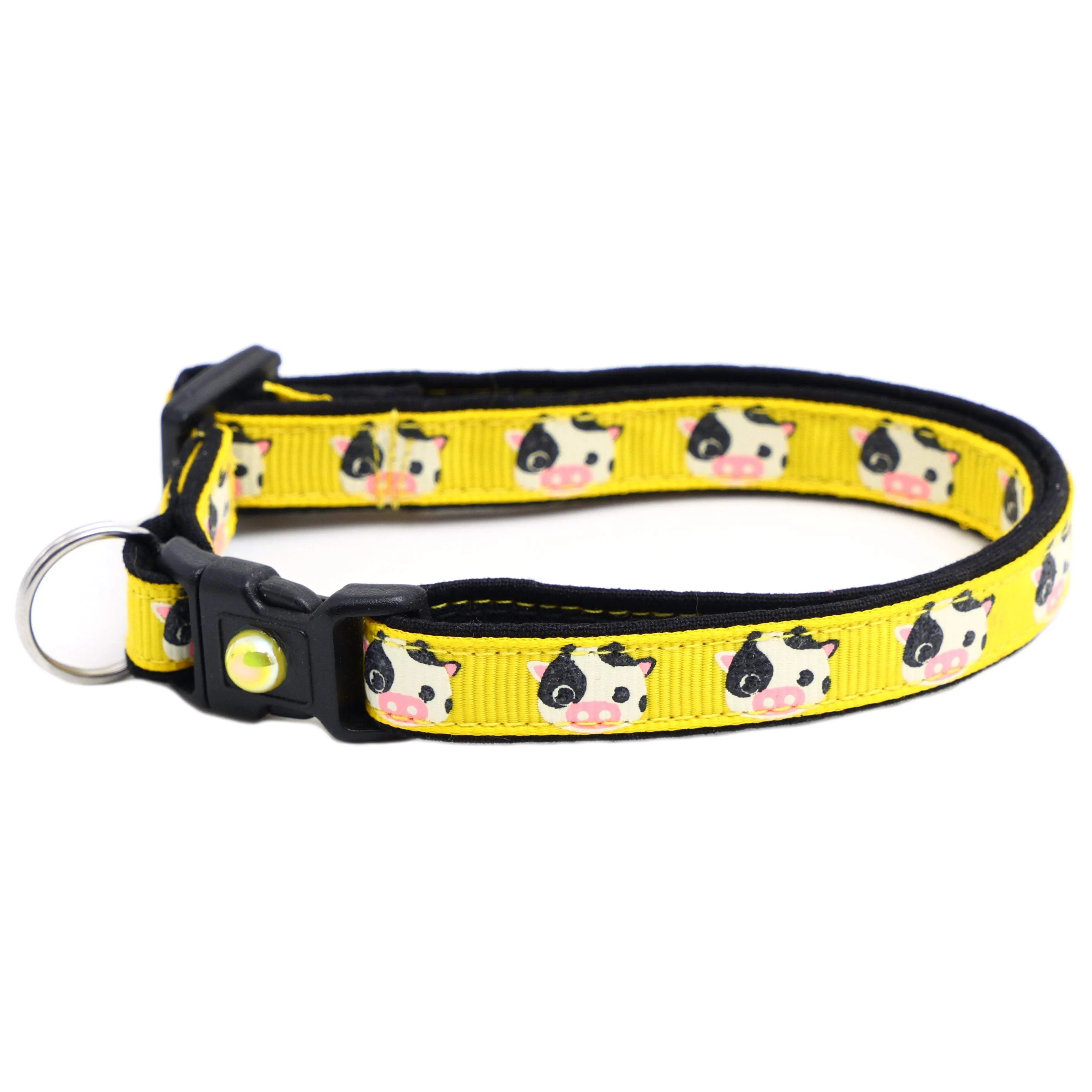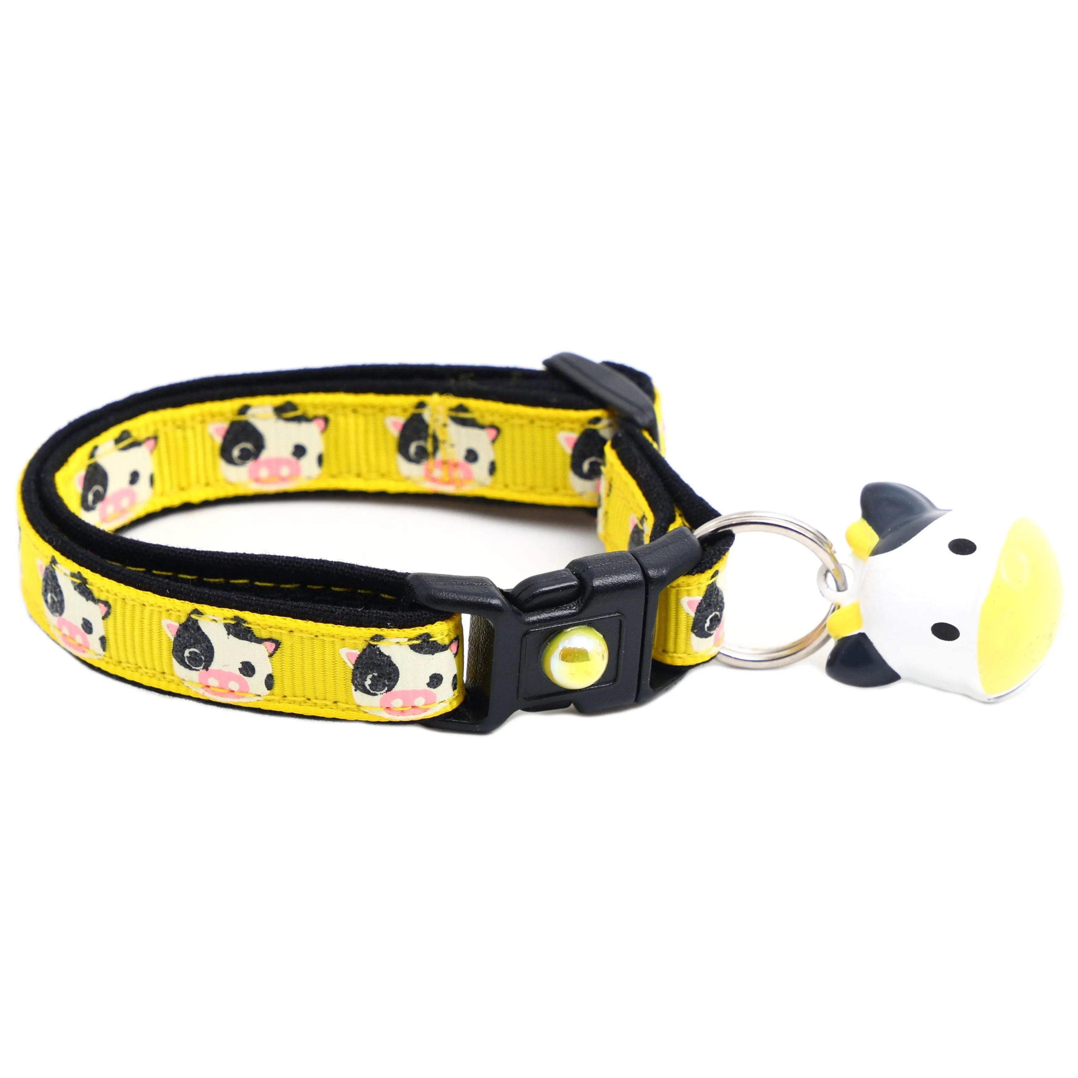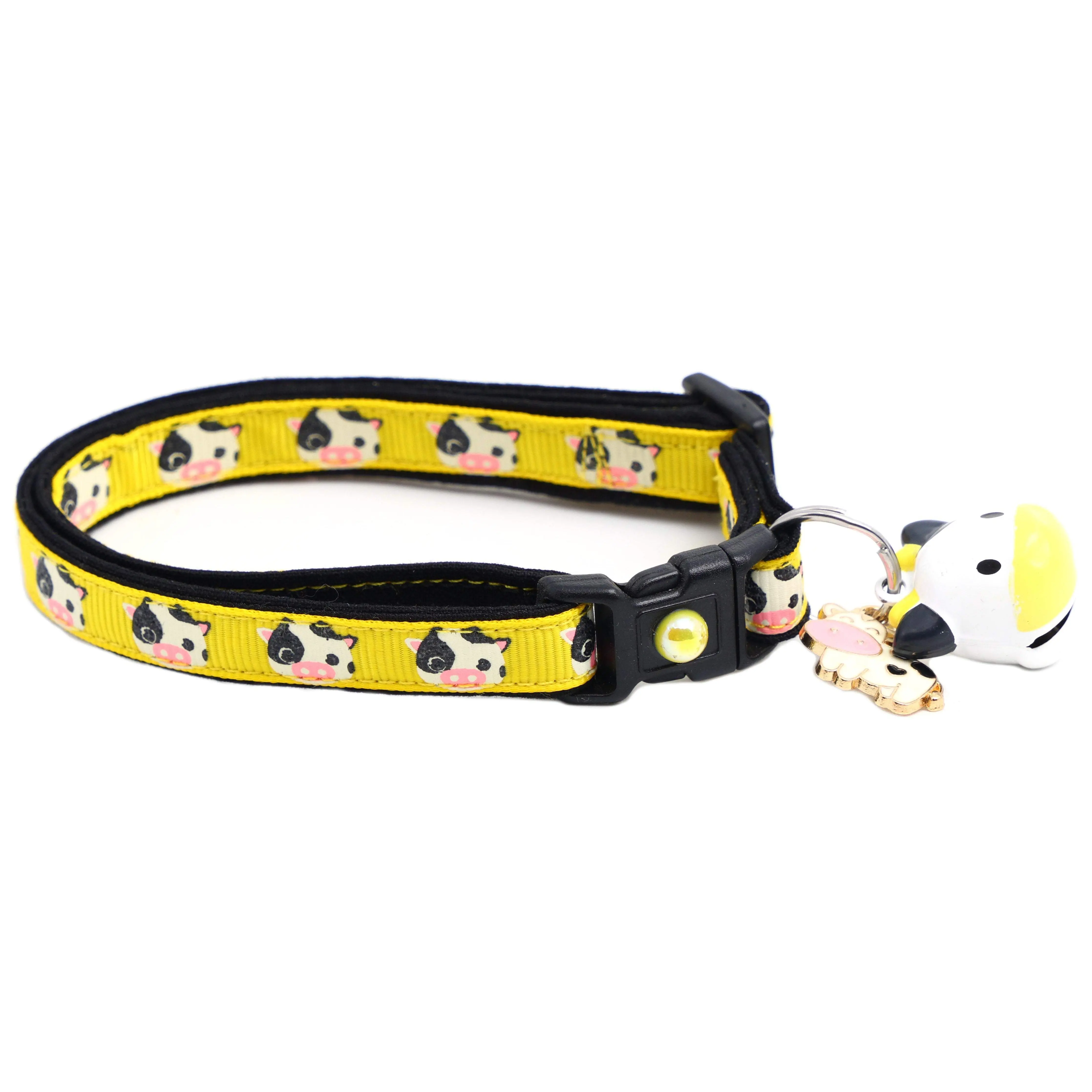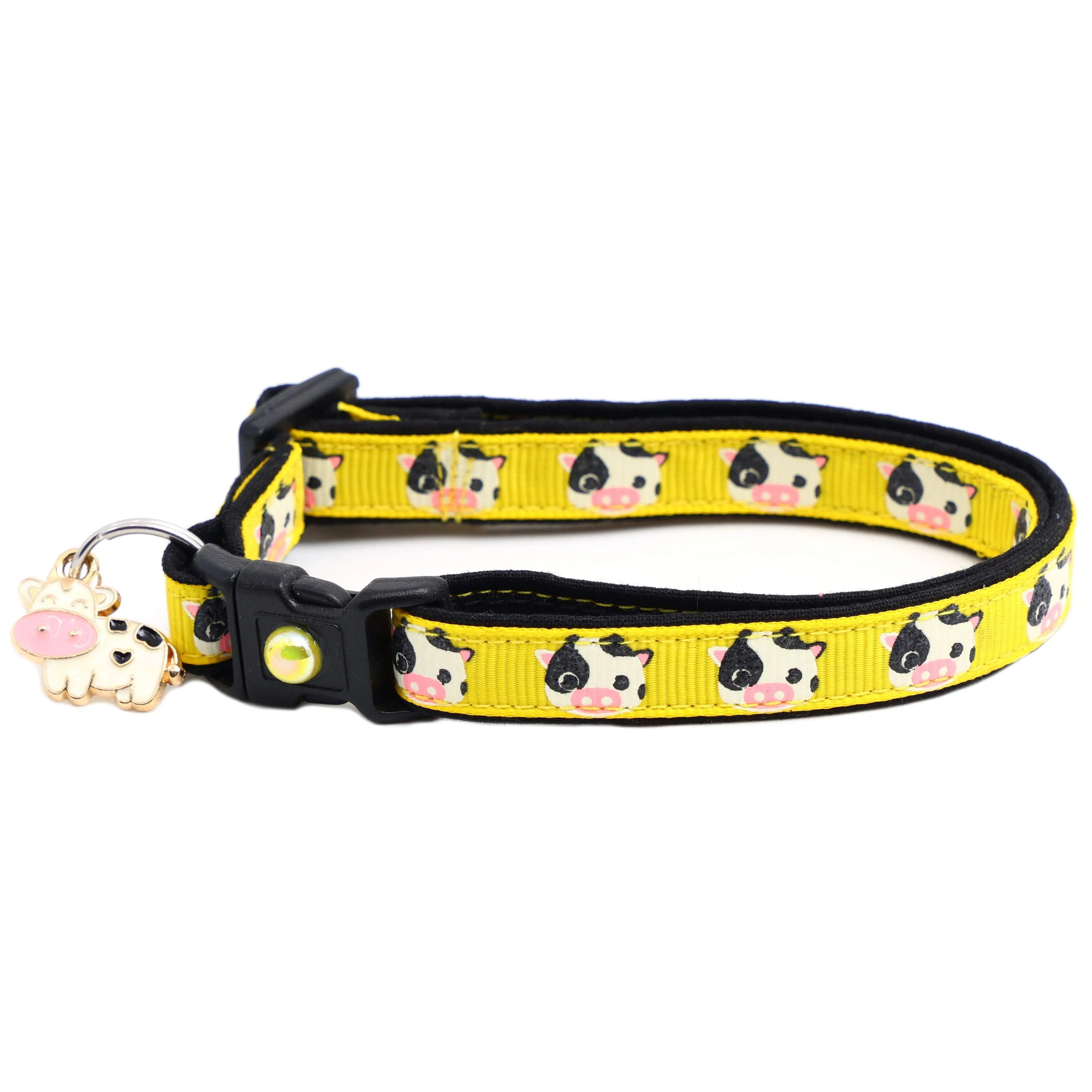 Cute Cows Breakaway Safety Handmade Cat Collar by Pugs2Perisans with Matching Jingle Bell & Charm Cowboy Farm Cute