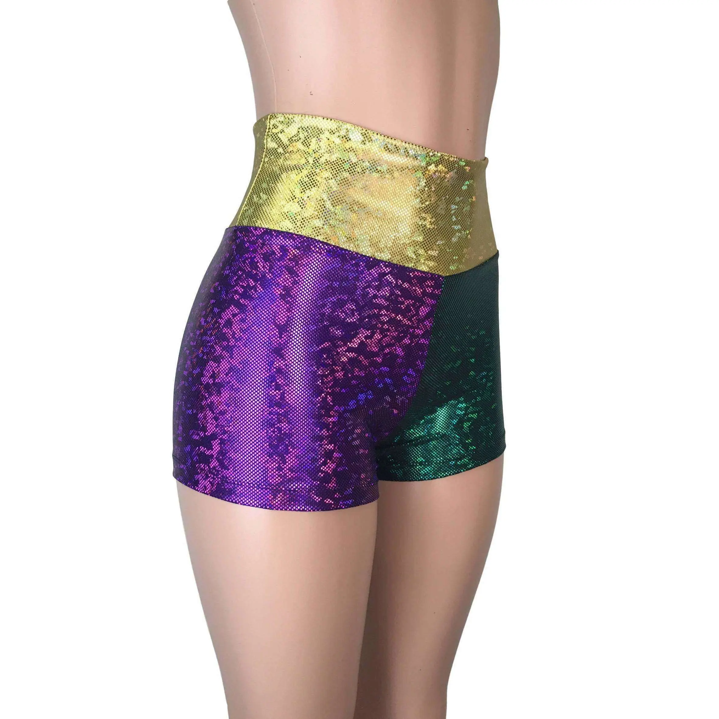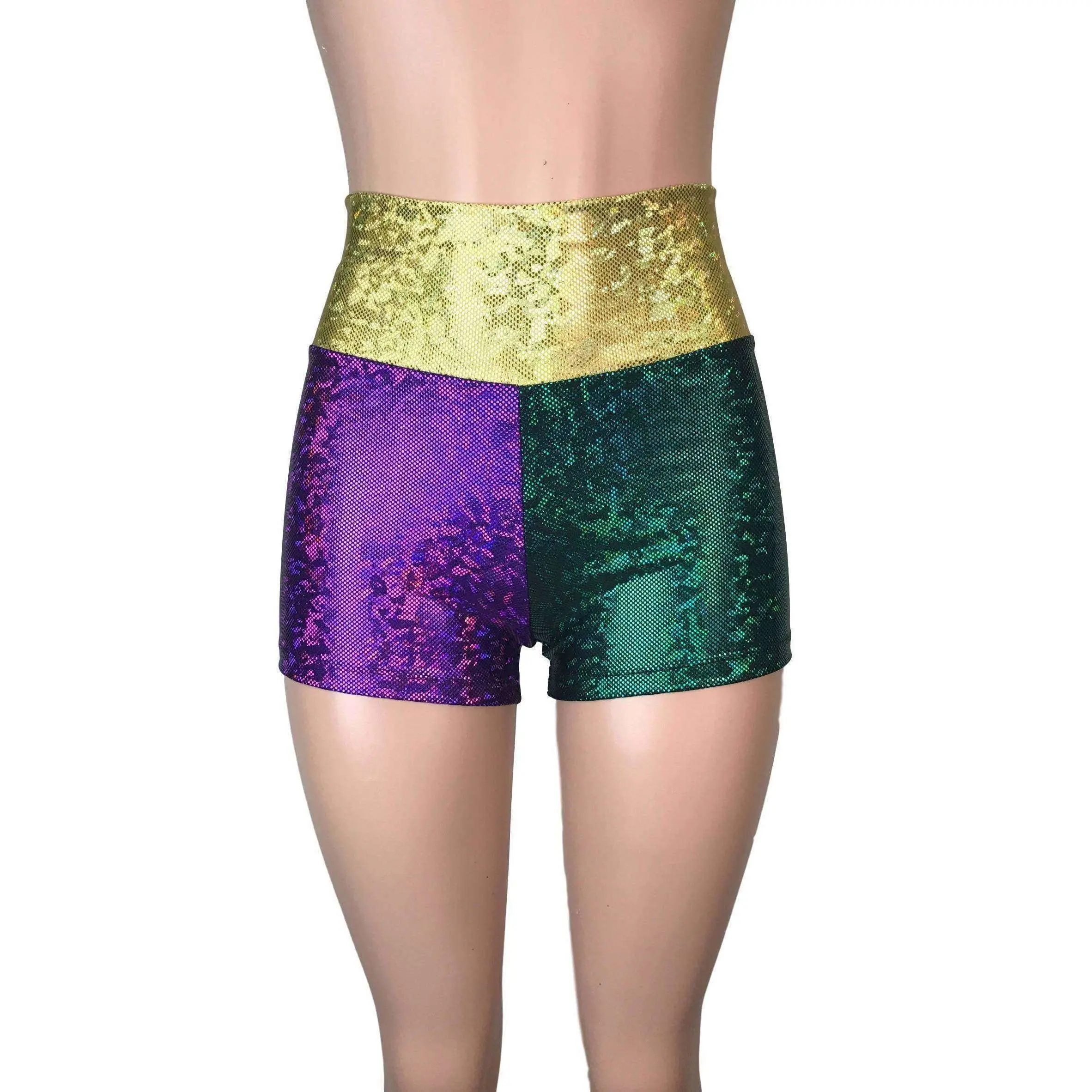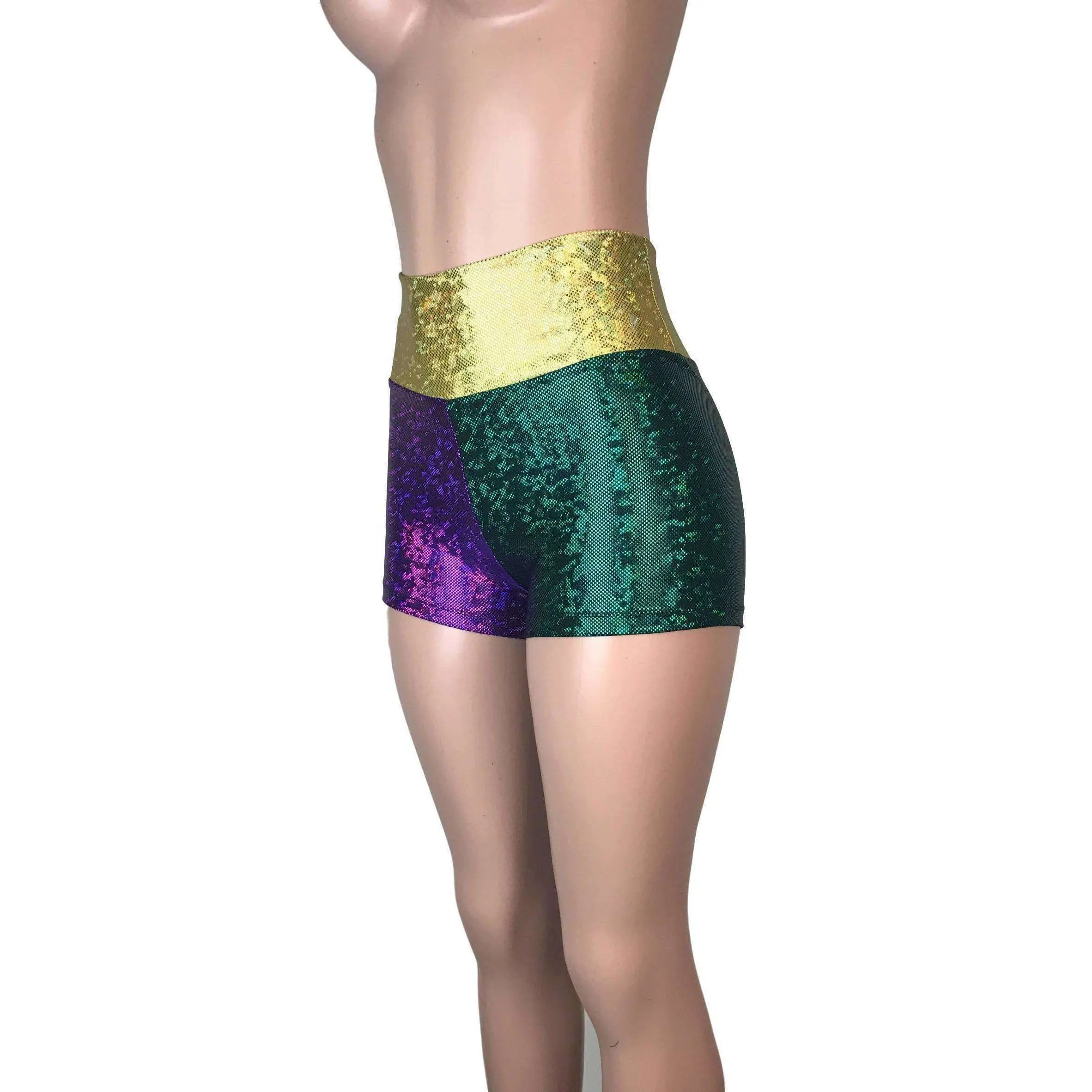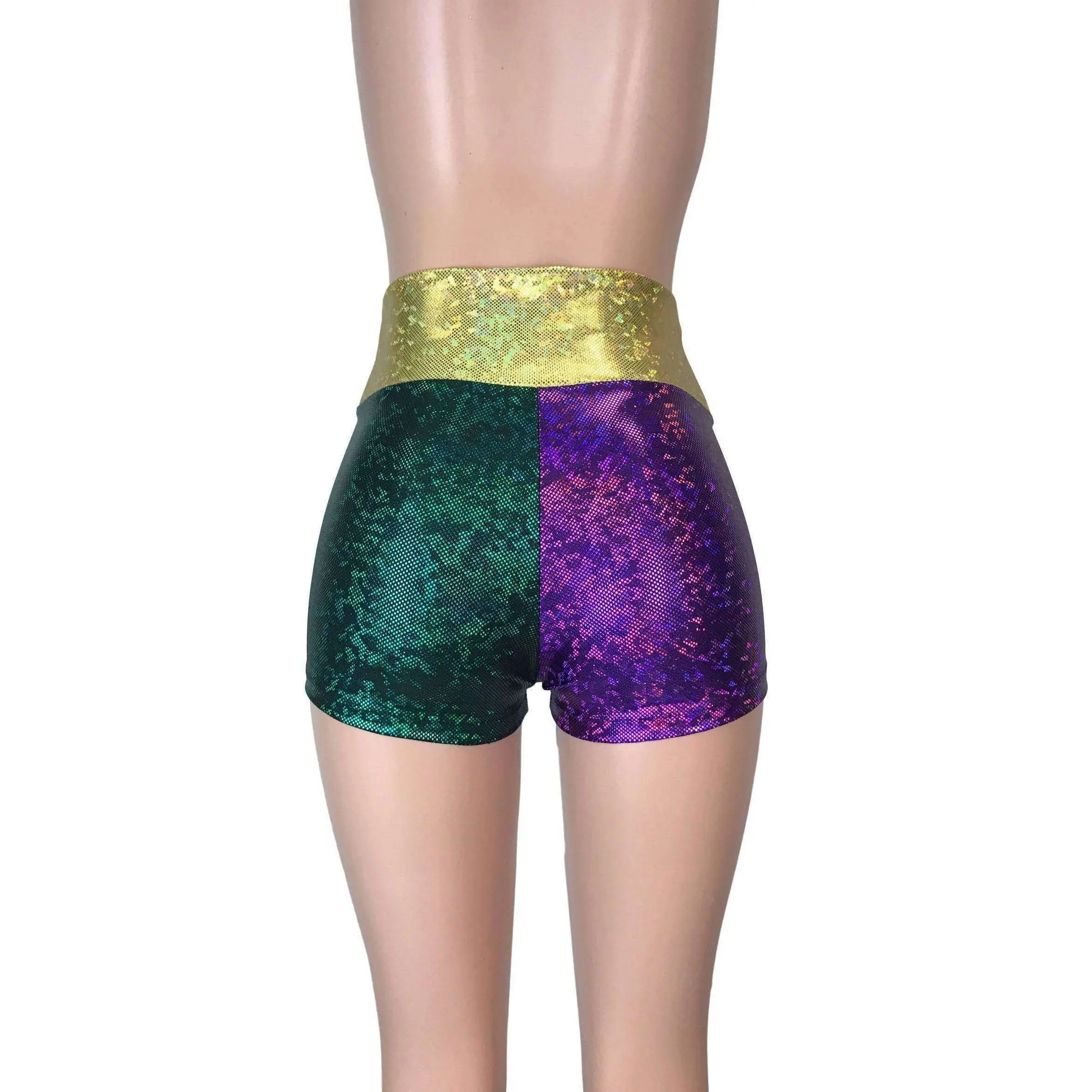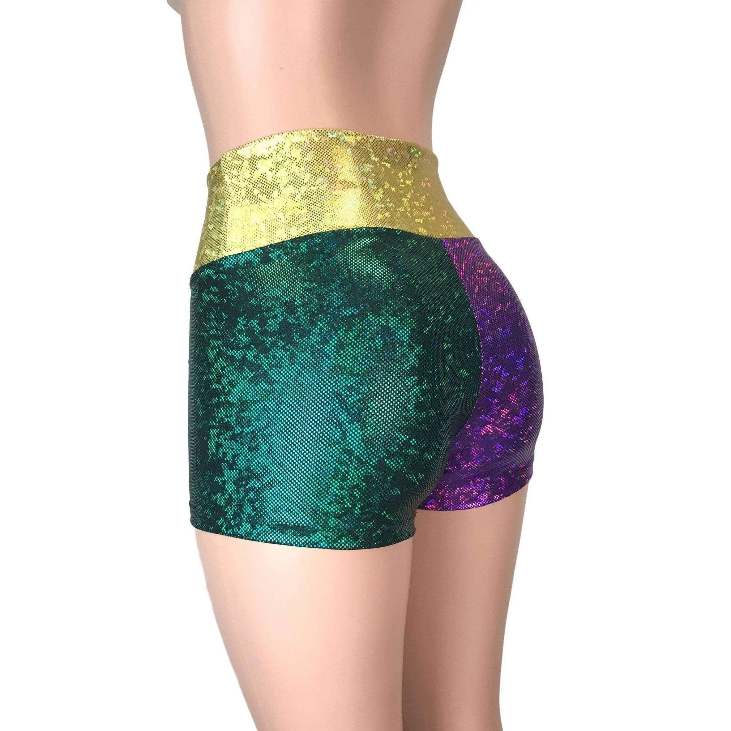 High Waisted Mardi Gras Booty Shorts - Holographic