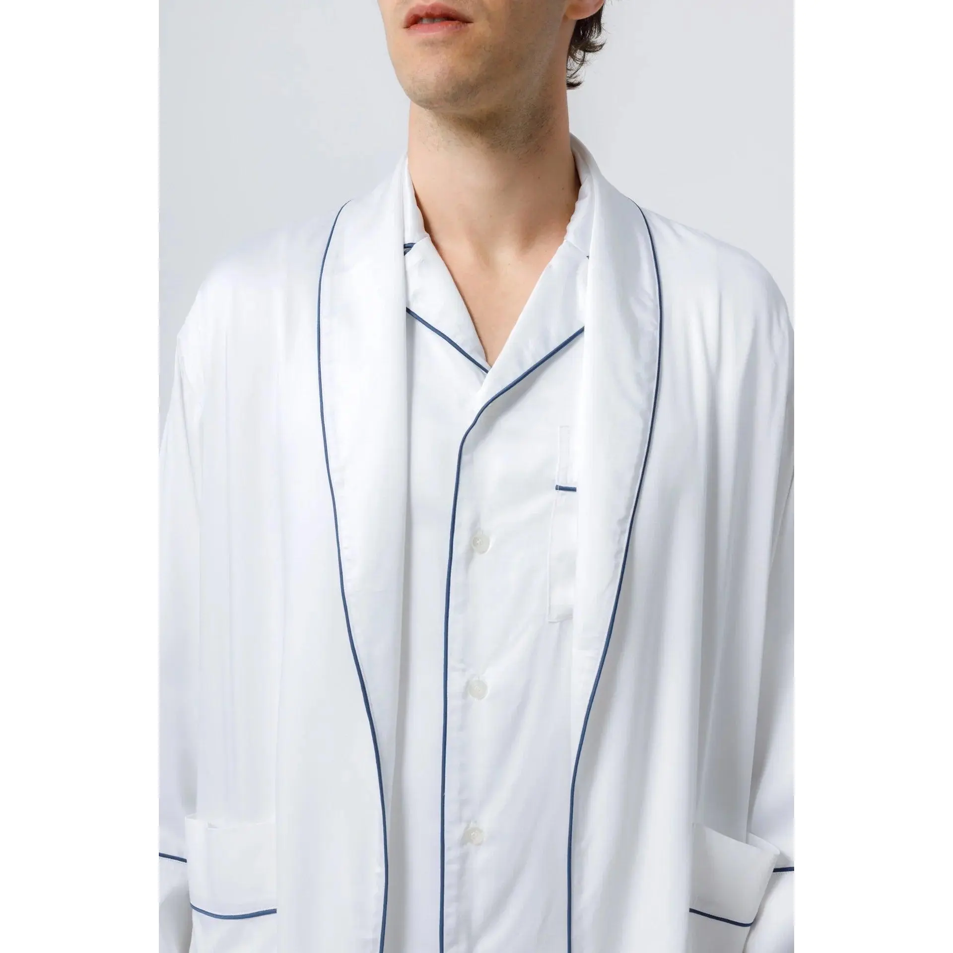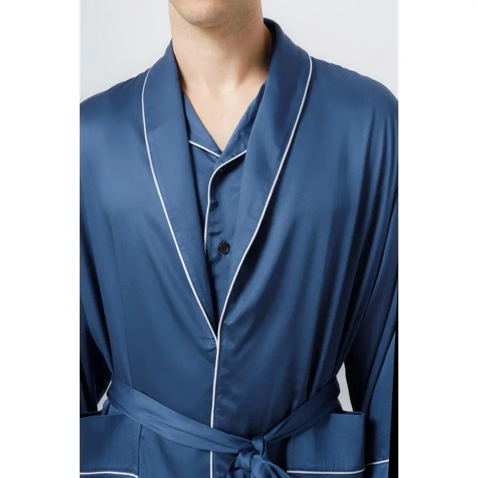 Our Men's shawl collar robe was a design generated while collaborating with the luxury lifestyle brand Takei. These exceptionally comfortable men's robes are perfect for stepping up your sleep game. The sustainable bamboo viscose material creates a superior comfort like you’ve never had in robes for men. Pair it with our matching bamboo pajamas for a complete set of blissful sleepwear.