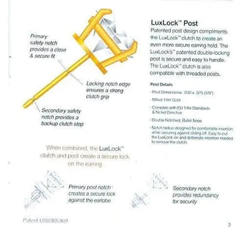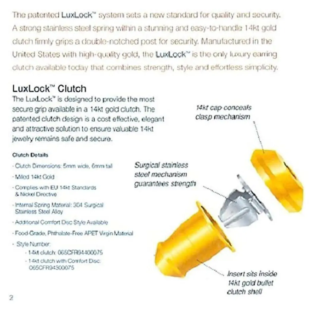 LuxLock World's most secure USA Patented Replacement Earring Back in 14k Yellow (Patent # US8365369)