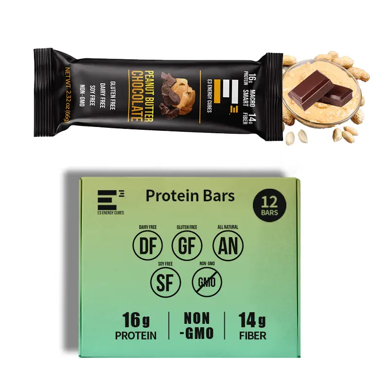Our Peanut Butter and Chocolate Protein Bar is filled with the traditional flavor of organic Peanut Butter and organic Chocolate.