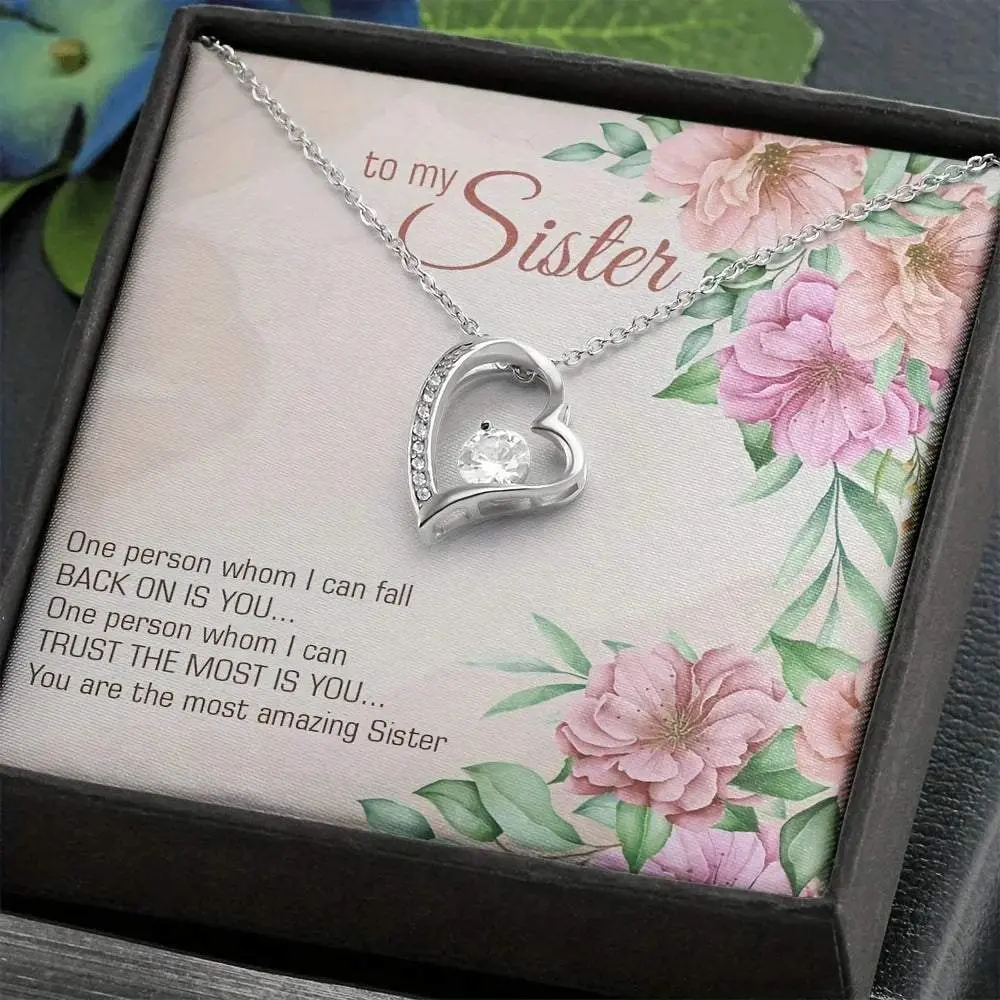 To My Sister Pendant Introducing the To My Sister Pendant – "Unbreakable Bond" Celebrating the irreplaceable bond between siblings, the To My Sister Pendant is a sparkling expression of trust, support, and the unique connection shared with your sister. It's a symbol of the love that stands strong through every life's journey. Features: Heartfelt Design: A heart-shaped pendant with a cubic zirconia stone symbolizing the preciousness of a sister's love. Exquisite Craftsmanship: Made with sterling silver for a lasting finish and a bright shine that mirrors the beauty of your bond. Inspirational Message: Accompanied by touching words that will remind your sister of your admiration and gratitude every day. Specifications: Material: 925 Sterling Silver with a clear cubic zirconia stone for that extra sparkle. Design: Elegantly crafted to be a cherished piece in any jewelry collection. Chain Length: Comes with a comfortable and adjustable chain, ensuring a perfect fit. Why Choose the To My Sister Pendant: Lasting Memory: A keepsake that will be treasured, reminding her of your special relationship. Adaptable Style: Suitable for both casual and formal occasions, making it the perfect everyday accessory. Endearing Gift: A meaningful present that expresses your deepest feelings for your sister. With Every Order: 1 To My Sister Pendant 2 Custom Forget Society Stickers Care Instructions: To maintain the luster, keep the pendant dry and clean with a soft cloth. Show your sister how much she means to you with this stunning pendant that she can carry close to her heart. Give the gift of love – Order the To My Sister Pendant now and strengthen the ties that bind.