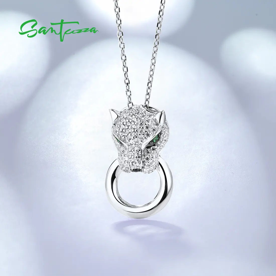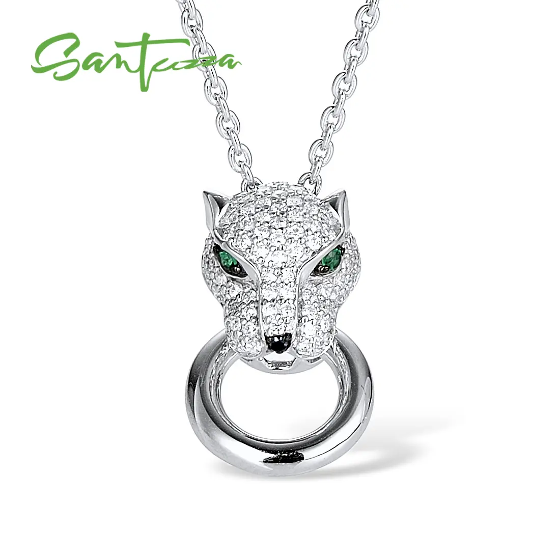 SANTUZZA 925 Silver White Cubic Zirconia Lab Created Green And Black Spinel Leopard Pendant Without Chain Fine Jewelry