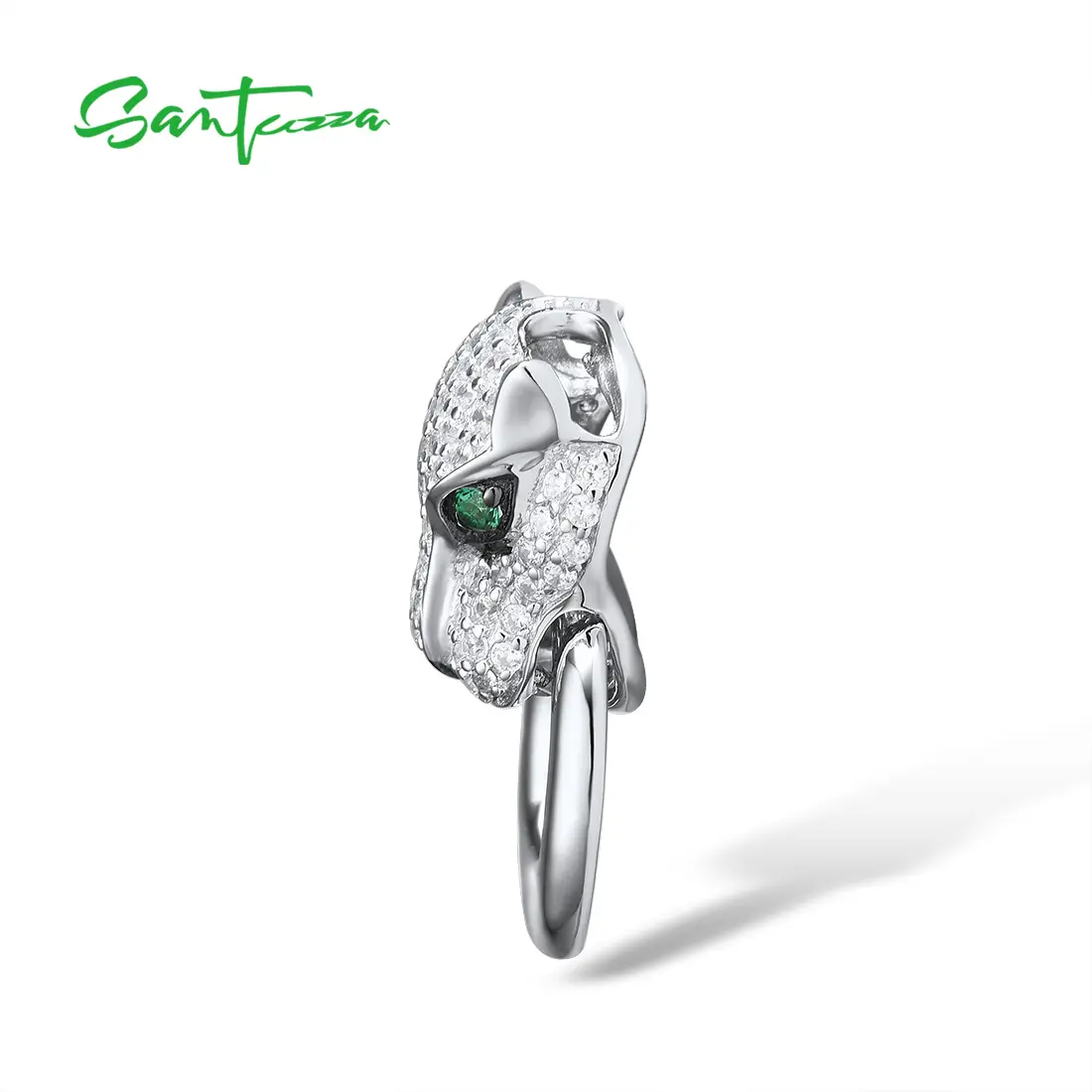SANTUZZA 925 Silver White Cubic Zirconia Lab Created Green Or Black Spinel Leopard Ring Fine Jewelry