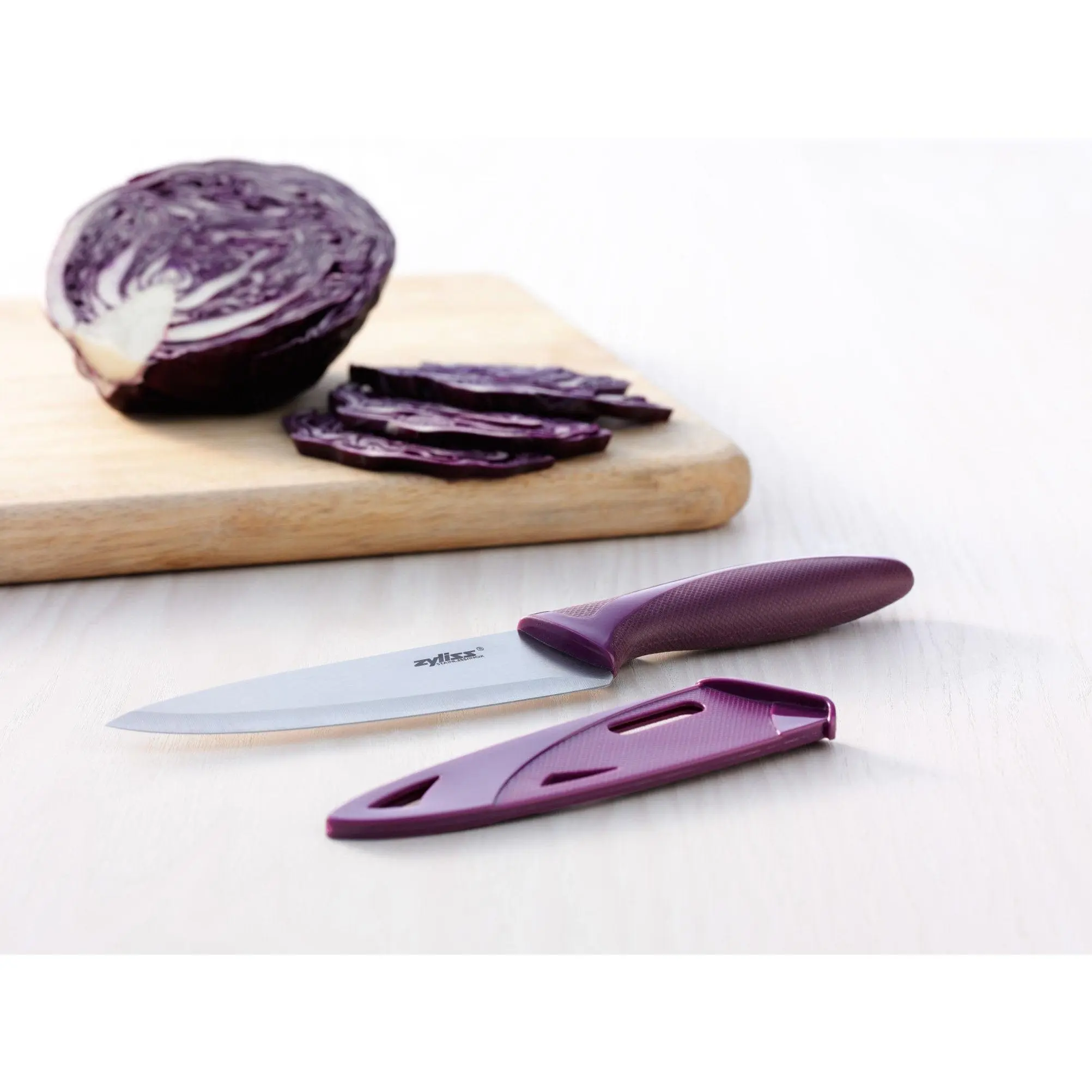The Zyliss Utility Knife is an all-purpose knife for slicing, peeling and cutting fruits and vegetable, breads and meats. It has an ergonomic handle with soft touch grip for precise cutting and control. Includes protective sheath that covers blade for travel and storage.