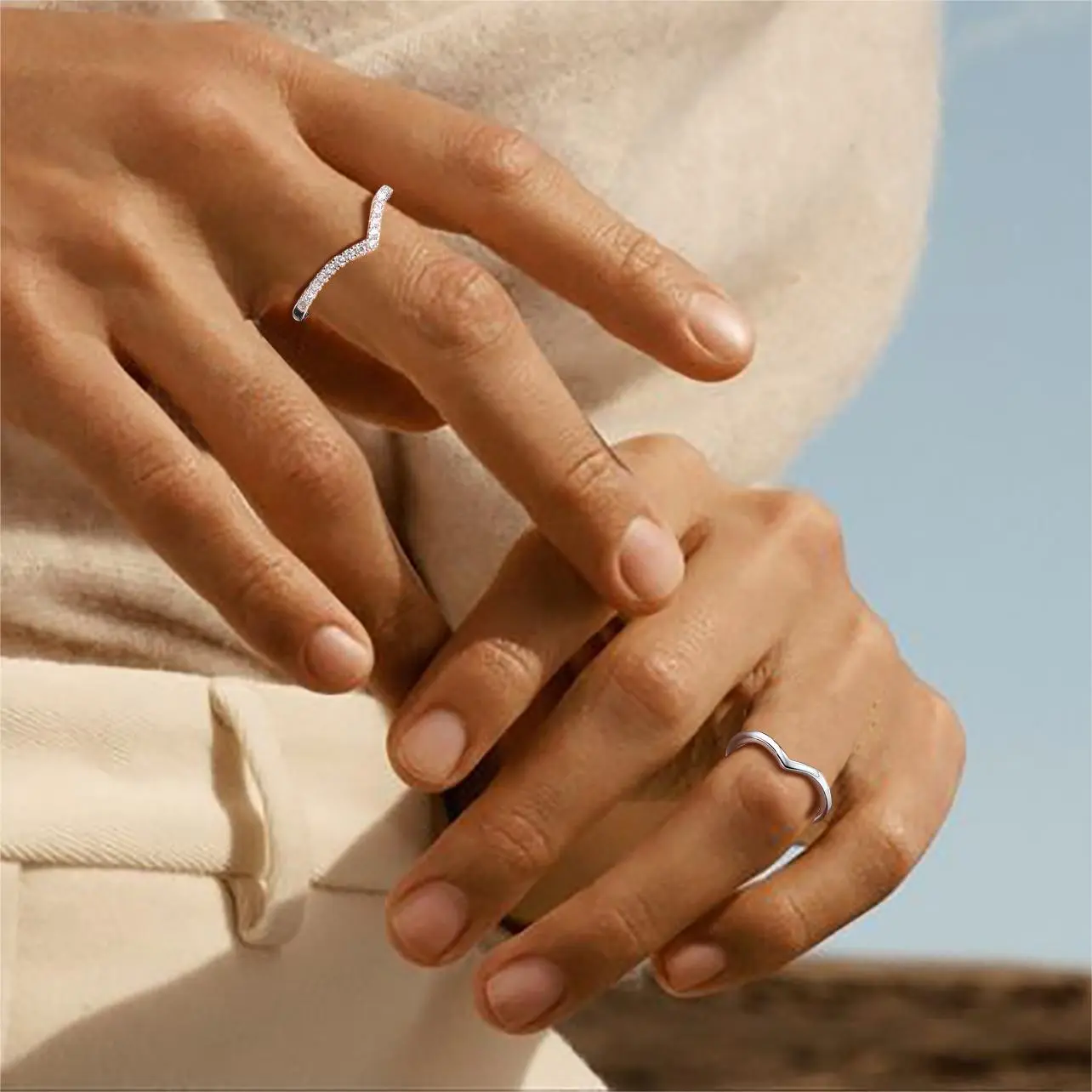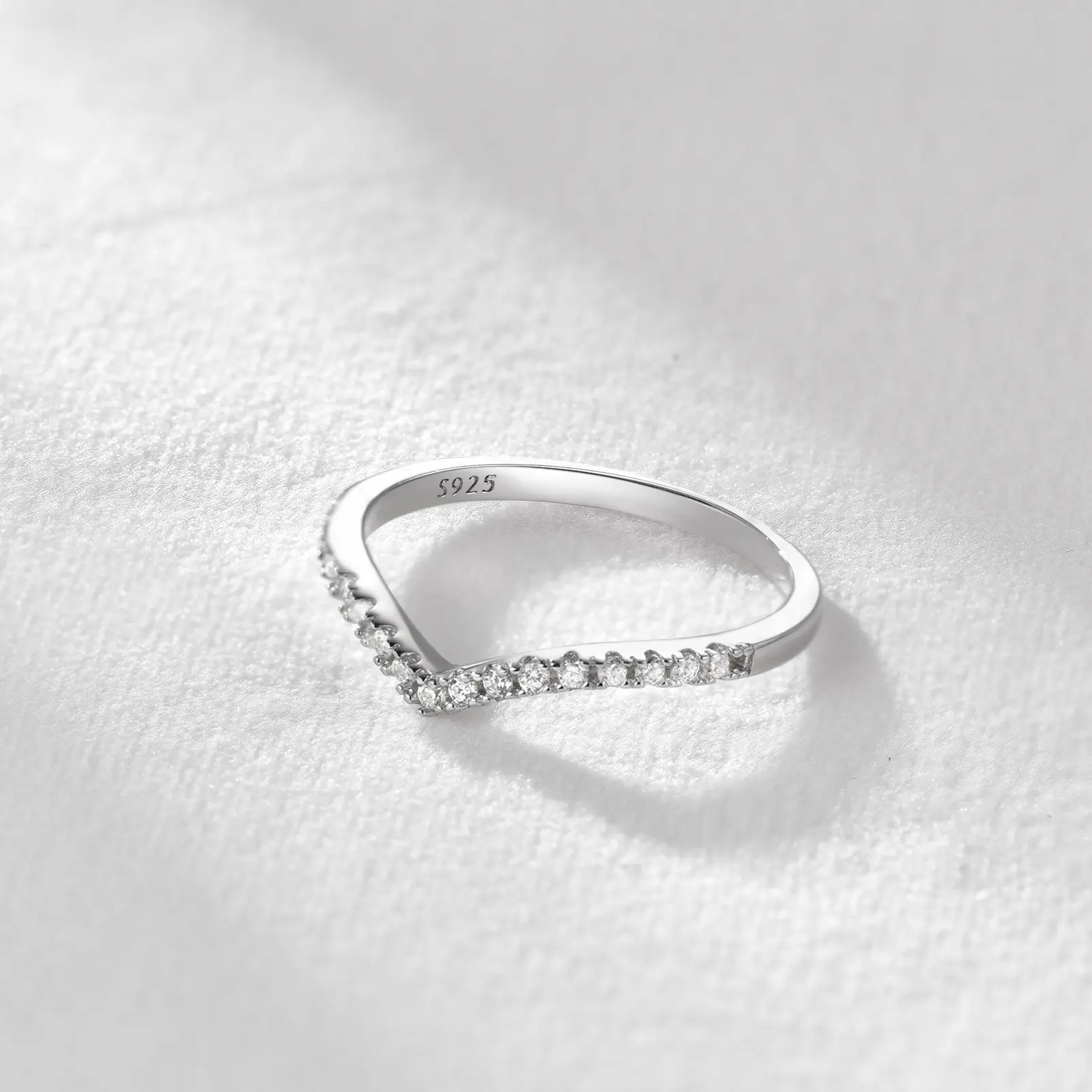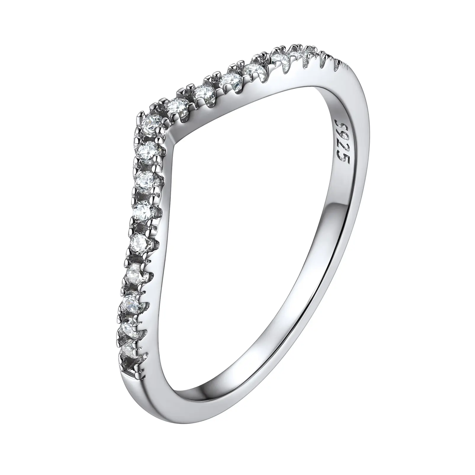 ChicSilver S925 Stackable Y Shape Plain Simple Daily Casual Unisex High Polished 925 Sterling Silver Cubic Zirconia Wishbone Rings Women's Day Gift for Women Men