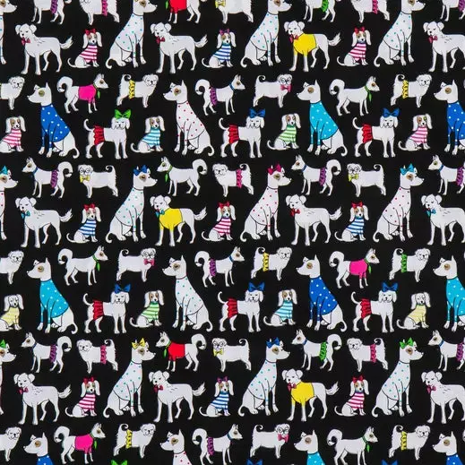 Be proud of your sewing creations by starting with a fun patterned fabric! Paw-Ty Time Cotton Calico Fabric features a black background with designs of adorable dogs in stylish accessories. This fabric will have you on your way to creating apparel, bags, accessories, decor, and more! Product Details Details: Width: 43" - 44" Weight: Lightweight Country Of Origin: Pakistan Content: 100% Cotton Care: Machine Wash, Warm; Tumble Dry, Remove Promptly. Do Not Bleach. Flammability Note: Not For Sleepwear Available in 1-yard increments. Average bolt size is approximately 7 yards. Price displayed is for 1-yard. Enter the total number of yards you want to order.