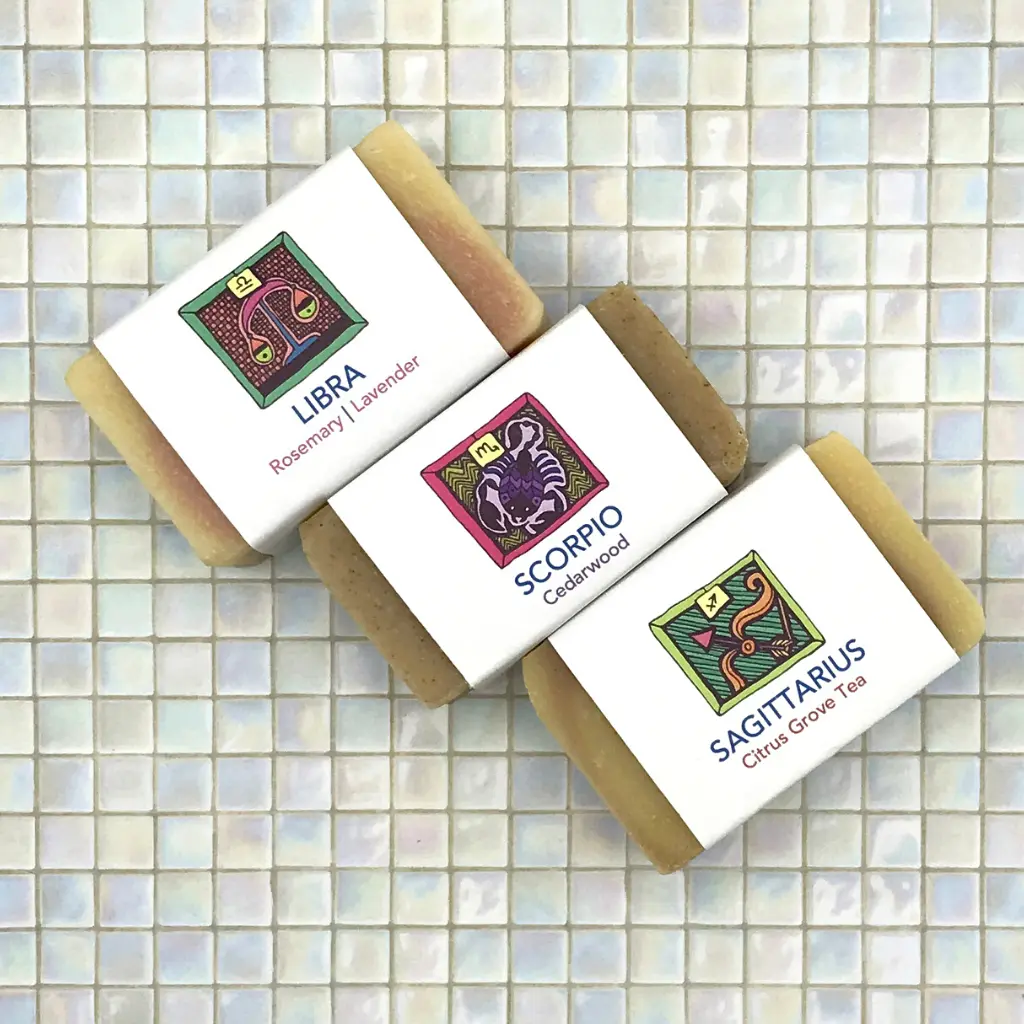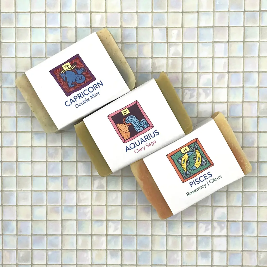 Zodiac Soap: A ritual bath, or shower, is a simple but effective tool that invites you to use the sacredness of body cleansing as a portal for gratitude, self-love and soulwork. Visualizing the water removing any stagnant energy, unhealthy thoughts or habits, or cleansing any negative experiences from you is a powerful practice. Use this handcrafted Zodiac soap and the sacred practice of mindful bathing as you approach your birthday. Made by The Goat Conspiracy, a small sustainably oriented farm and creamery that produces all things goat related.