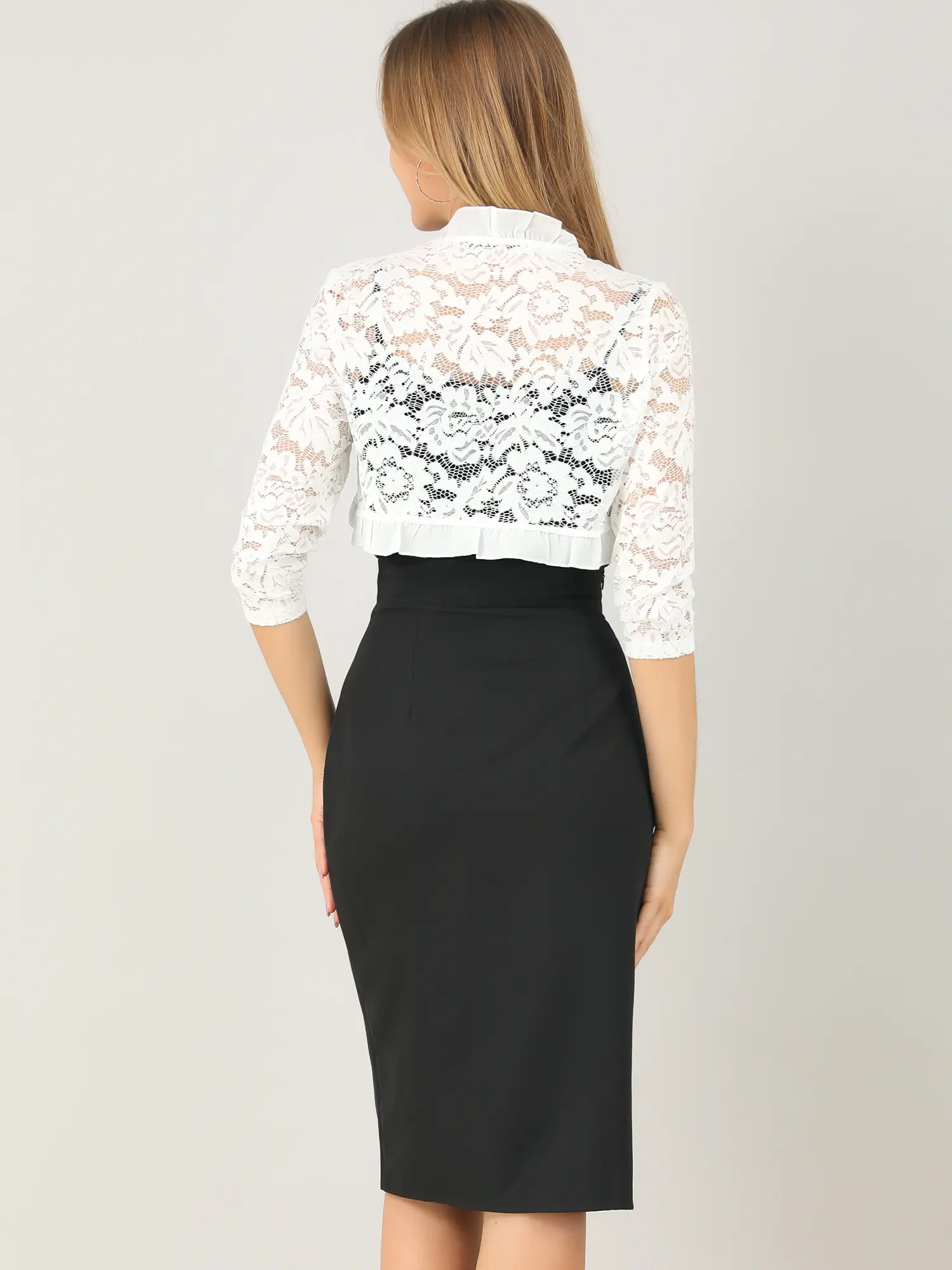 INSPIRE CHIC Elegant Ruffle Collar Crop Cardigan Sheer Floral Lace Shrug Top