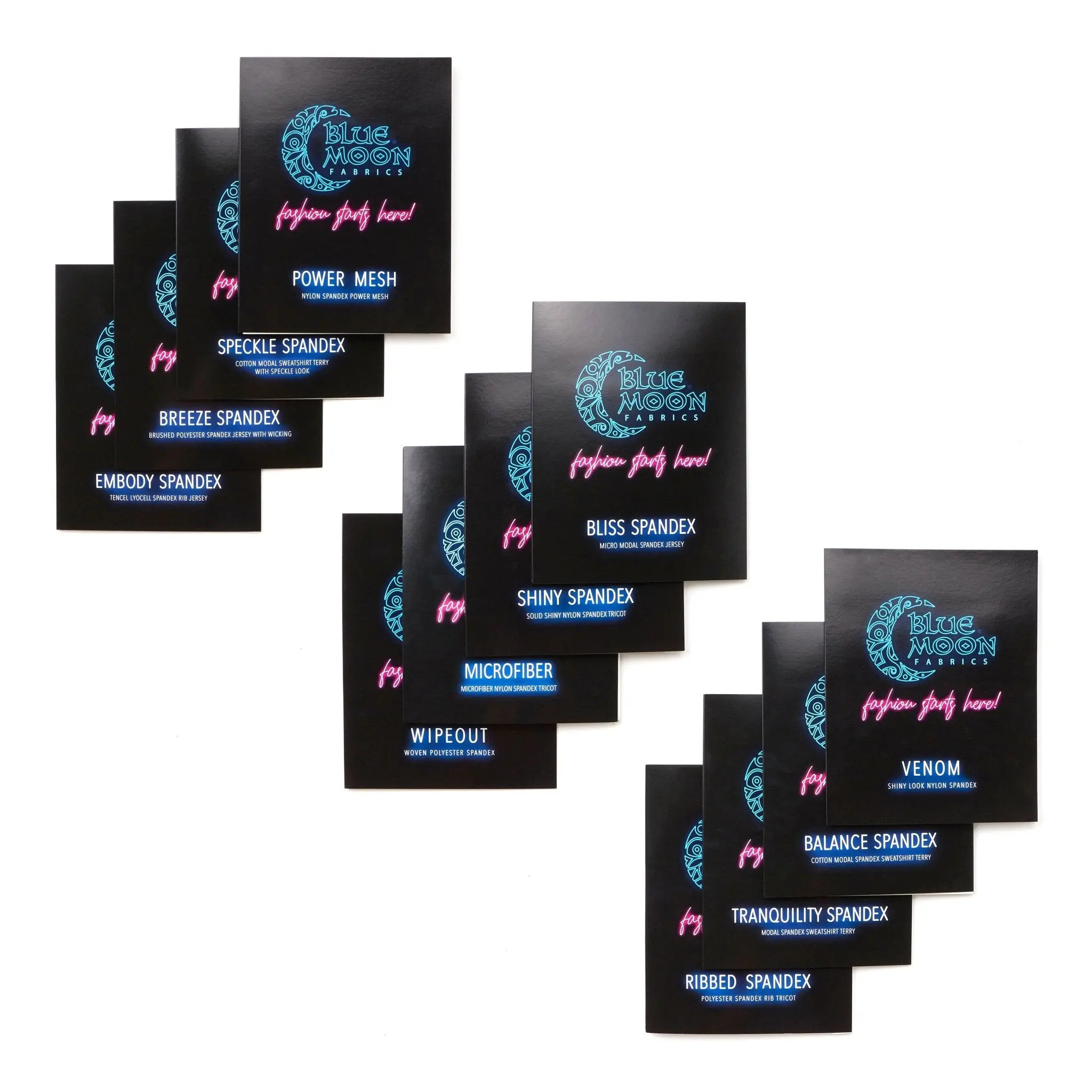 The Blue Moon Fabrics Color Card Bundle includes 38 Color Books and 1 Swatch Pack of all Regal Velvet. This collection provides an expansive range of colors with over 1,000 swatches for every need. Perfect for fashion designers, interior decorators, and fashion aficionados alike. It's the perfect blend of quality and convenience, all in one place. Enjoy texture and colors that will last for years, making it a timeless addition to any wardrobe or home. This high-quality fabric collection includes up to 1,000+ unique colors, making it the perfect selection for any project. With these color samples, you can make sure you are getting exactly the right shade of blue or red or anything in between. Plus, it's a great choice for long-term use due to its durability and longevity.