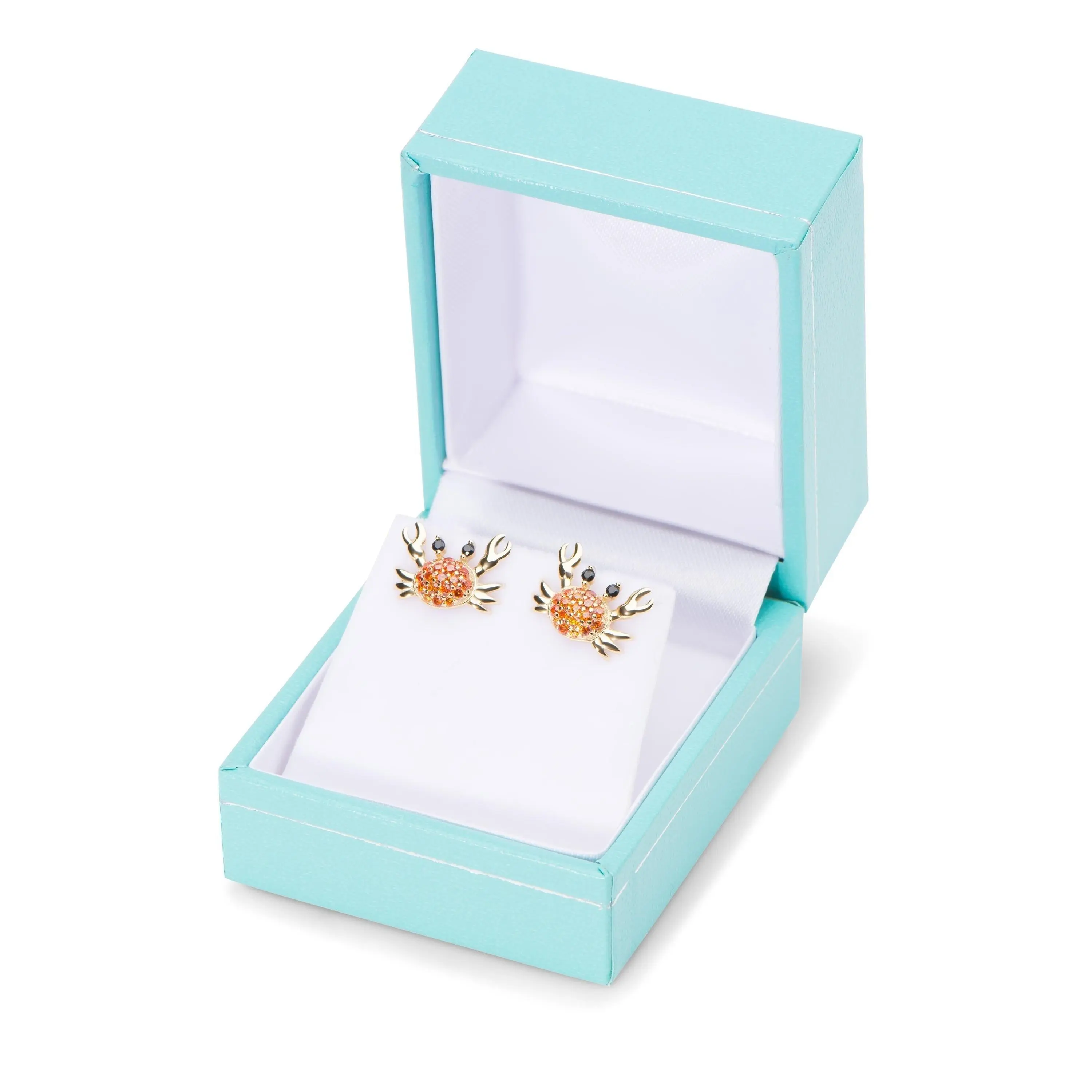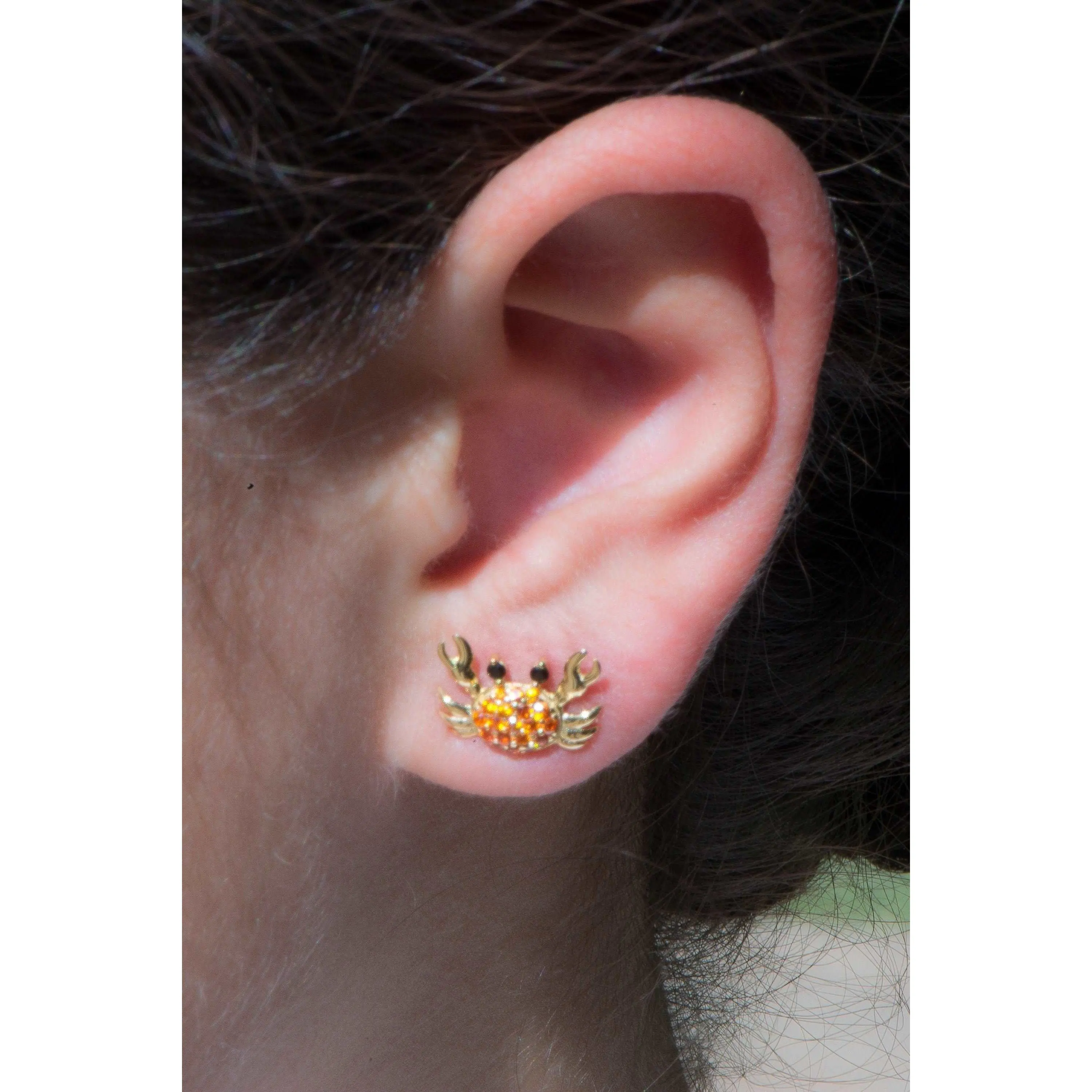 Sea lovers Dream Sterling Silver Crab Earrings, dainty Under the Sea fun Ocean Jewelry, Solid Sterling Dainty Silver Crab Earrings, Secure push back post set with orange cubic zirconia stones prong set on this dainty Crab design.