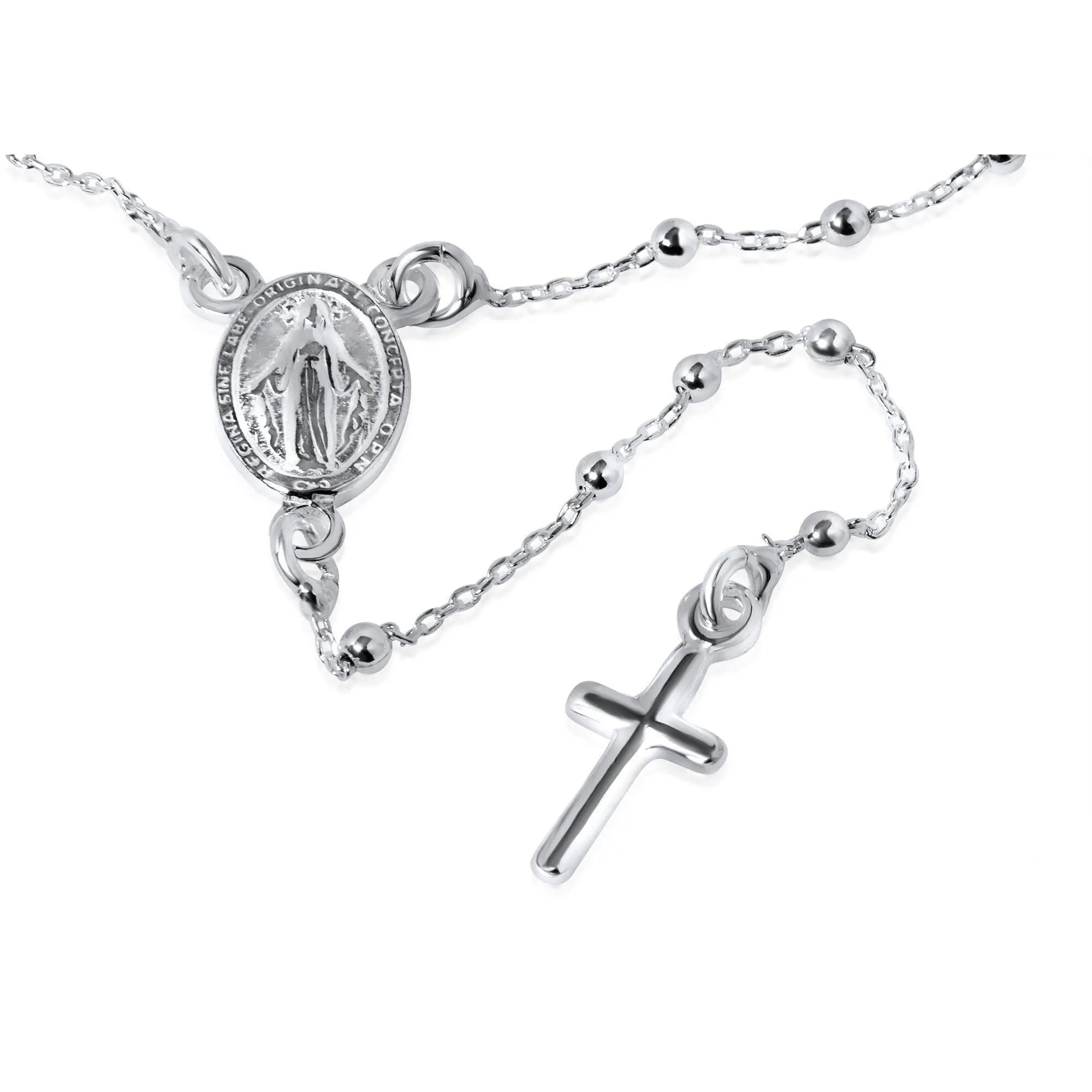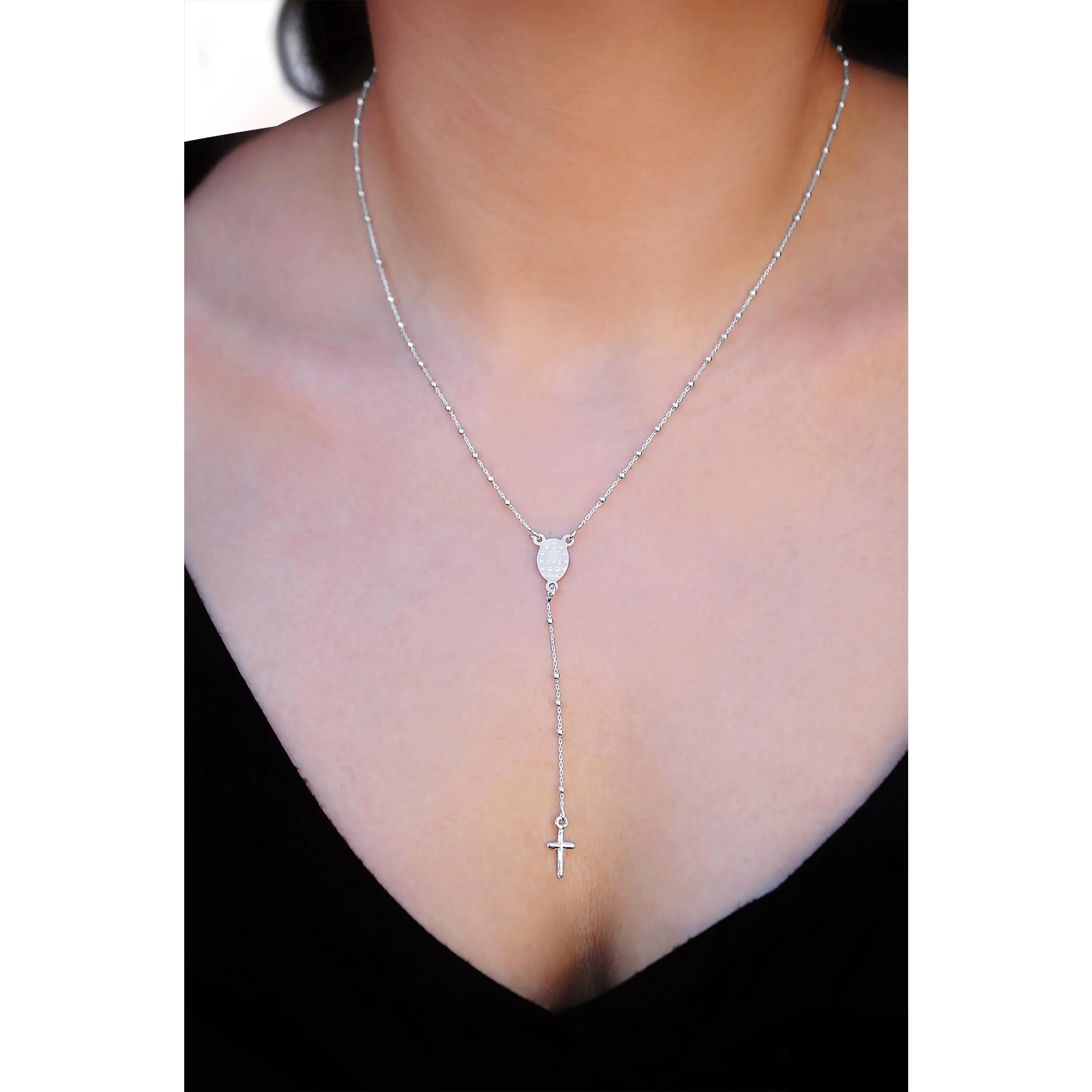 silver rosary necklace women's