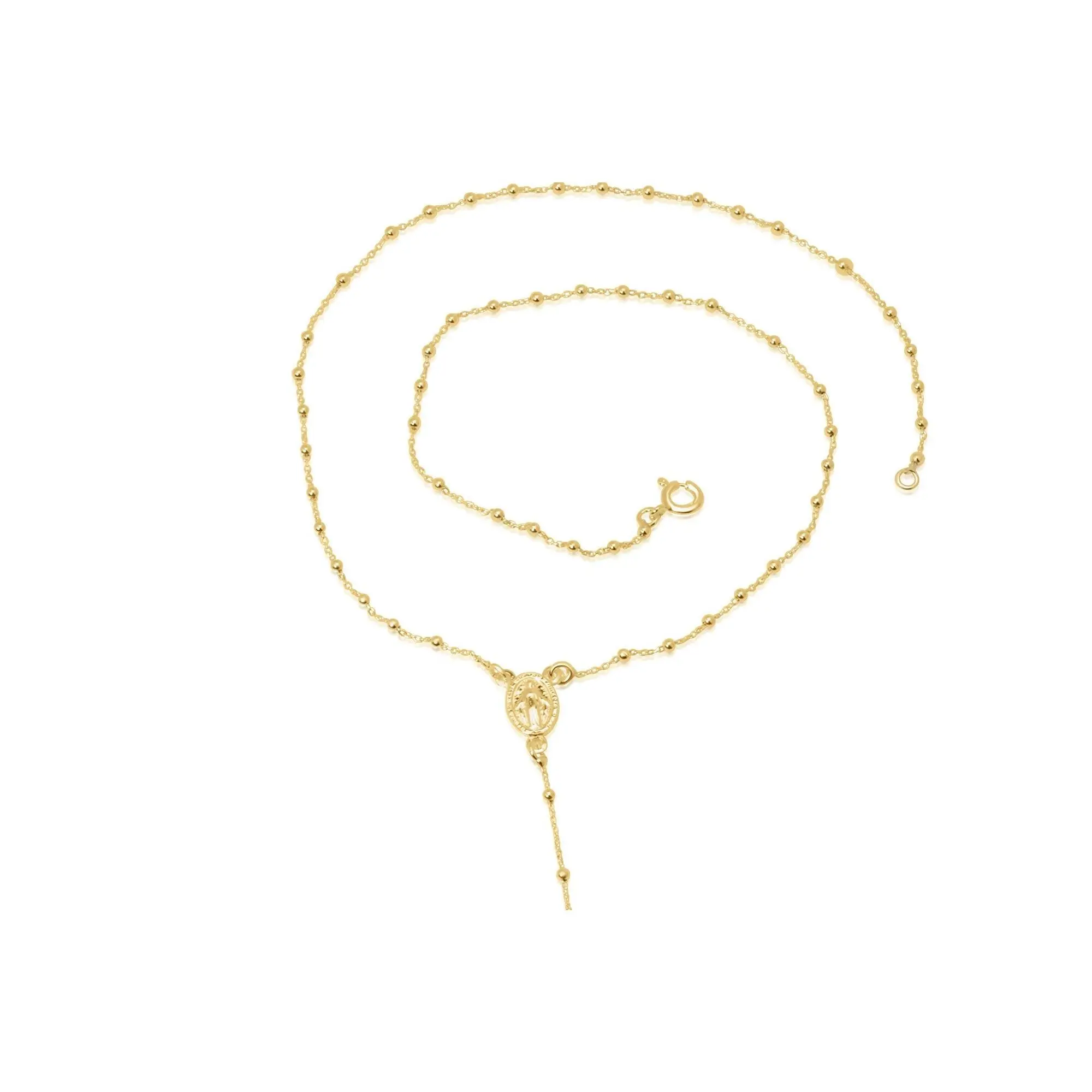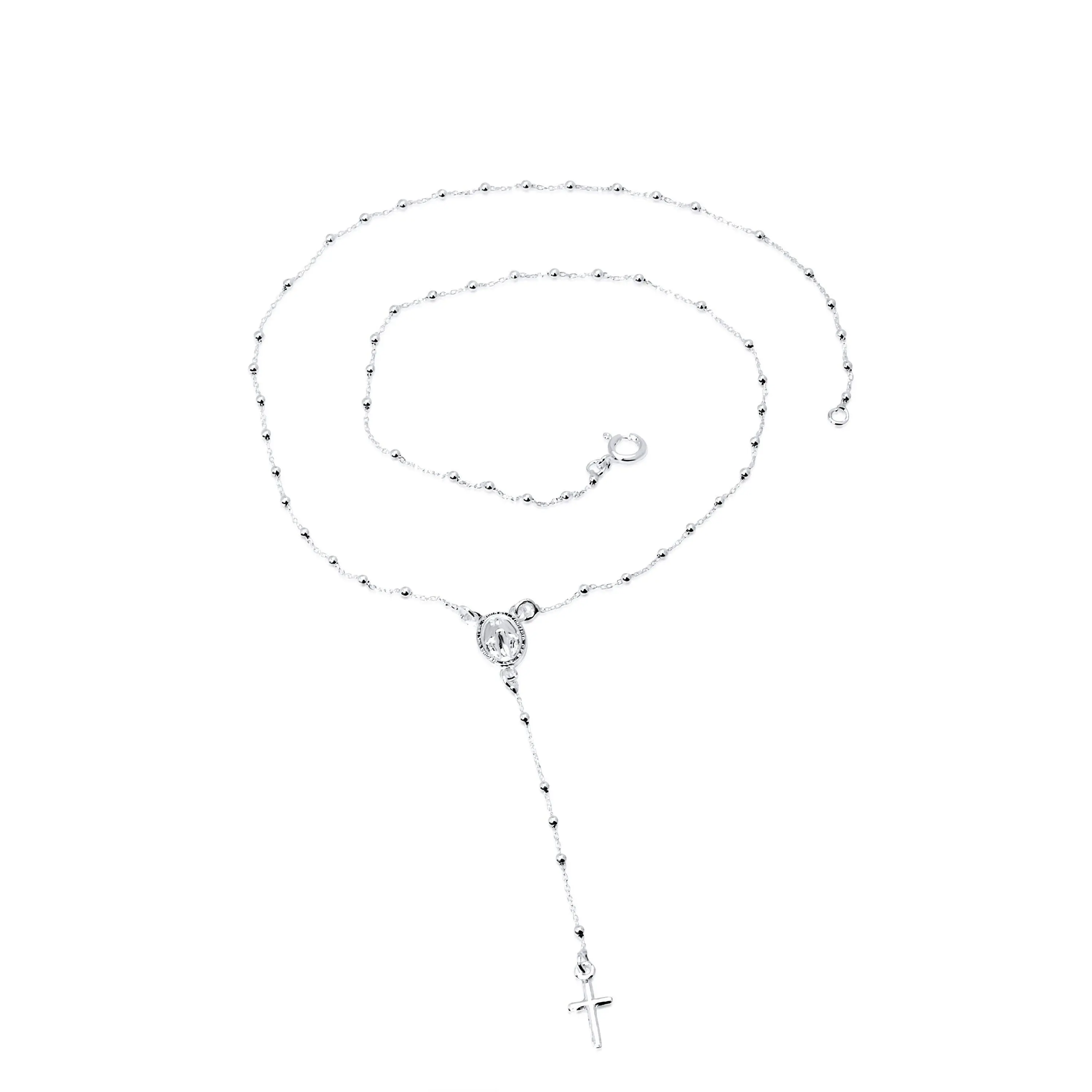 Solid Sterling Silver Rosary Necklace 17" chain, Silver ball bead Lariat confirmation gift religious traditional Baptism gift Rosary