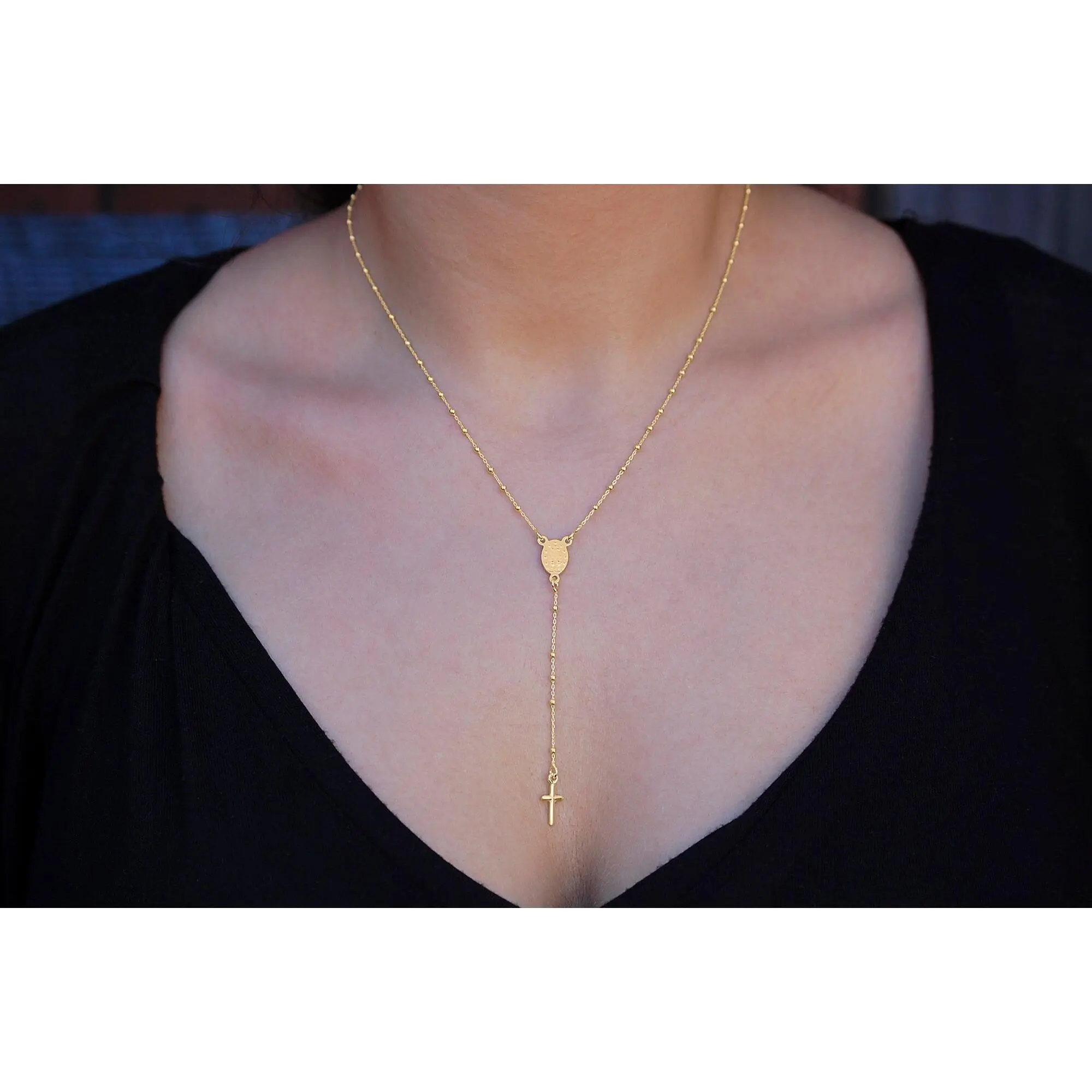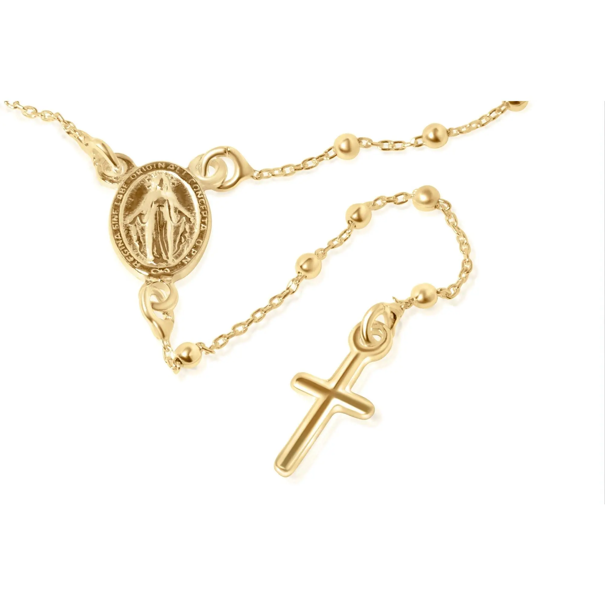 Tewiky Greenish Spring Gold 4mm Copper Beads Rose Necklace for Women Gold Zircon Round Pendant Virgin Mary Y-Chain Rose Gold Jesus Cross Fashion Jewelry Set ForEaster Gift