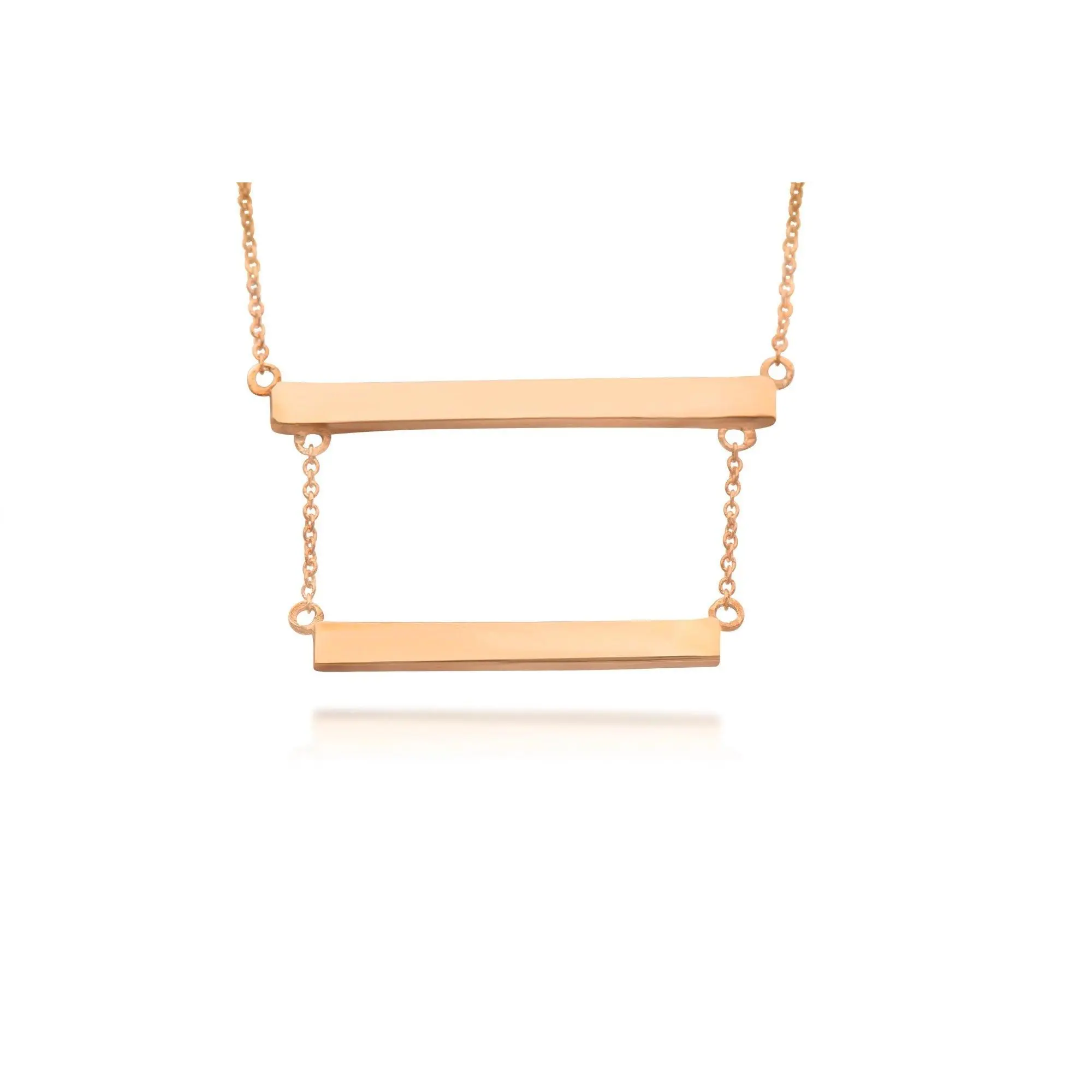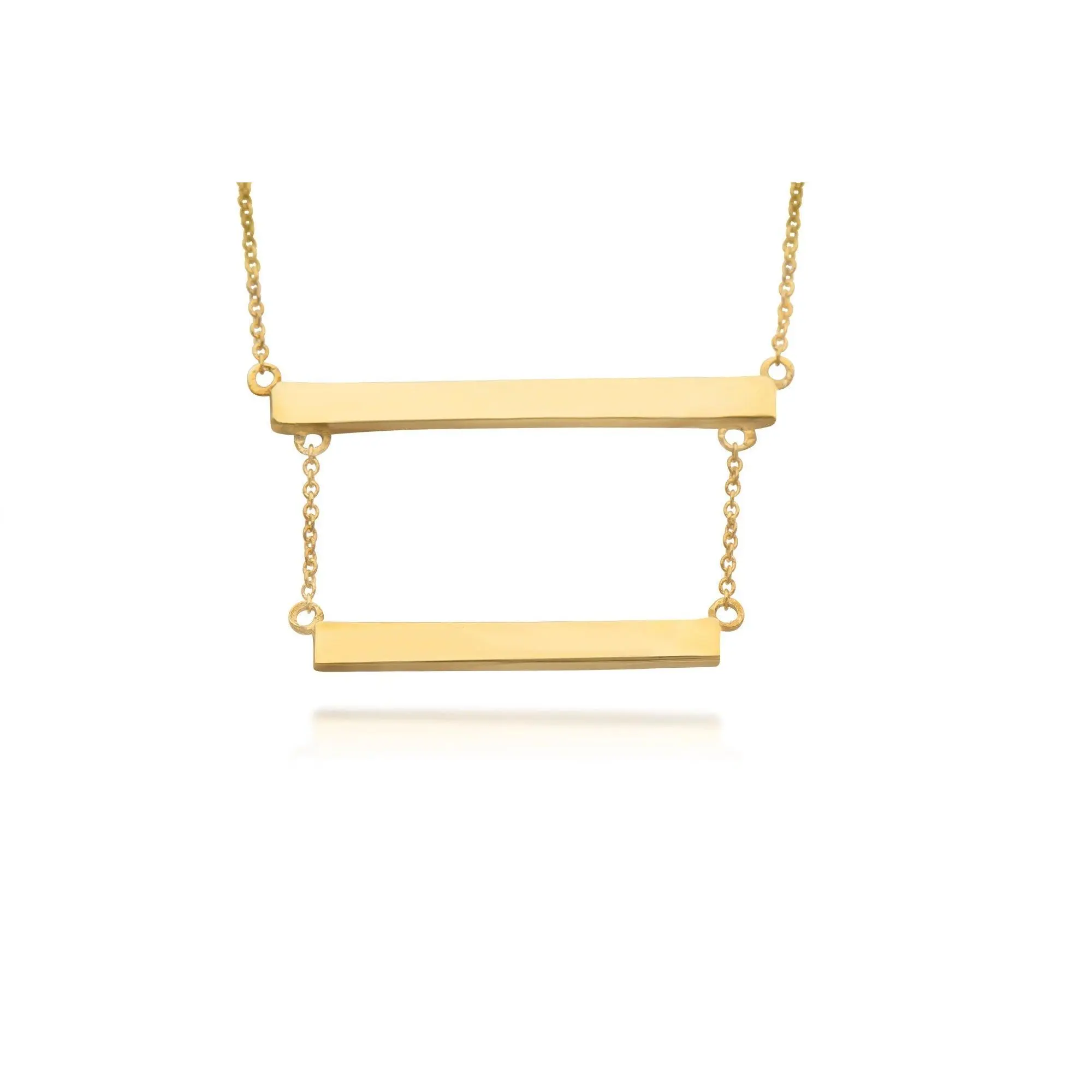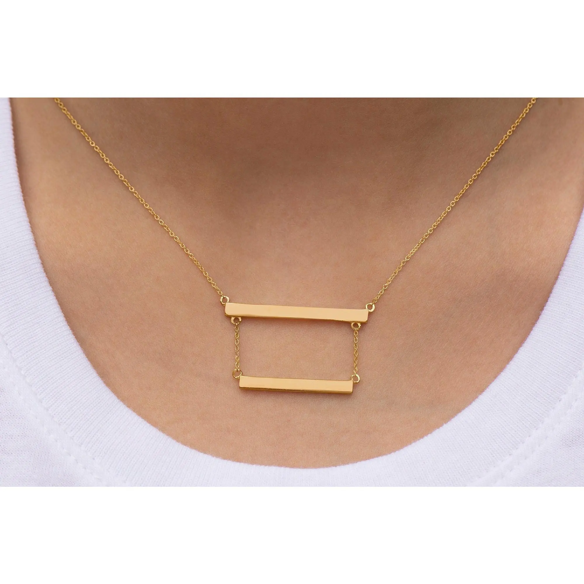 Sterling Silver Double Bar Necklace, Both bars and cable link chains are made with non-tarnish solid sterling silver, and the yellow and rose gold options are electroplated over Sterling Silver. The bars are spaced out 1/2" between one another.
