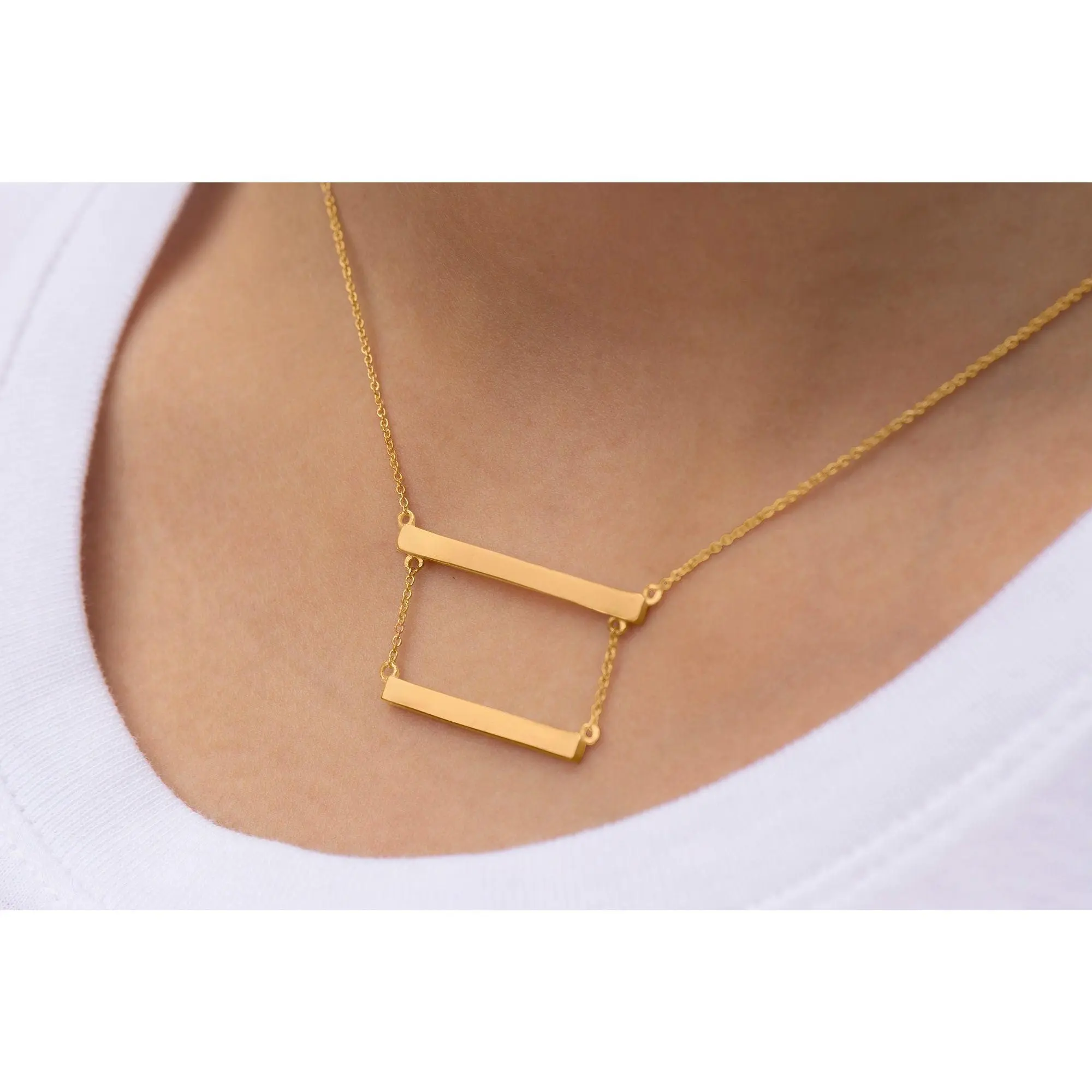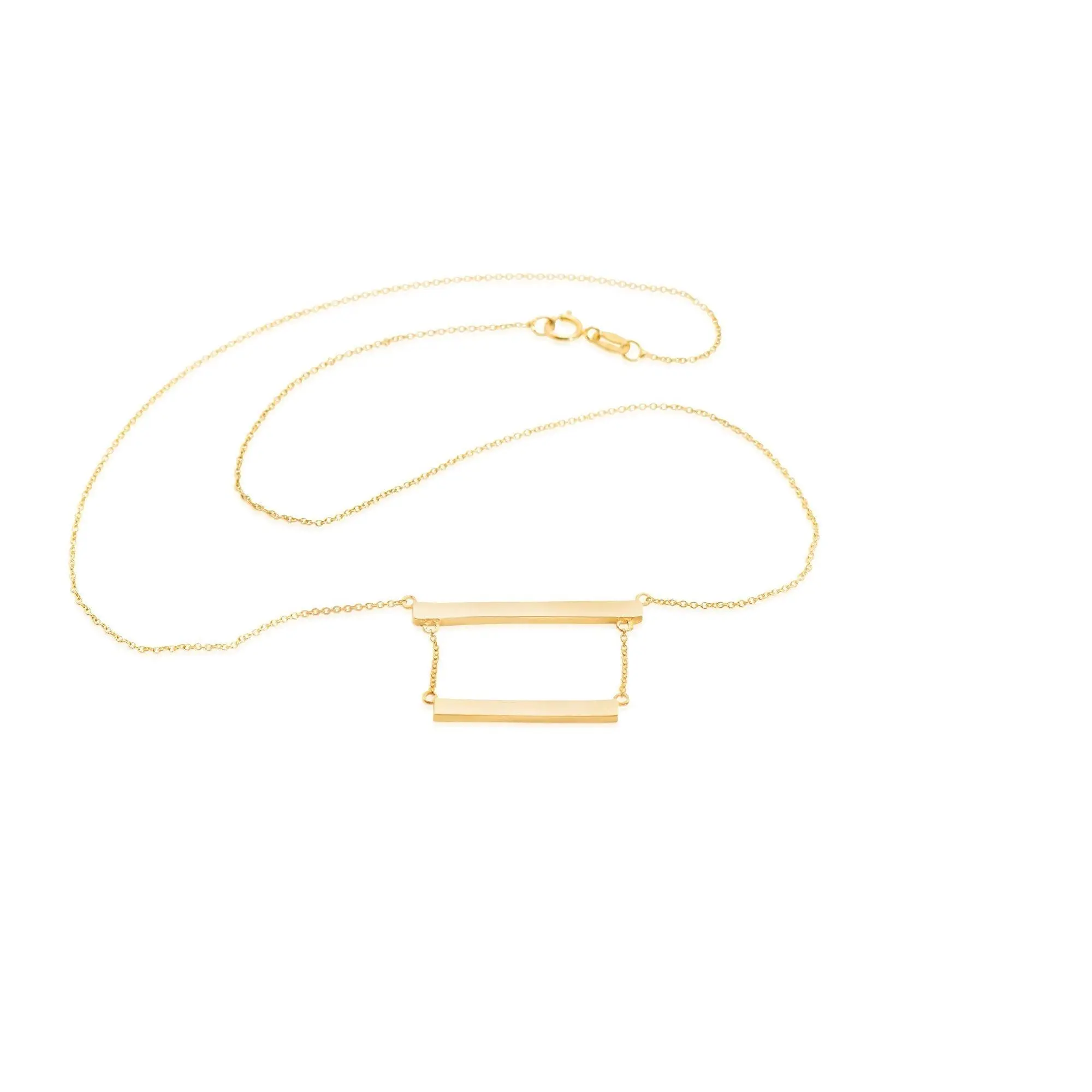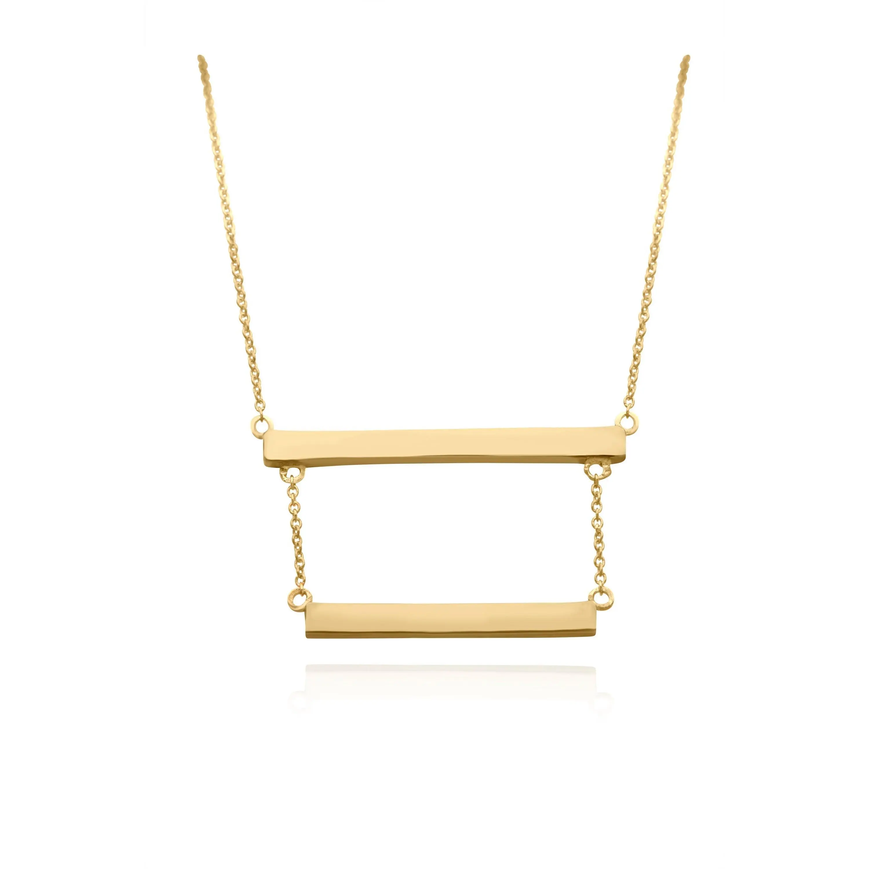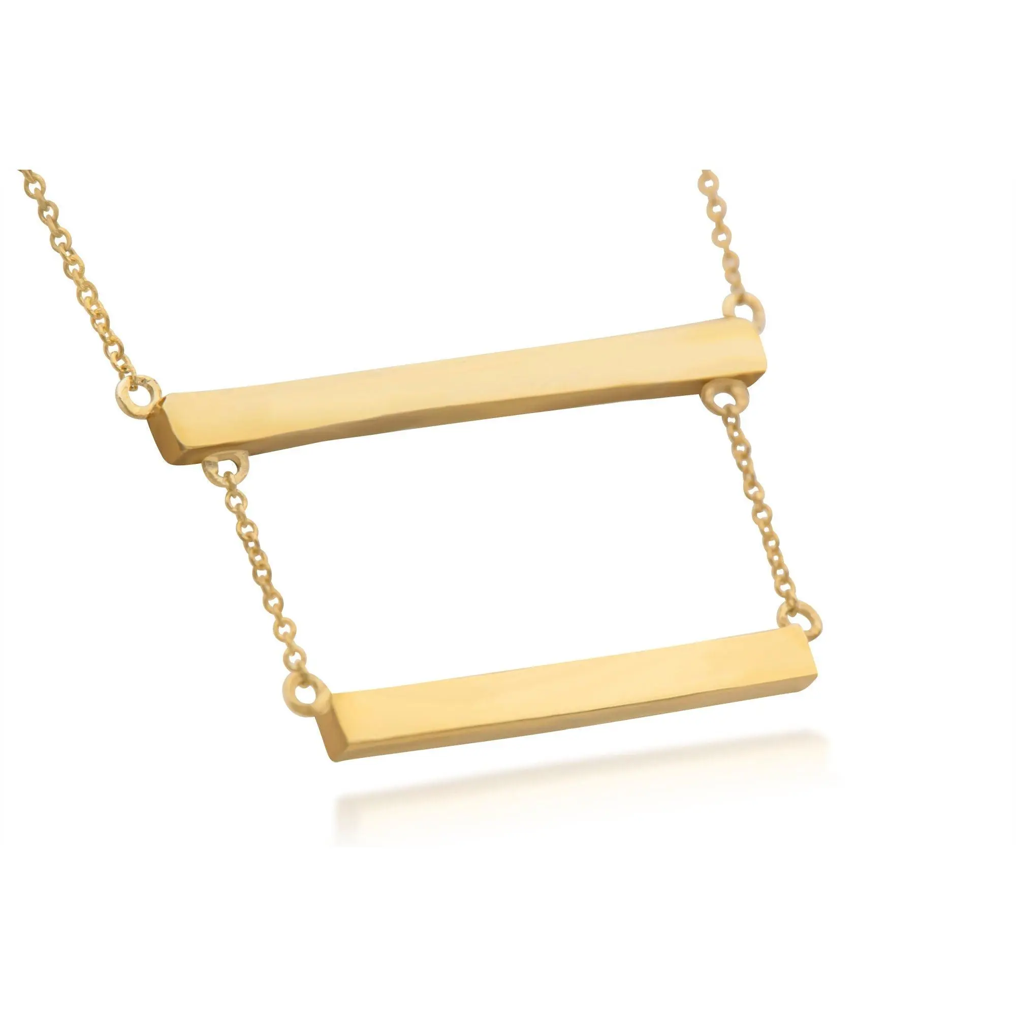 Sterling Silver Double Bar Necklace, Both bars and cable link chains are made with non-tarnish solid sterling silver, and the yellow and rose gold options are electroplated over Sterling Silver. The bars are spaced out 1/2" between one another.