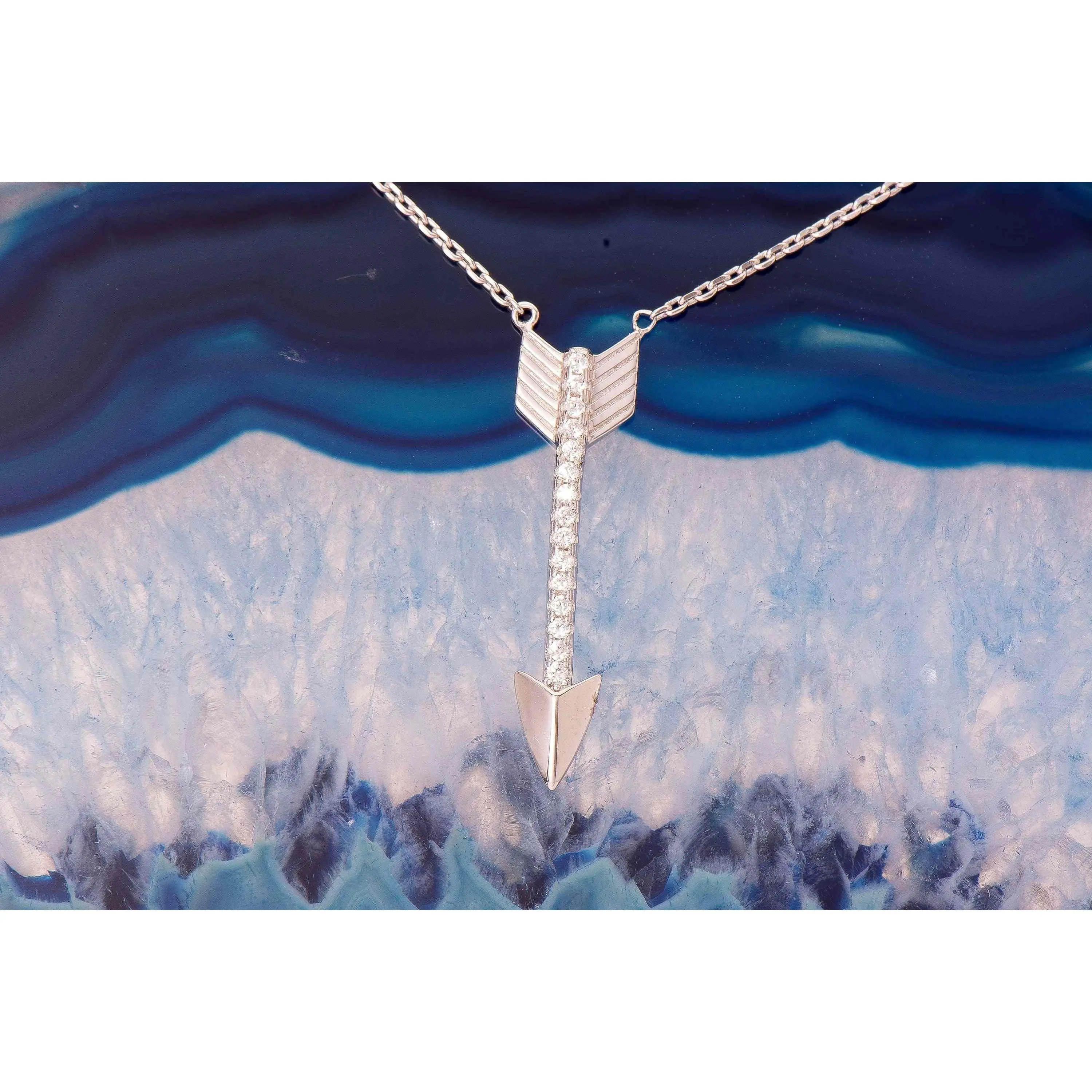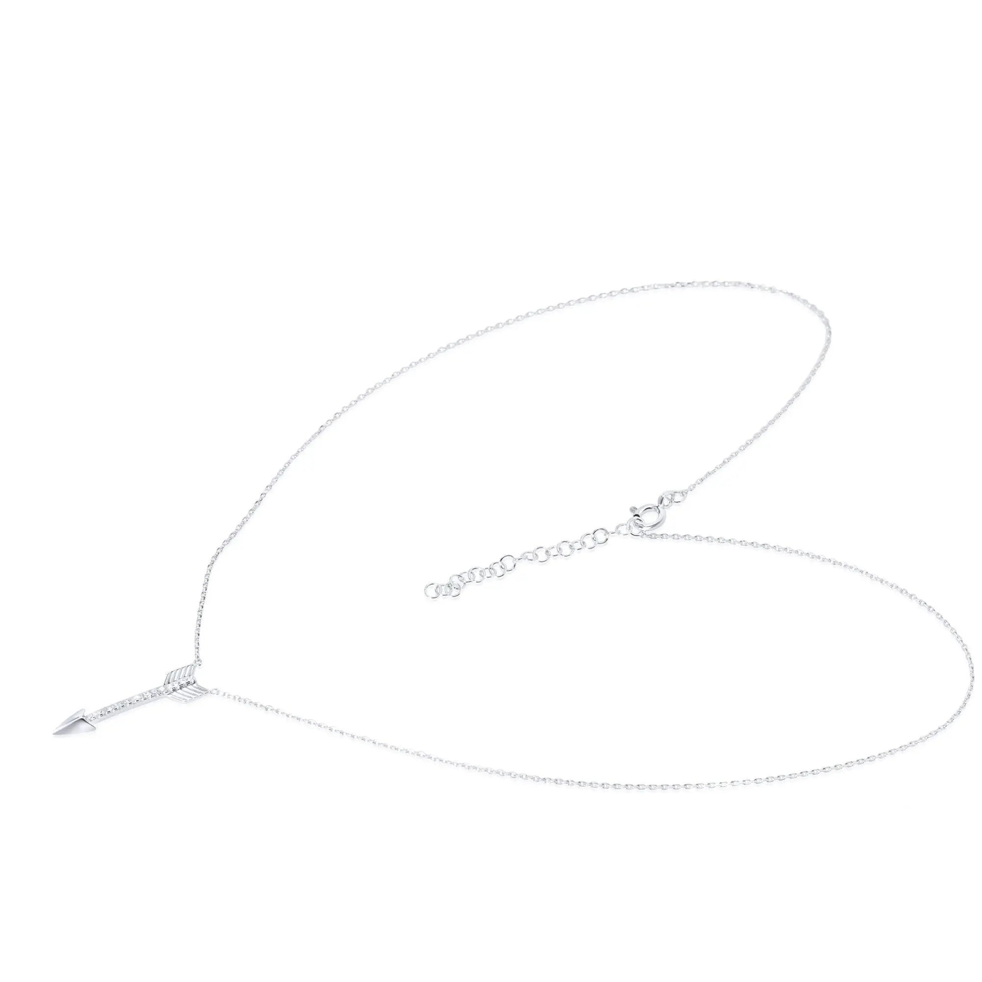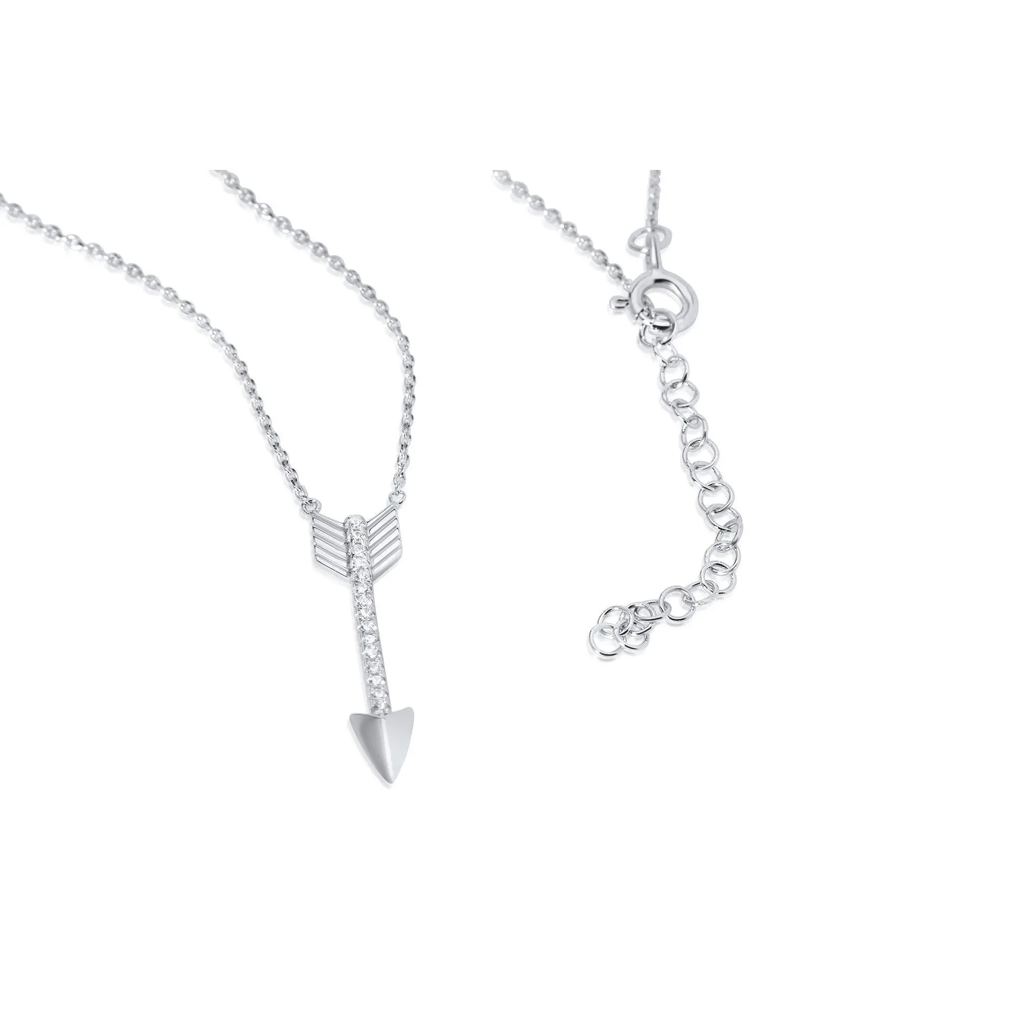 Solid Sterling Silver Vertical Arrow Necklace, 15 round brilliant cut cubic zirconia are prong set on this pointing down Arrow design. The Sterling Silver 16" cable link chain has a 1.5" extension so you can adjust the length. Aim straight to her heart with this on-trend fashion necklace.