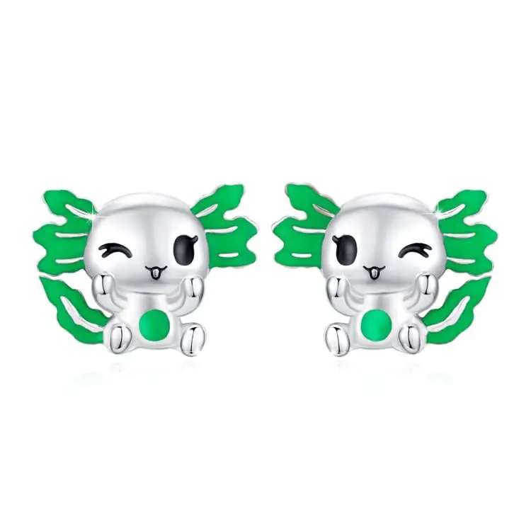 ·AXOLOTL EARRINGS -- the Axolotl is an animal that represents health and healing potential. this stud earring features a super cute animal axolotl plated with green, adorable and petite.