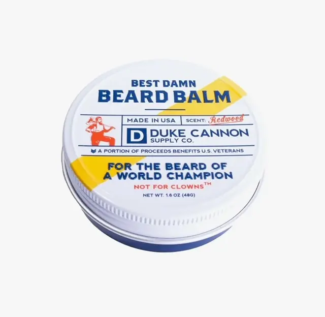 While a well manicured beard is a symbol of power and prestige, an unruly and disheveled beard has the potential to lead society into complete anarchy. Do your duty and maintain your beard with 1.6 oz tin Duke Cannon's Best Damn Beard Balm. Made with superior grade ingredients like lanolin and cocoa butter, our Beard Balm helps moisturize and protect a man's beard and the face underneath it. With a pleasant woodsy fragrance, it’s like a portable Redwood forest in your pocket.