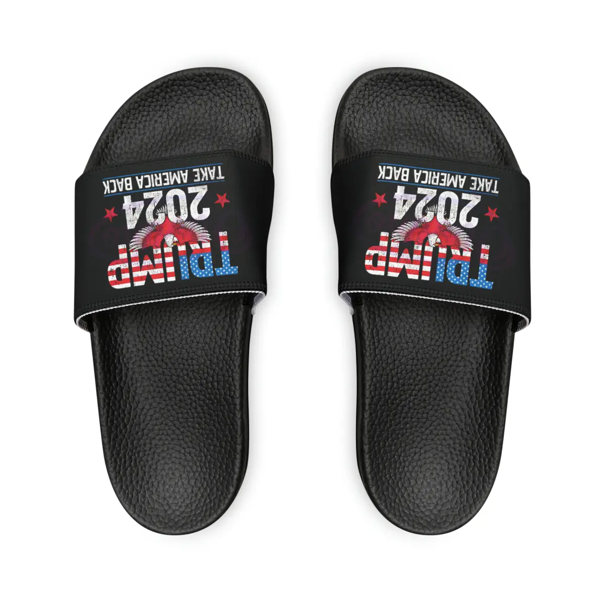 Men's Trump 2024 Take America Back MAGA Comfy PU Slide Sandals Footwear Walking Shoes Flipflop Boy Slipper Comfort Tsinelas Dance