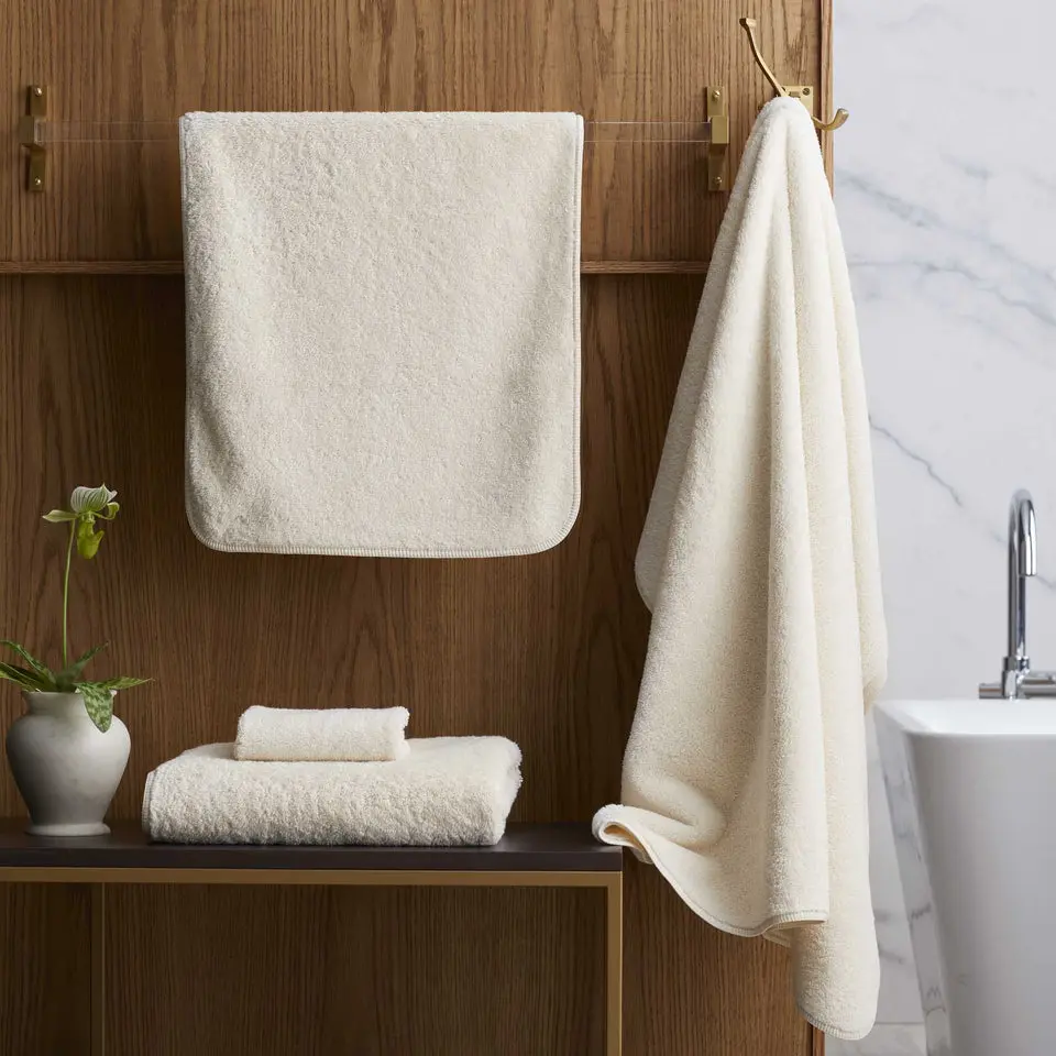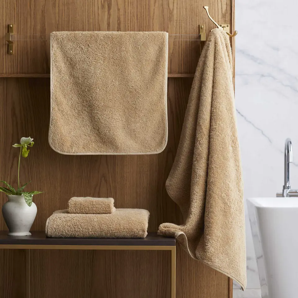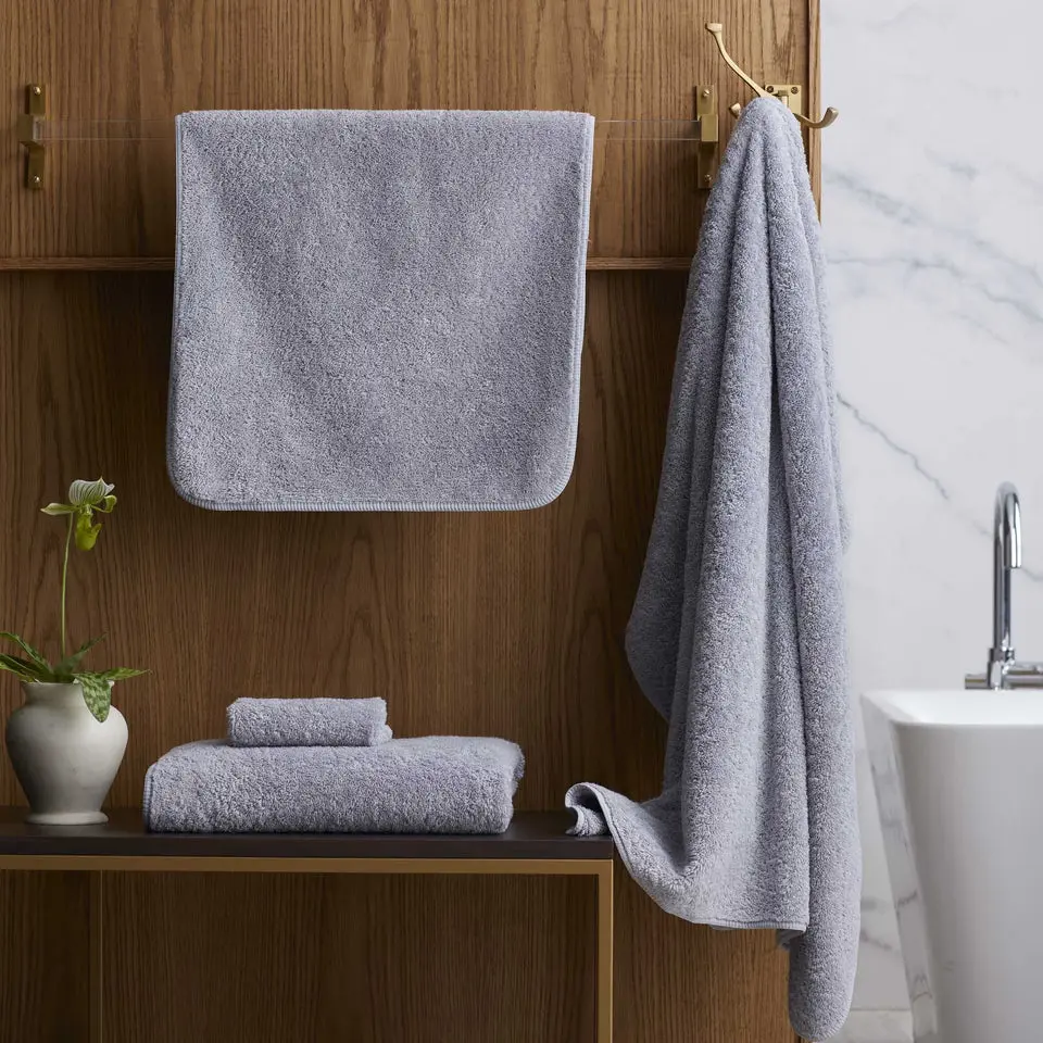 100% Egyptian cotton, super-looped terry, 700 GSM, bias binding. Vat-dyed and pre-washed for highest softness and absorbency.