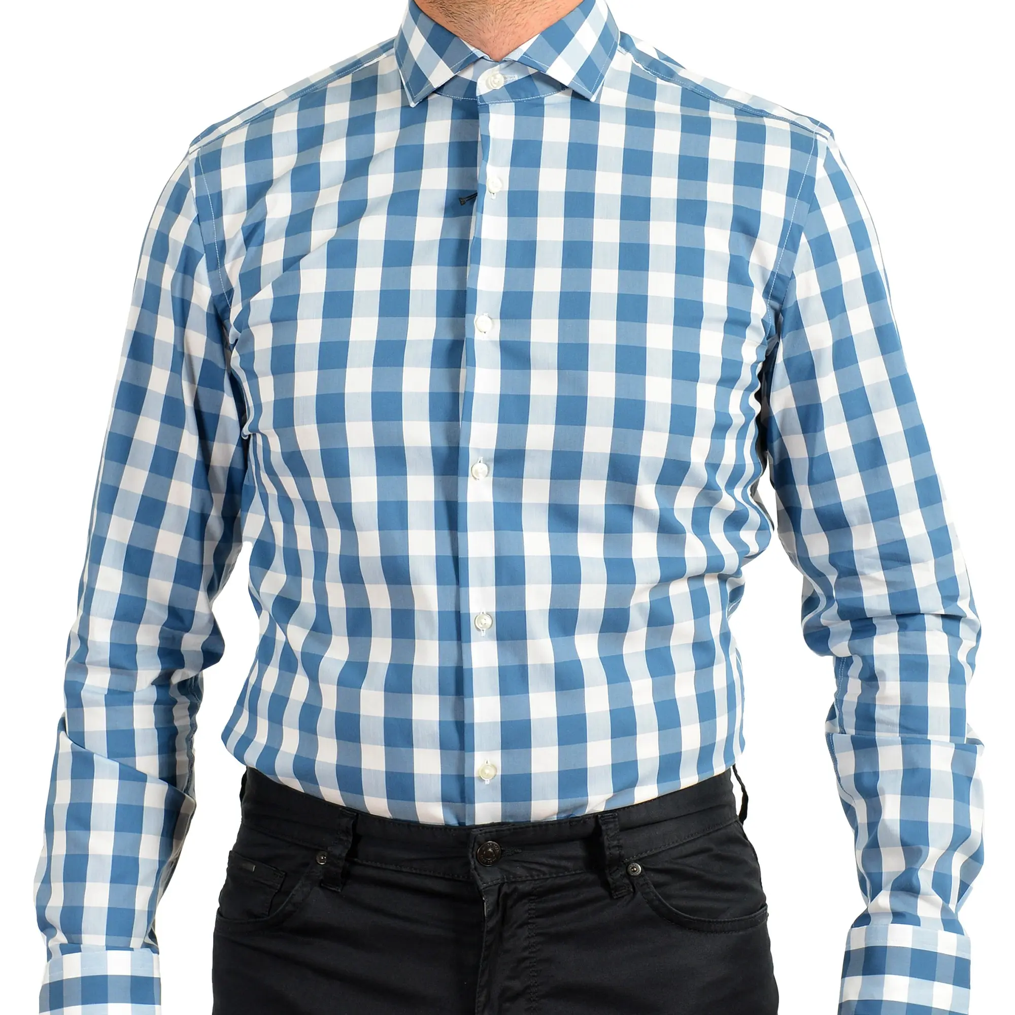 Hugo Boss Men's Multi-Color Slim Fit Plaid Long Sleeve Dress Shirt US 17 IT 43
