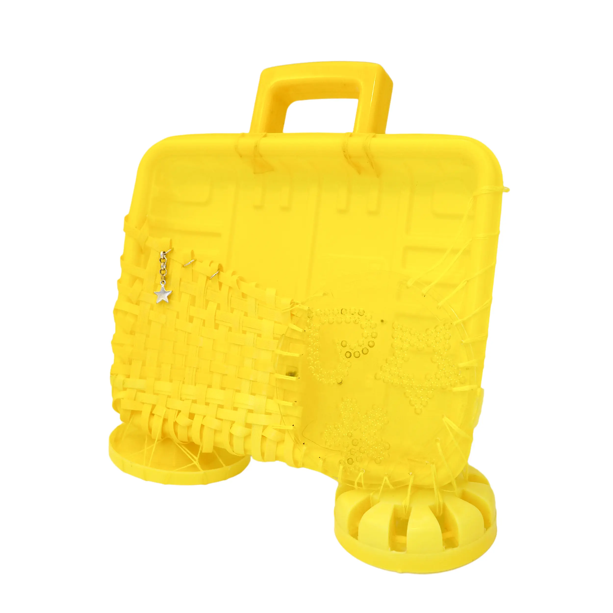 This 1-off Yellow Purse is the perfect combination of cute and retro, making it a bold and fashion forward accessory to add to any outfit. Its playful mini suitcase design is sure to turn heads with its space age style.