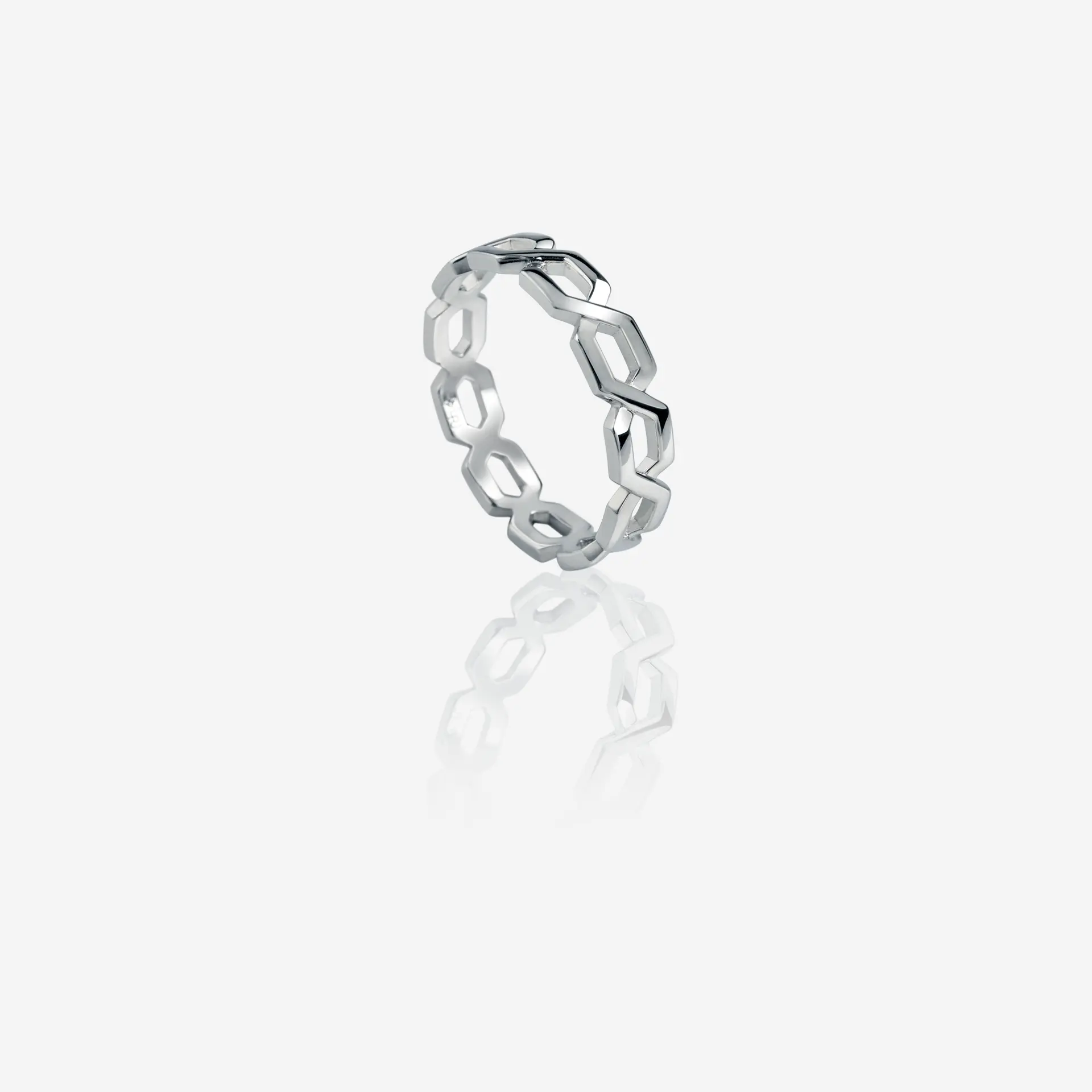 Intricate latticework meets sterling silver sophistication. The Lattice Stacking Ring is a testament to refined craftsmanship, providing a versatile piece that captures both the heritage and the delicate beauty of Thai design. Worn solo or stacked, this ring is perfect for any occasion.