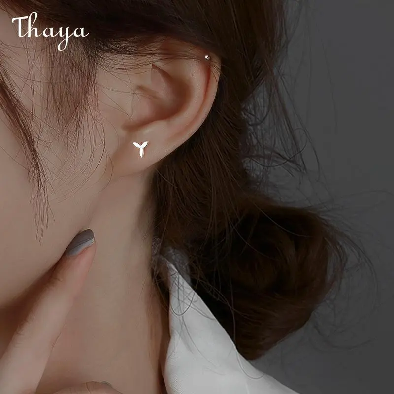 Thaya 925 Silver Asymmetric Kitten Fishbone Stud Earrings