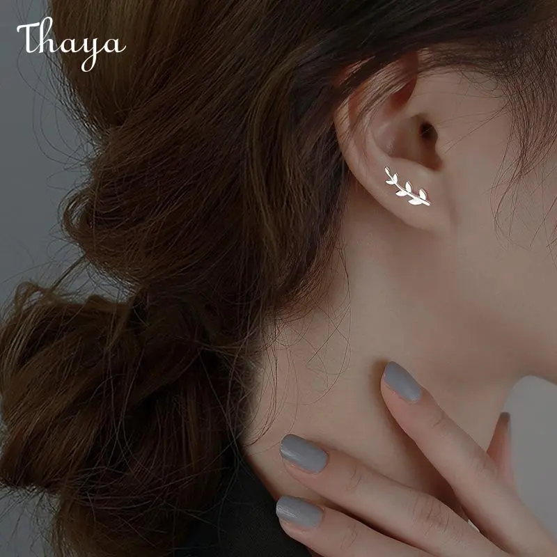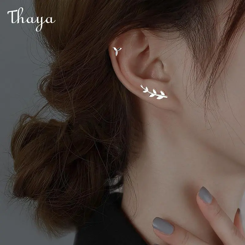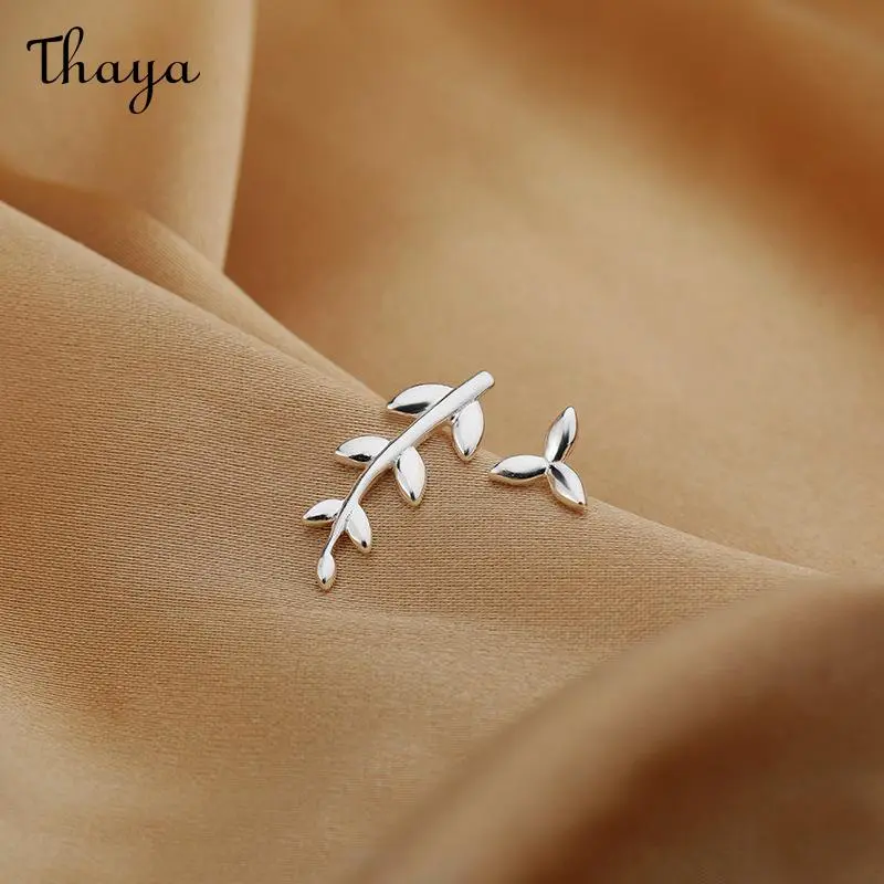 Thaya 925 Silver Asymmetric Leaf Stud Earrings