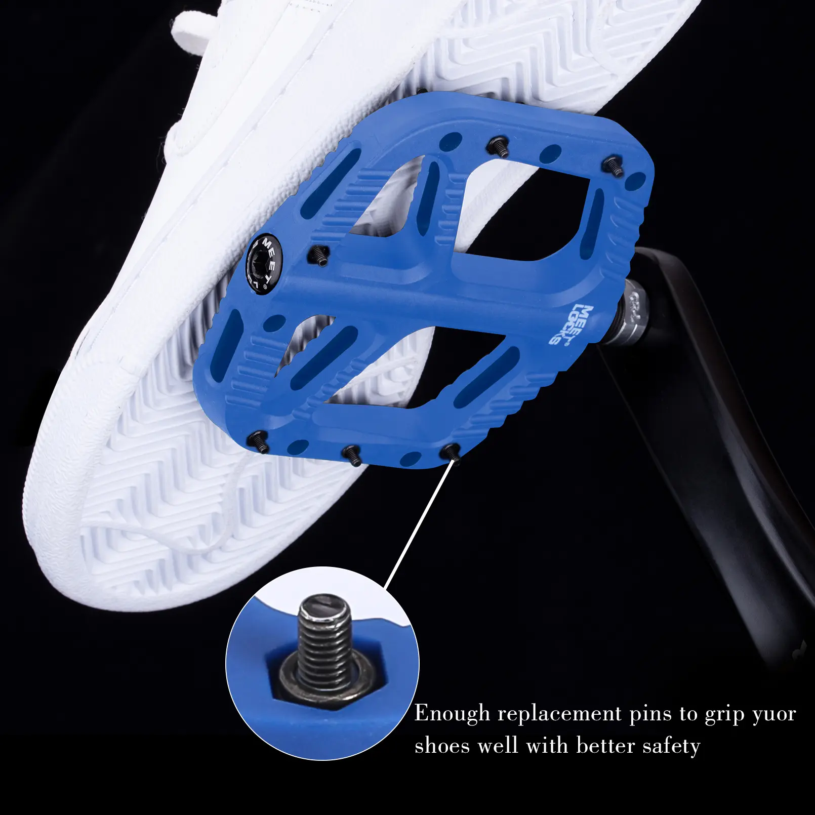 ·ANTI-SKID: 6 Anti-skid nail on each side makes the bicycle pedal effectively reduce the foot skidding, make cycling more safer.Even if there is a thick layer of sand on the pedal, you don’t have to worry about slipping.