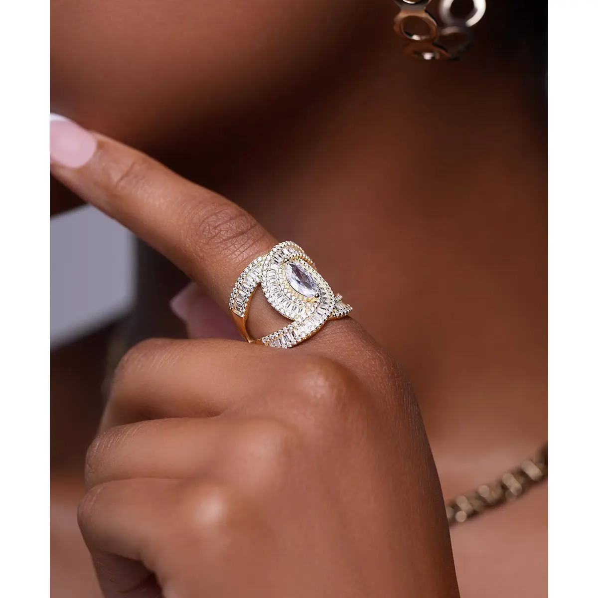 Gold Crossover Pave Ring