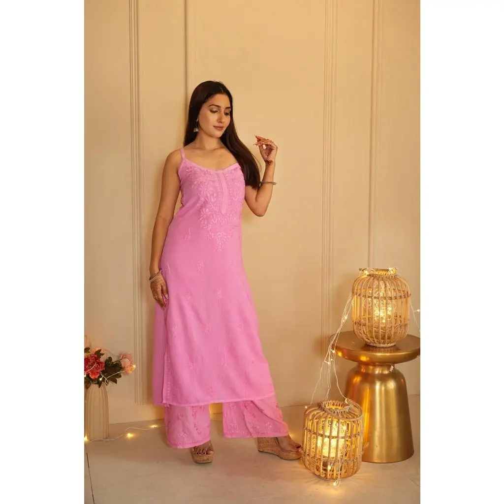 Indulge in the timeless charm of Chikankari with our Noodle Strap Kurti and plazzo set – a perfect addition to your wardrobe that seamlessly blends tradition with contemporary fashion. Elevate your style and make a statement with this unique and meticulously crafted Chikankari Noodle Strap Kurti.