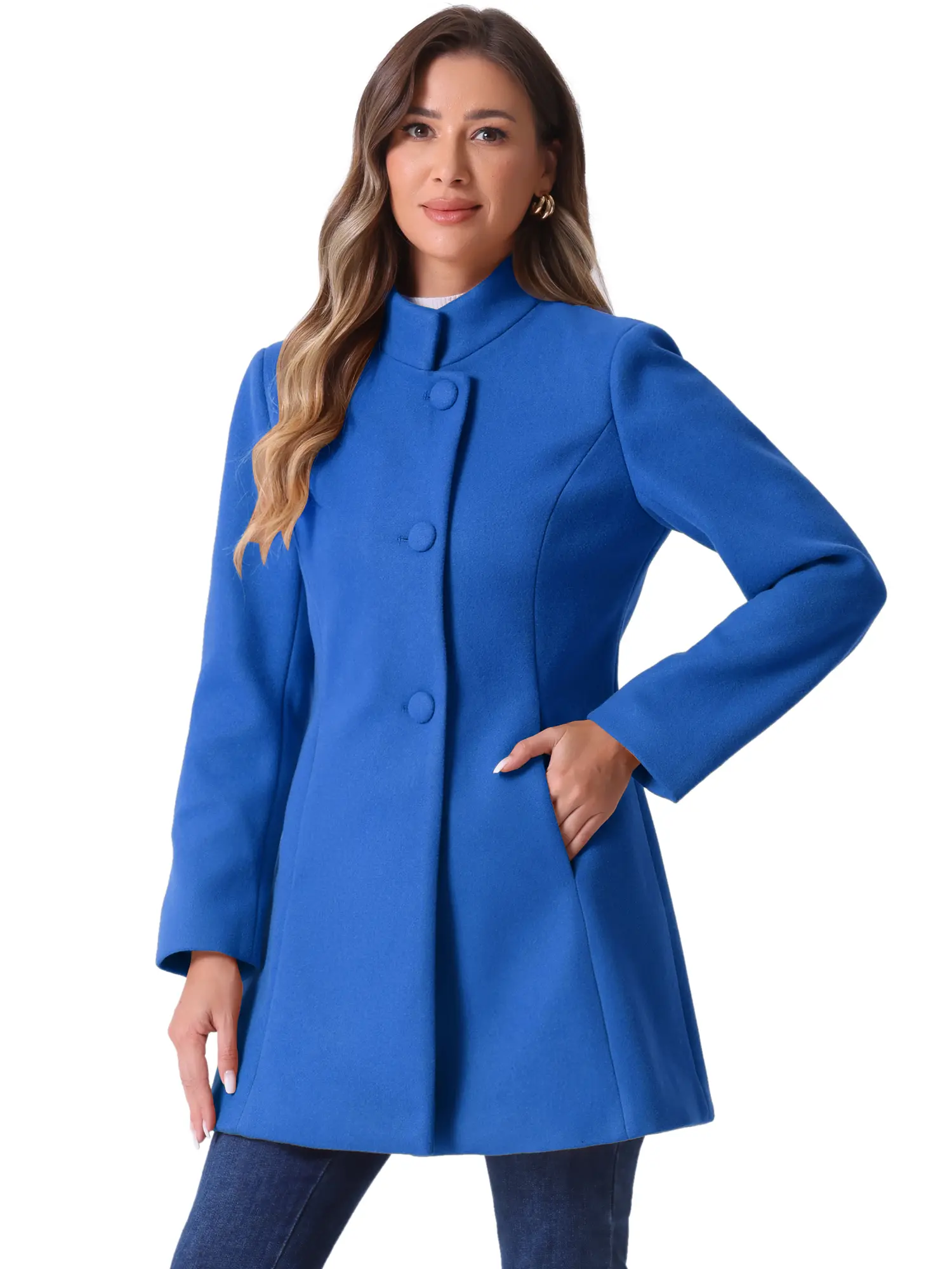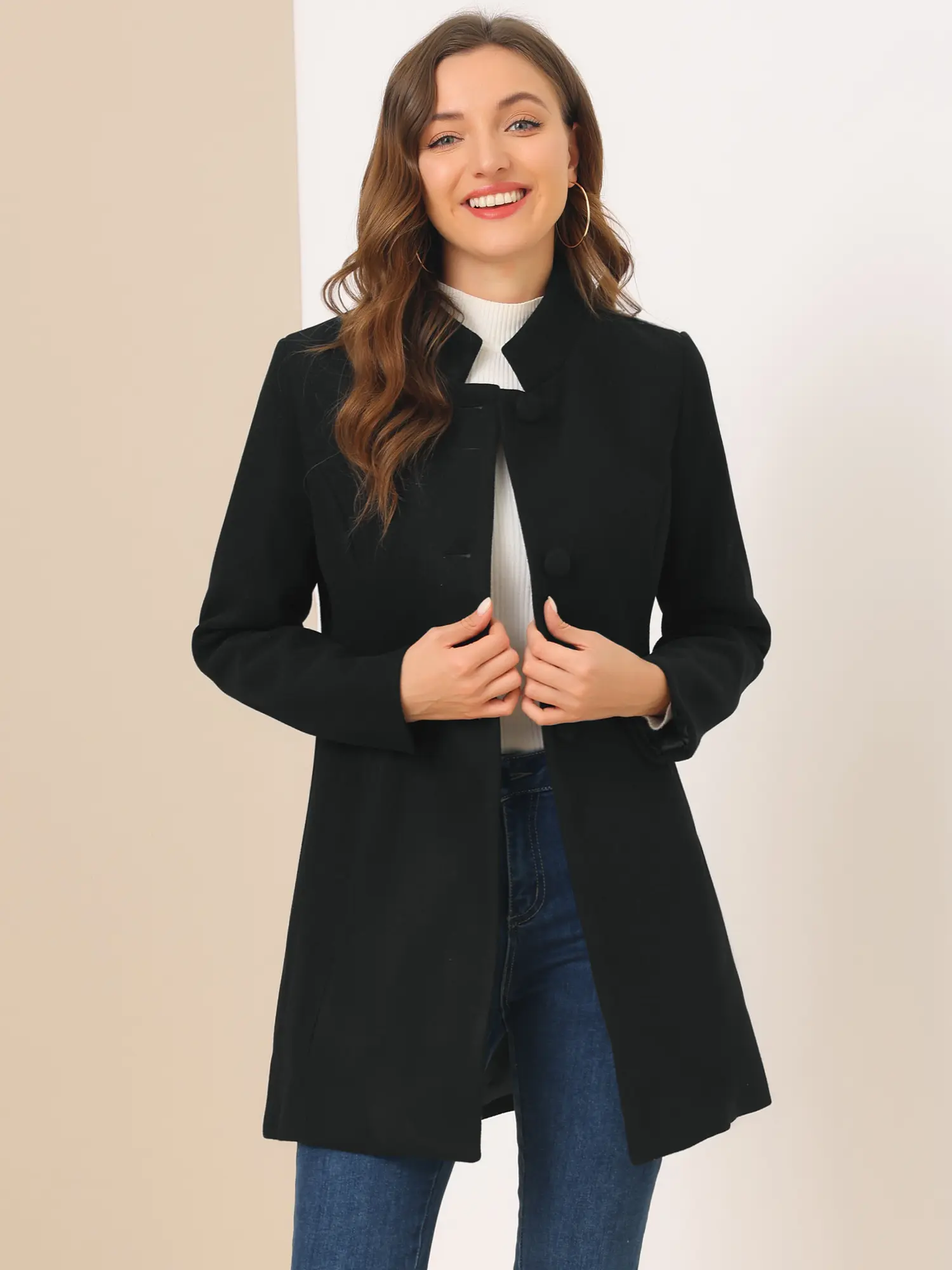 This coat featuring stand collar and single breasted design add feminine and elegant feel to your winter look.