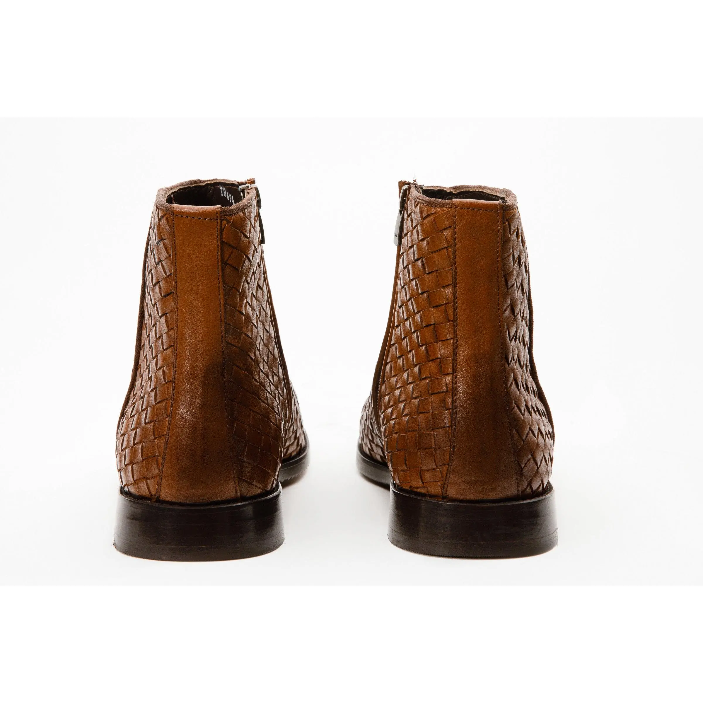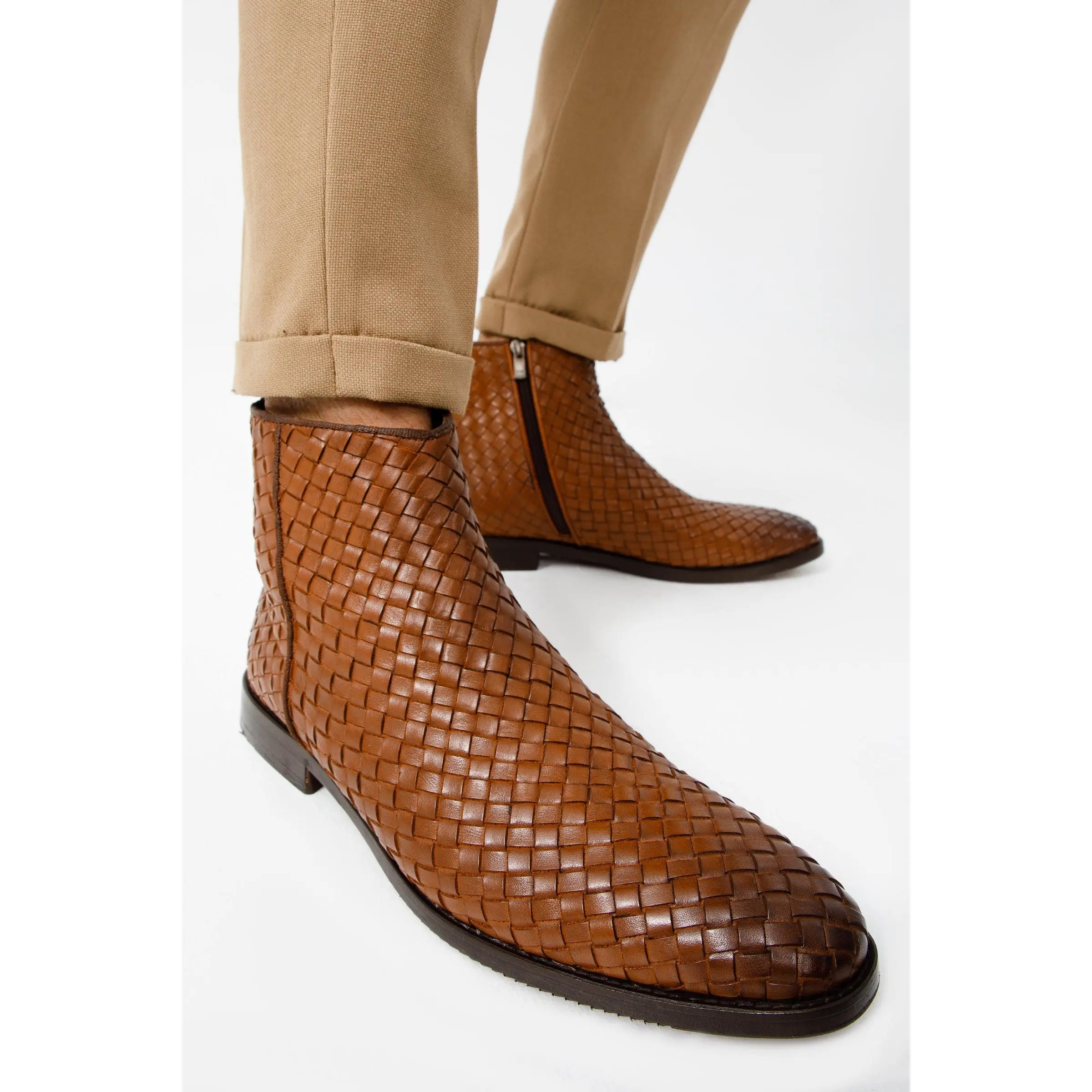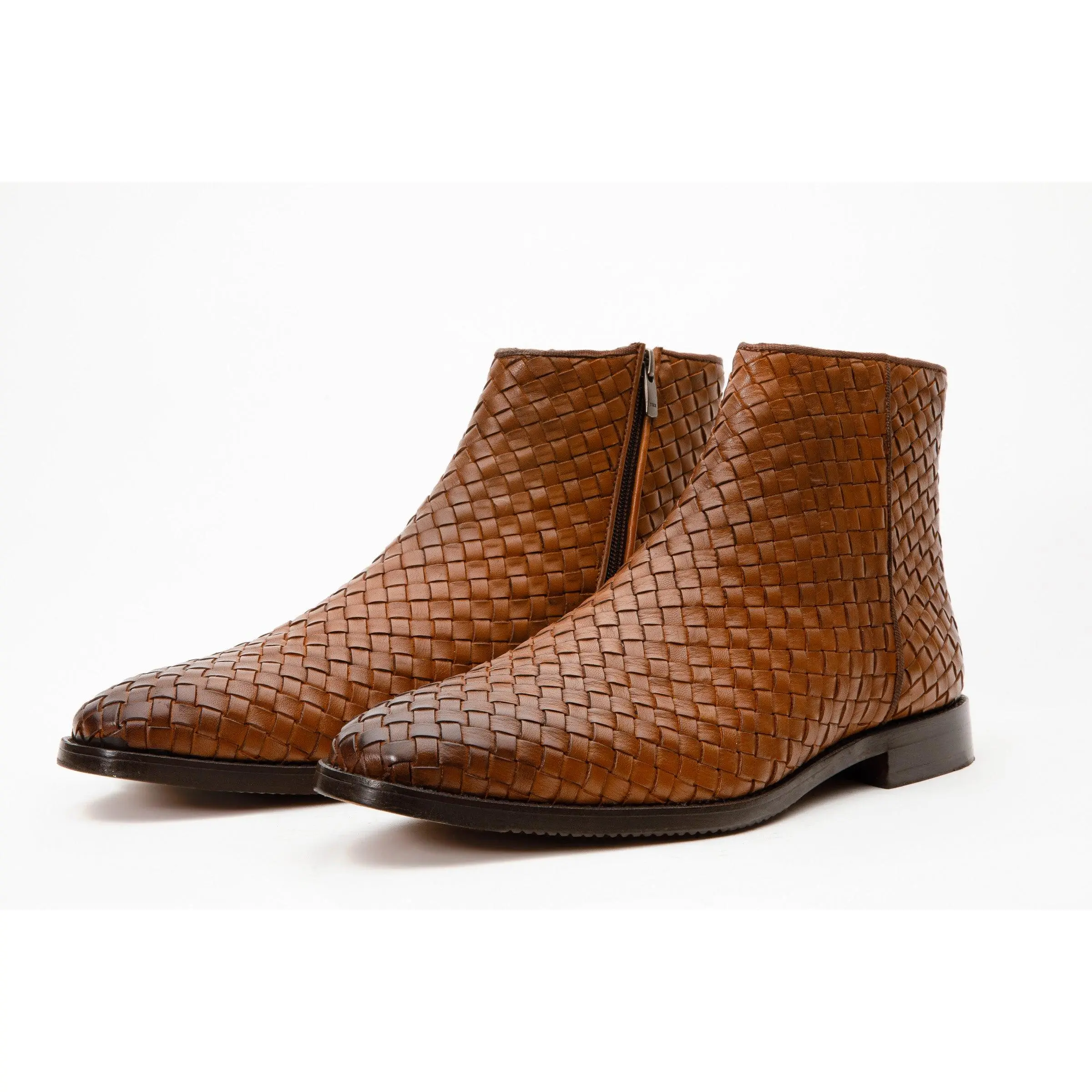 The Wellington Tan Handwoven Leather Men Boot with a Zipper Final Sale!